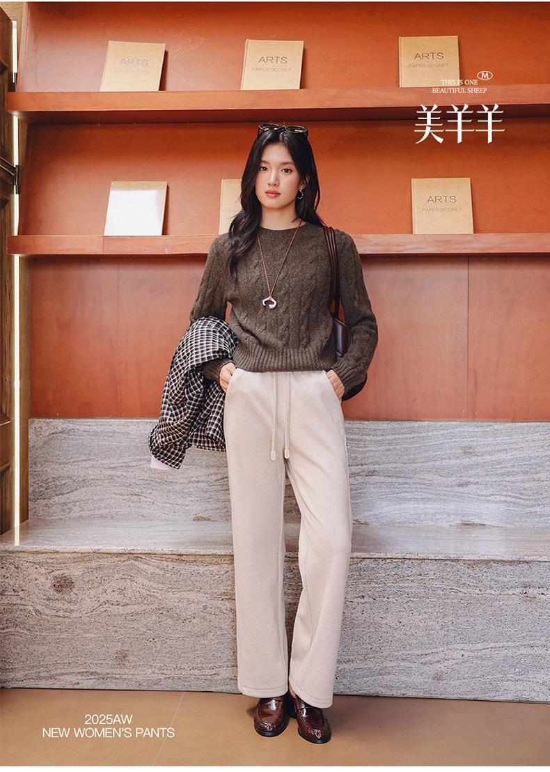 【绵羊毛+醋酸+7A润肤】【四面弹,优化腿型】【萝卜+直筒可选】秋冬新款SAKURA樱花羊毛醋酸薄绒直筒裤萝卜裤原纱润肤樱花香薰窄版阔腿直筒裤锥形萝卜裤