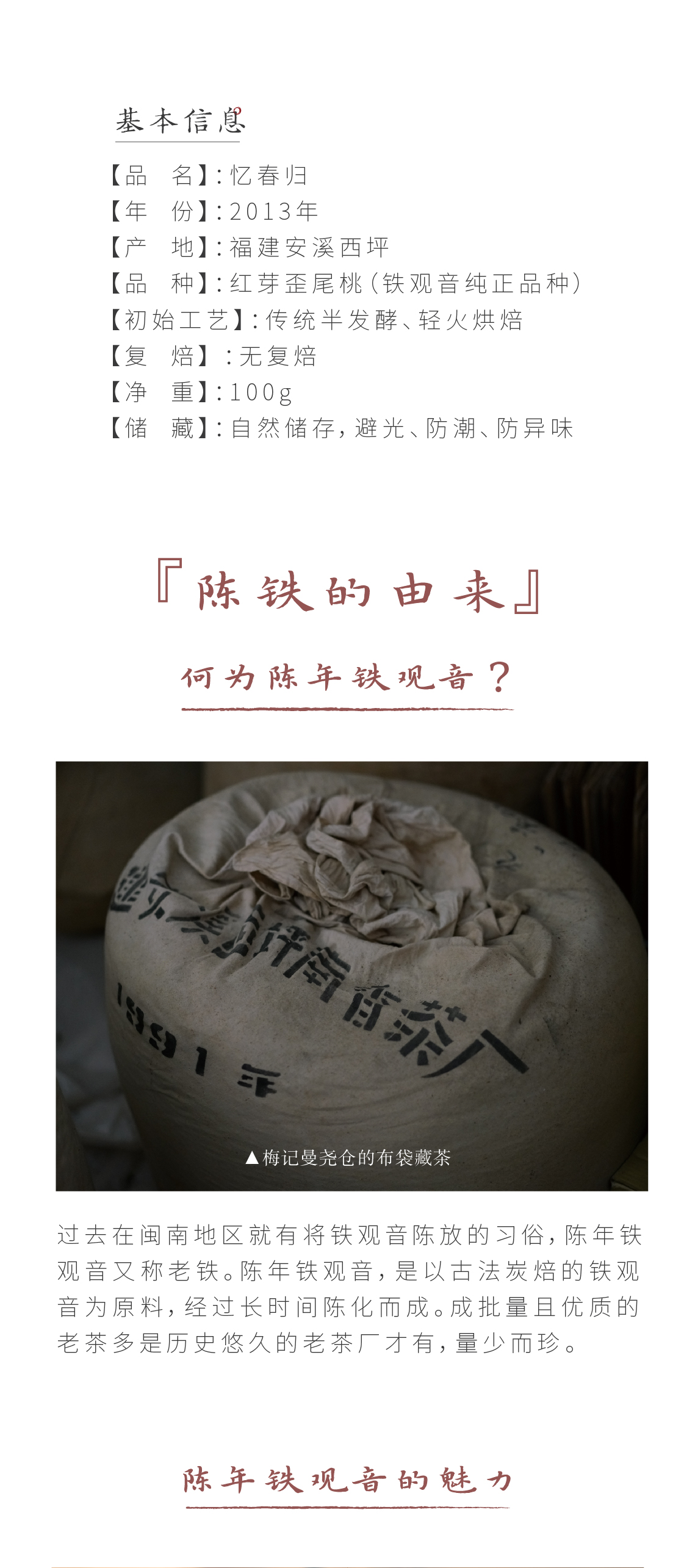 梅记2013年忆春归老铁 100g宜品宜藏 陈年铁观音老乌龙茶