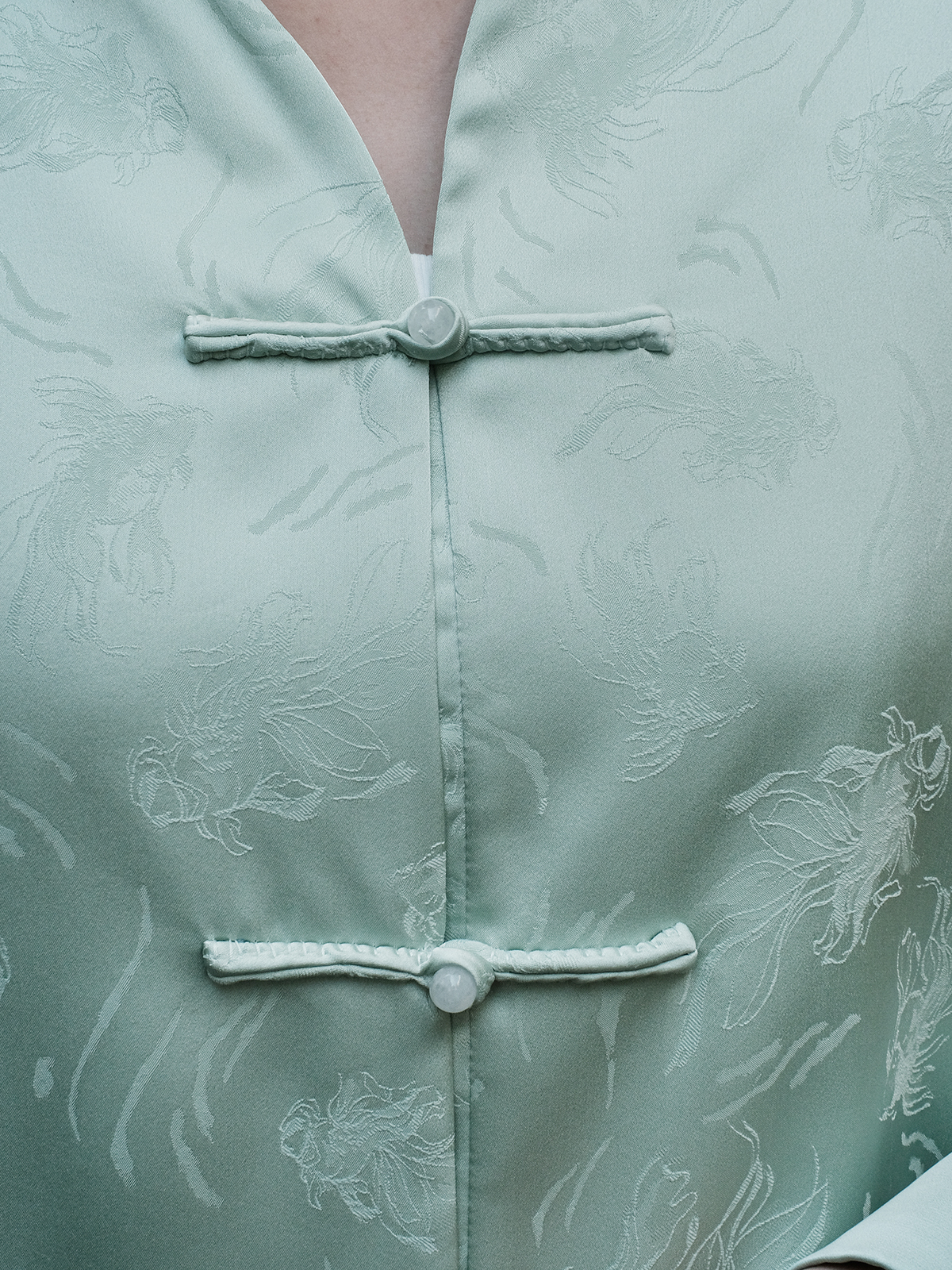 瑕疵|盛唐婧 |金鱼提花一字扣外套-淡绿[特价品](特殊商品不退不换)