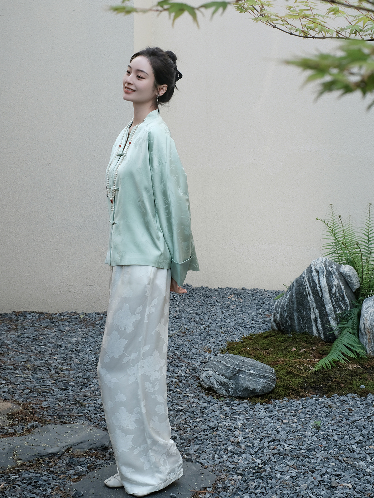盛唐牡丹 | 时髦玉扣花香引蝶对襟女衬衫