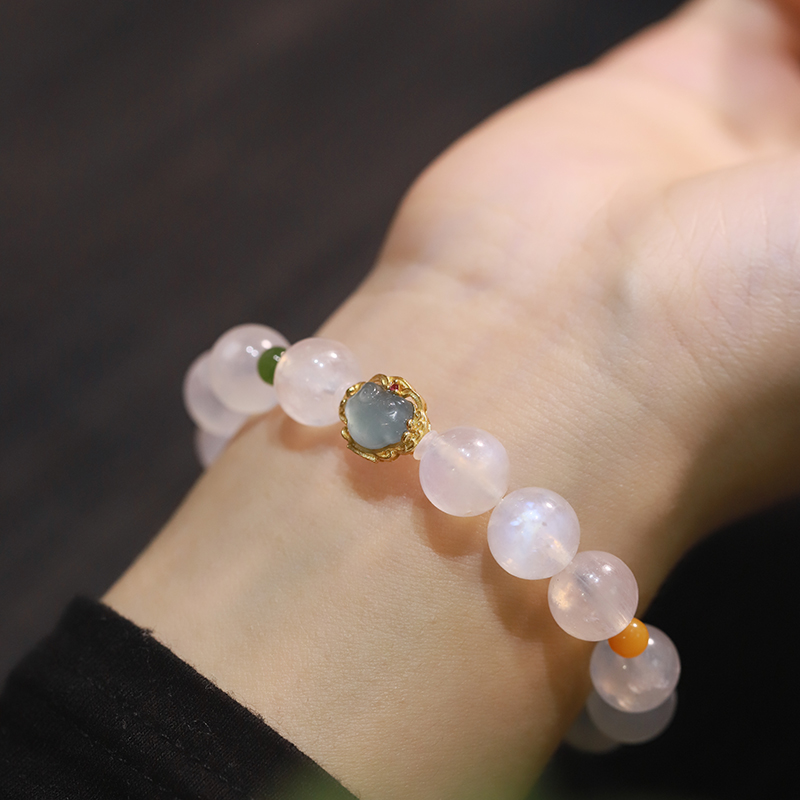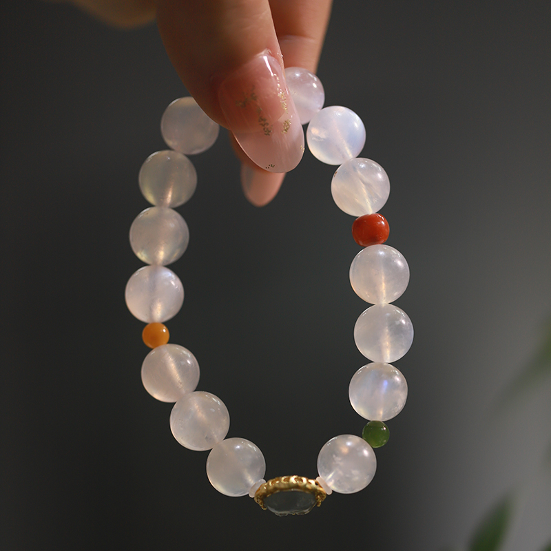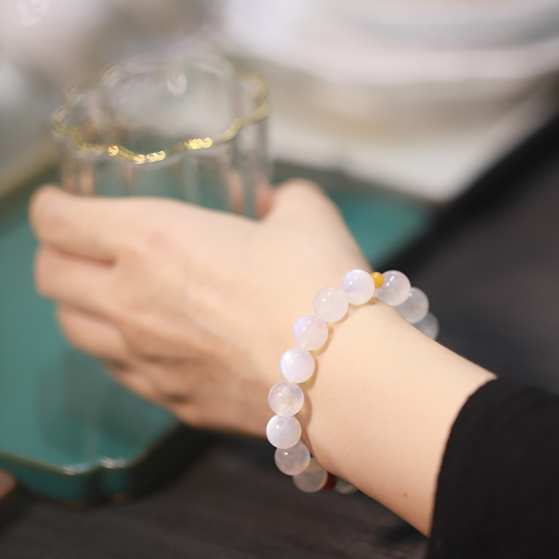【宫里手串】天然水晶蓝月光石冰种手串10mm