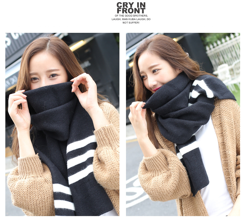 【围巾】冬季保暖新款围巾克拉恋人同款男女士英伦风拼接毛线围脖