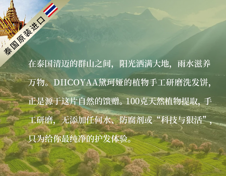 【泰国古法手工研磨,1个洗发饼=3瓶洗发水】DIICOYAA黛珂娅植物手工研磨洗发饼 ,植物精油研磨,零皂基,零香精,草本成分,替代洗发水,去屑止痒,控油蓬松