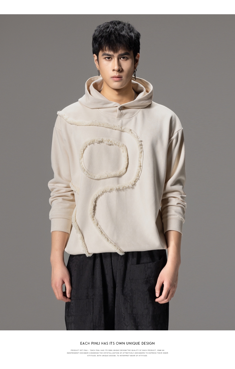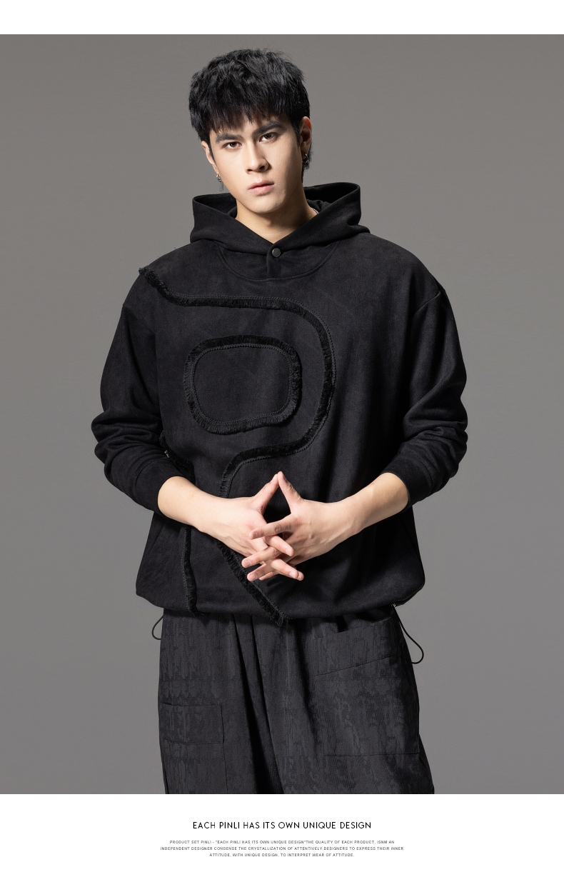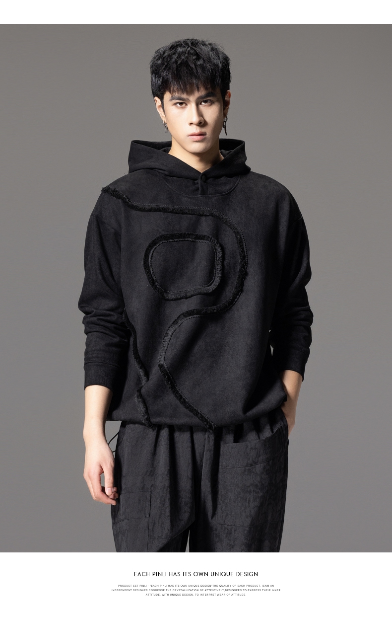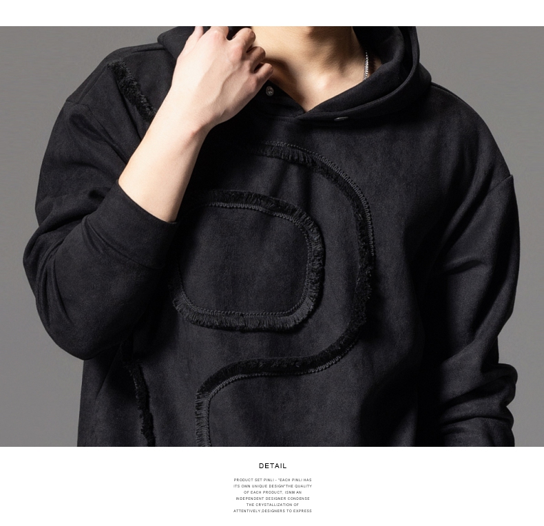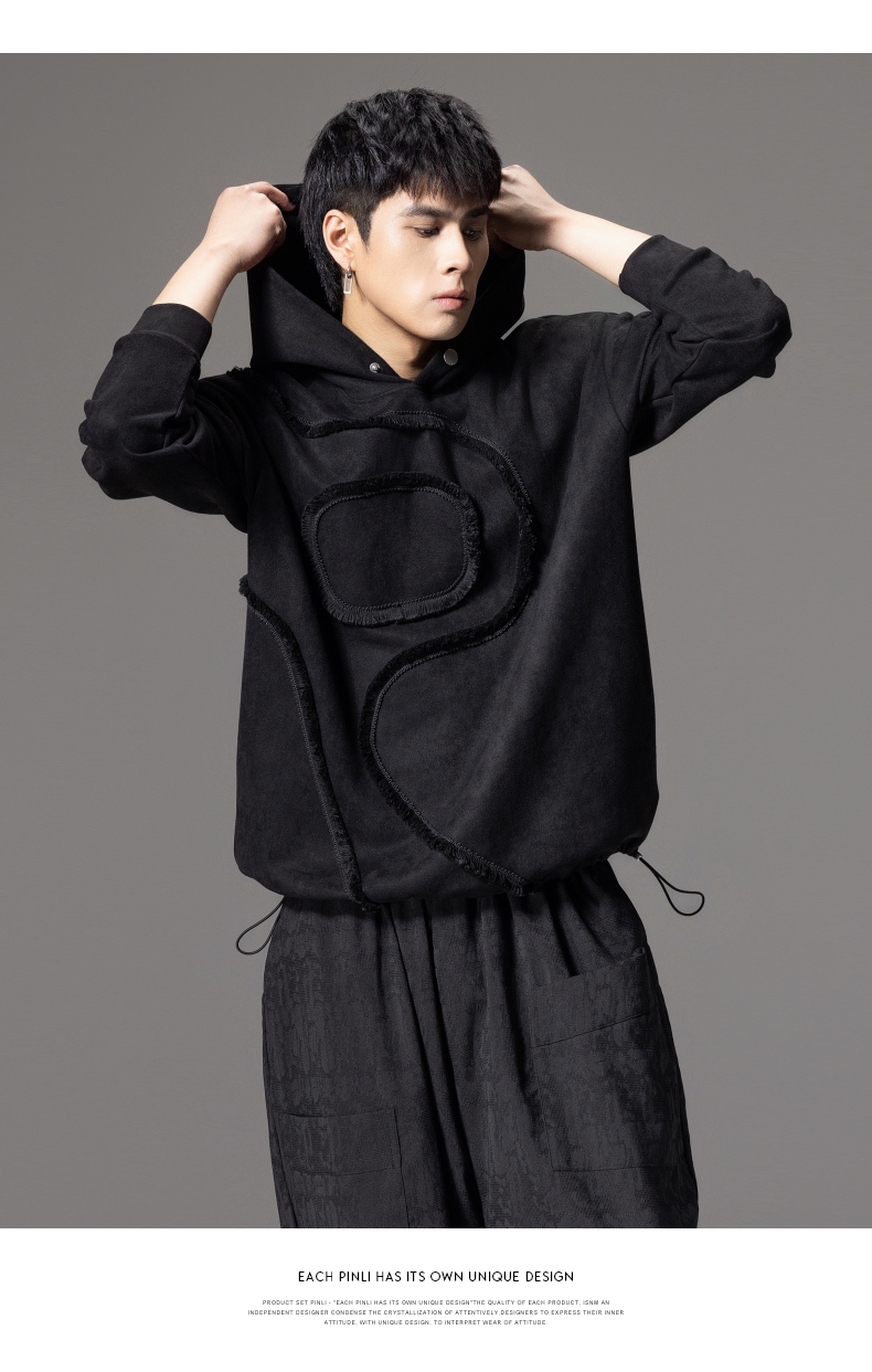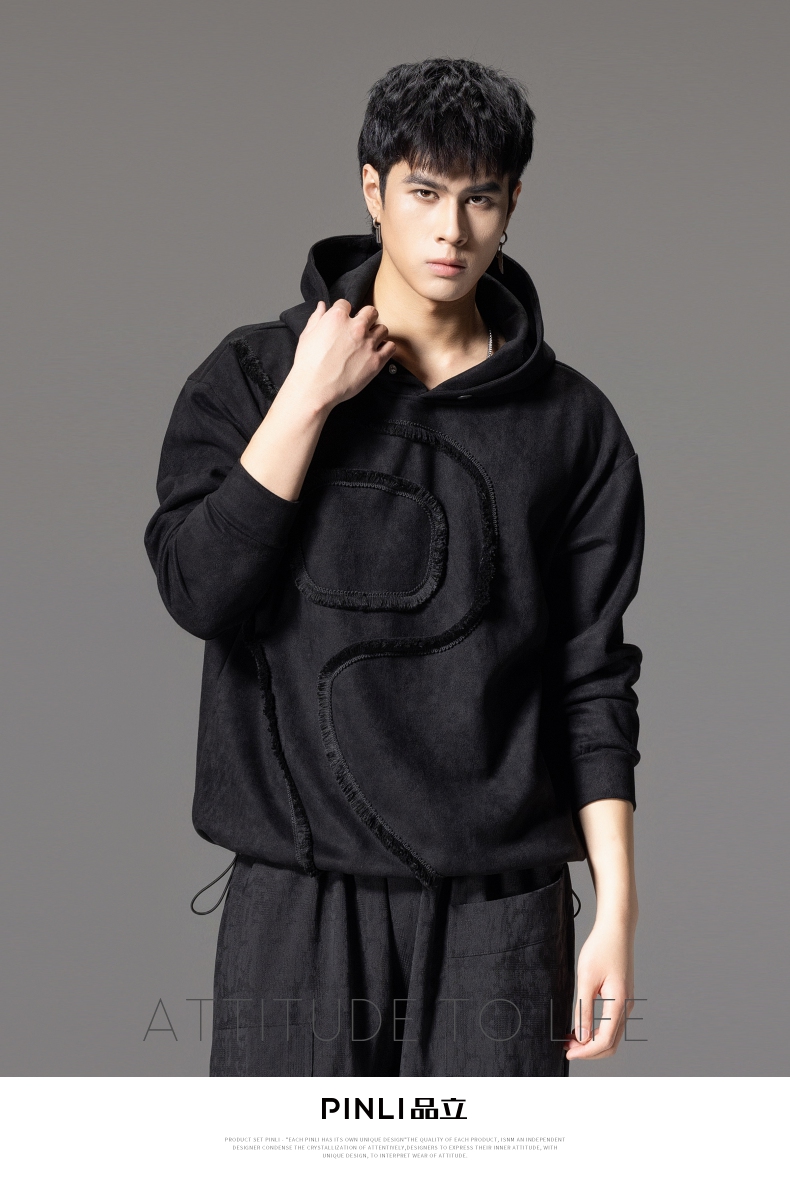 PINLI品立秋季新款流苏连帽套头卫衣男潮牌宽松休闲帽衫上衣B243109022