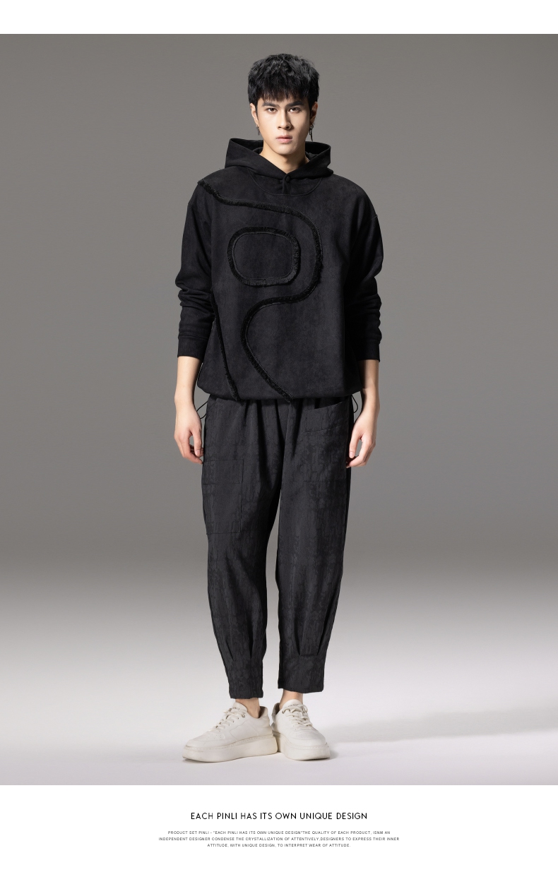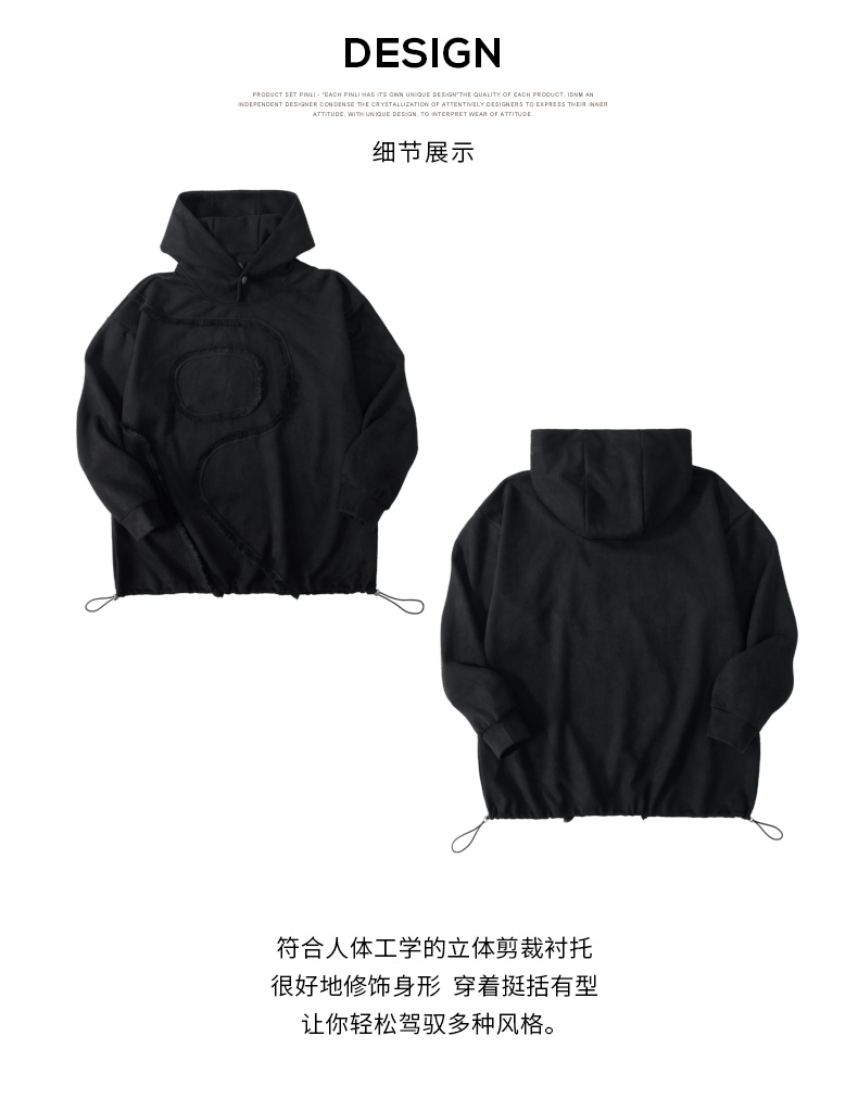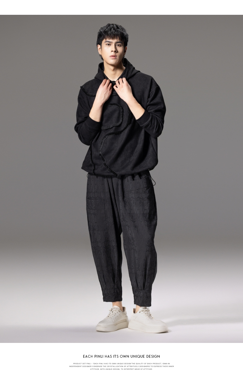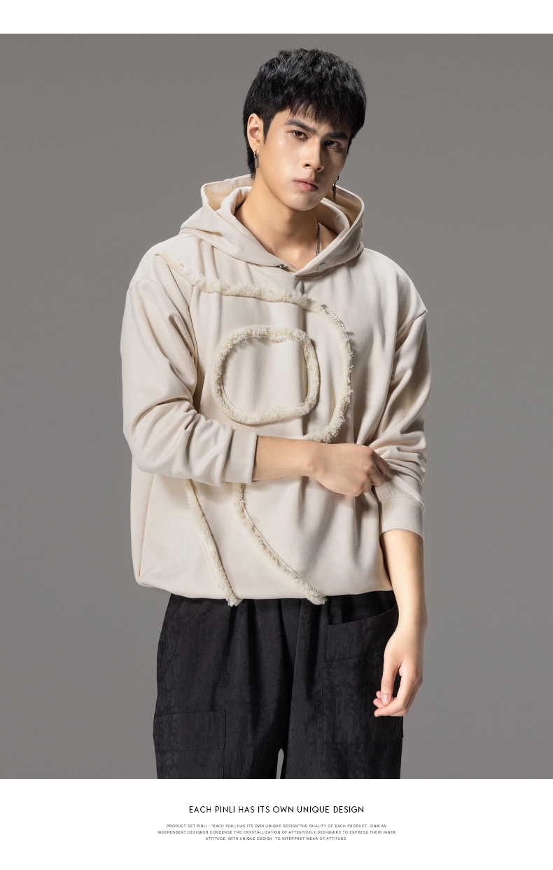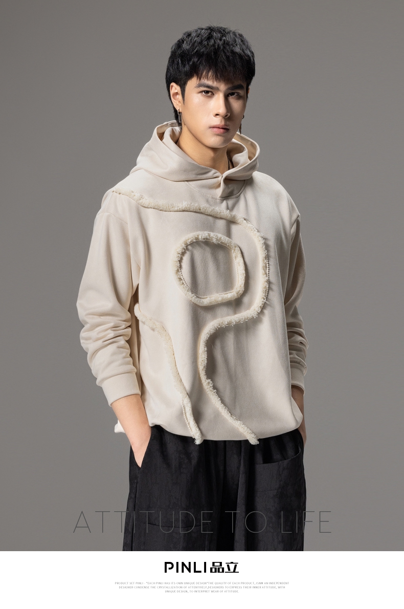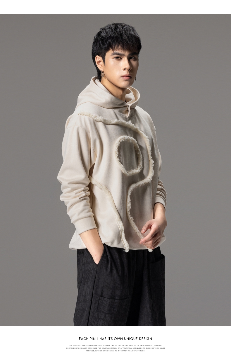 PINLI品立秋季新款流苏连帽套头卫衣男潮牌宽松休闲帽衫上衣B243109022
