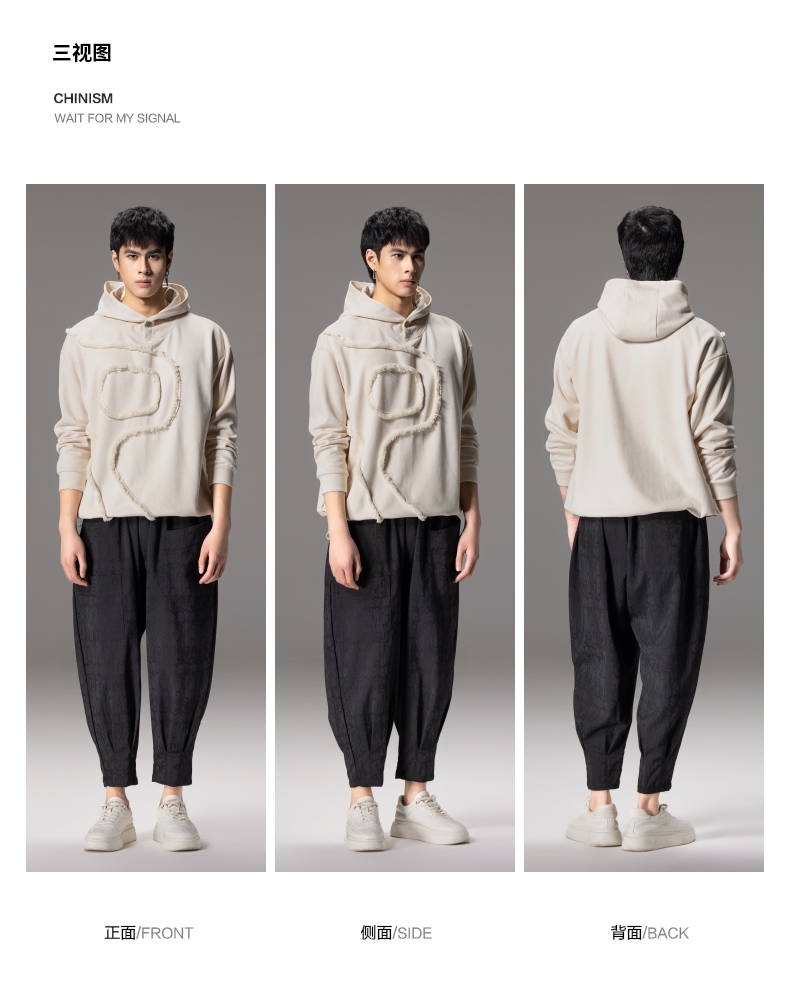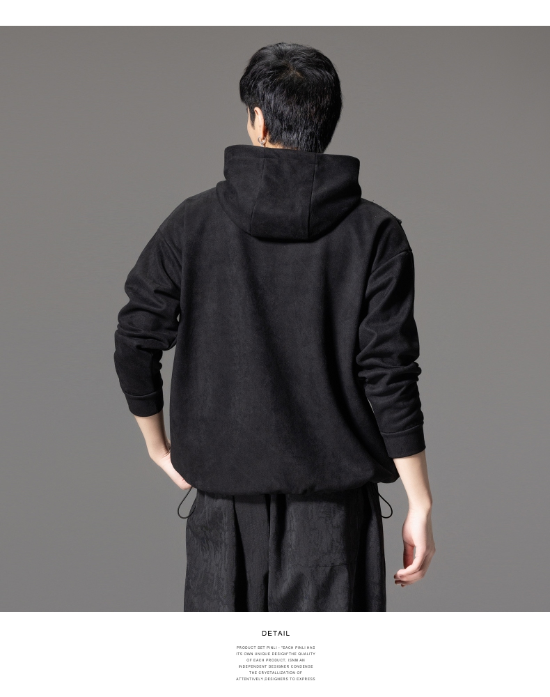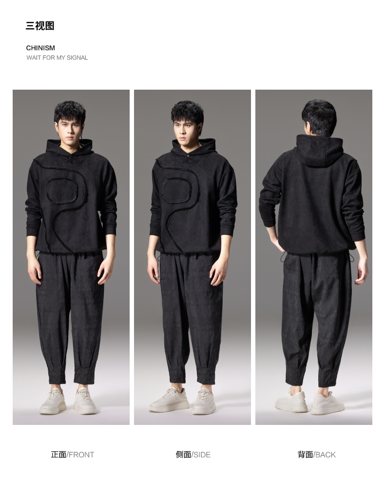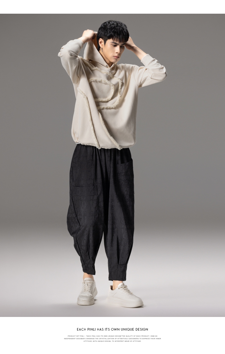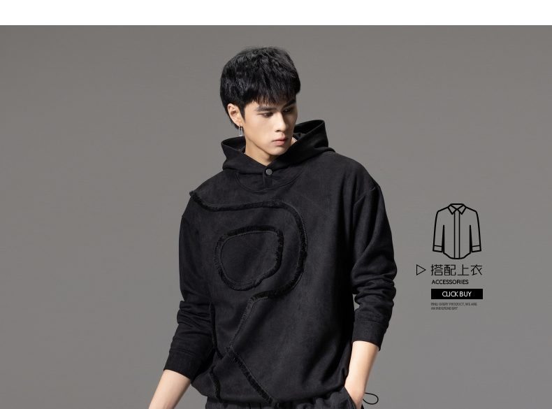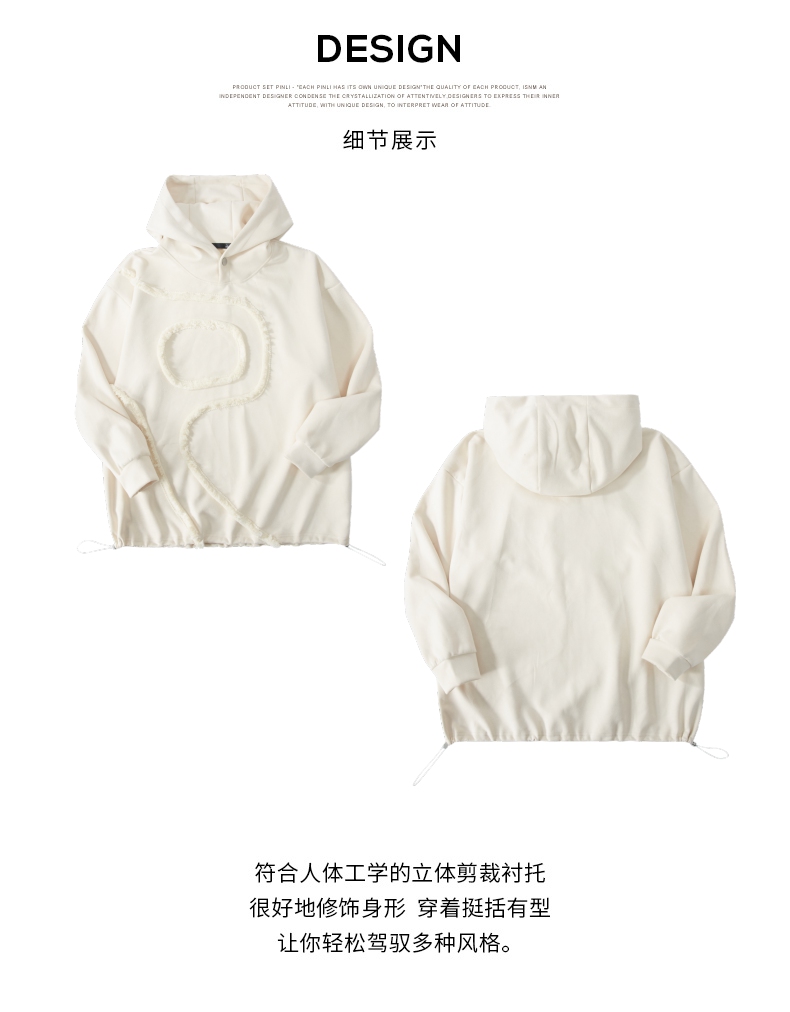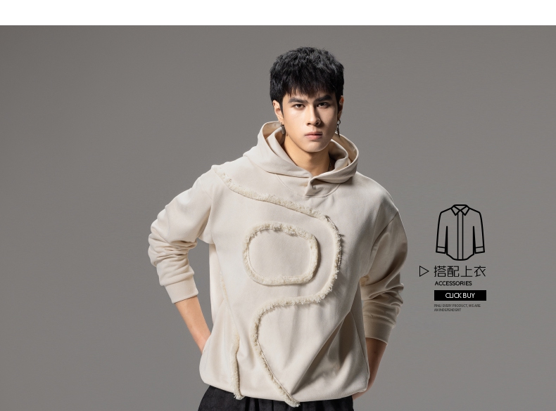 PINLI品立秋季新款流苏连帽套头卫衣男潮牌宽松休闲帽衫上衣B243109022