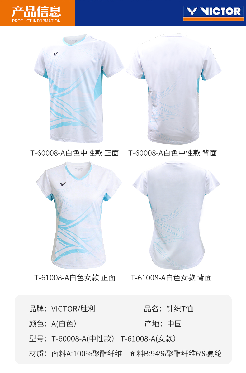 VICTOR威克多羽毛球服清爽舒适男女款运动短袖T-60008
