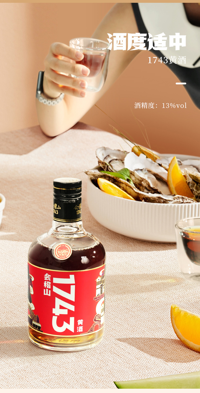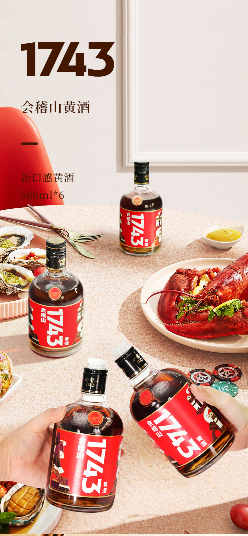 会稽山官旗 黄酒绍兴黄酒整箱 会稽山1743半干型花雕酒500ml*6瓶装老酒
