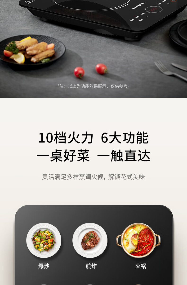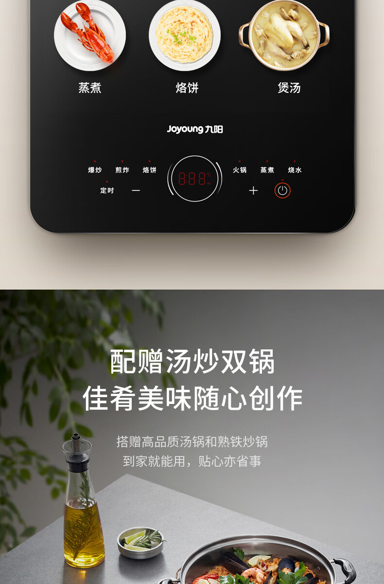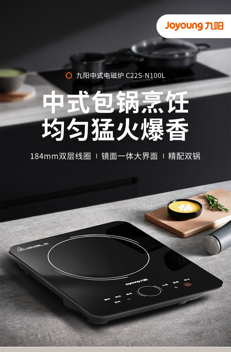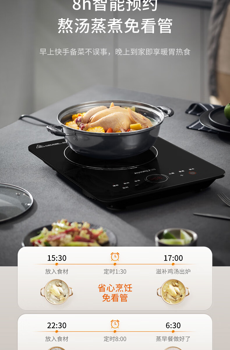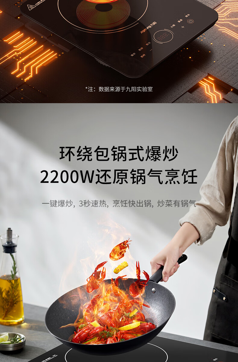 九阳电磁炉2200W大火力整板触控电磁灶家用火锅炉定时配汤锅炒锅