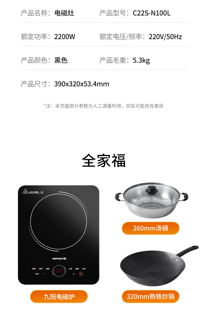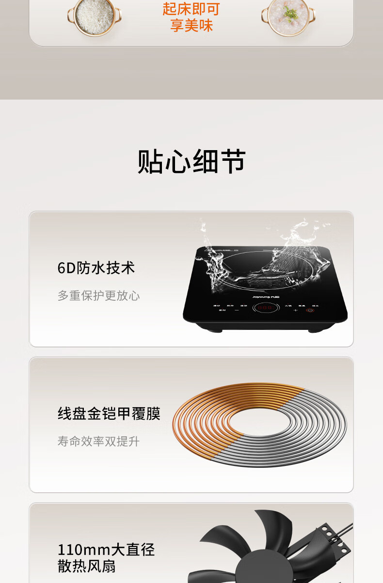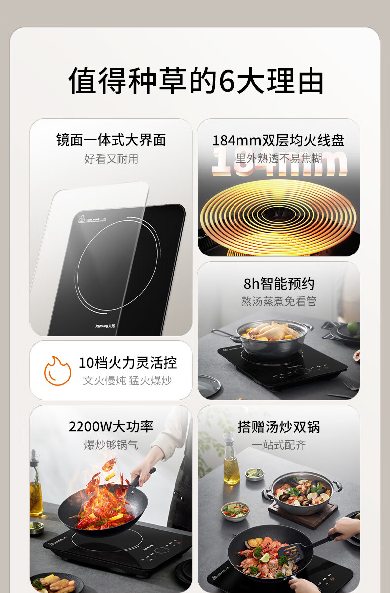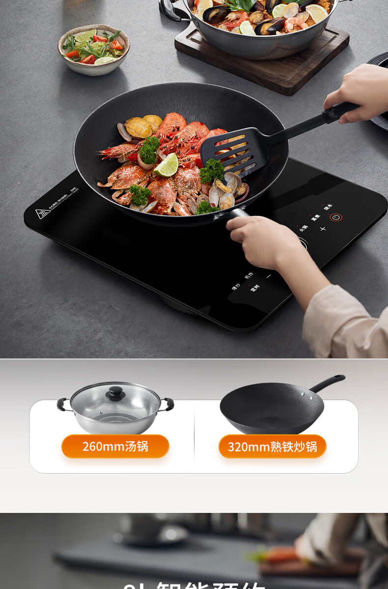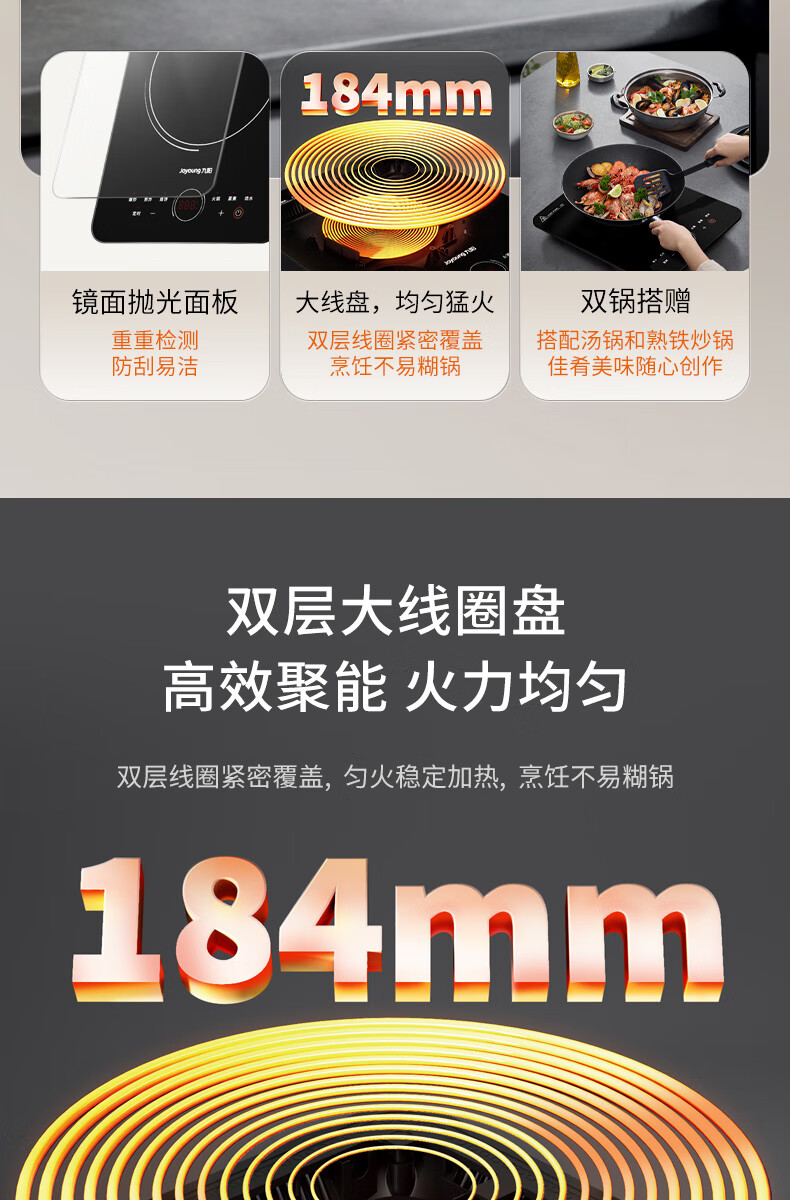 九阳电磁炉2200W大火力整板触控电磁灶家用火锅炉定时配汤锅炒锅