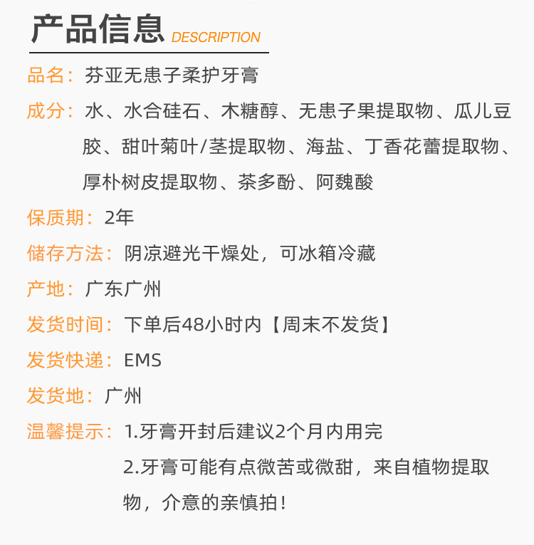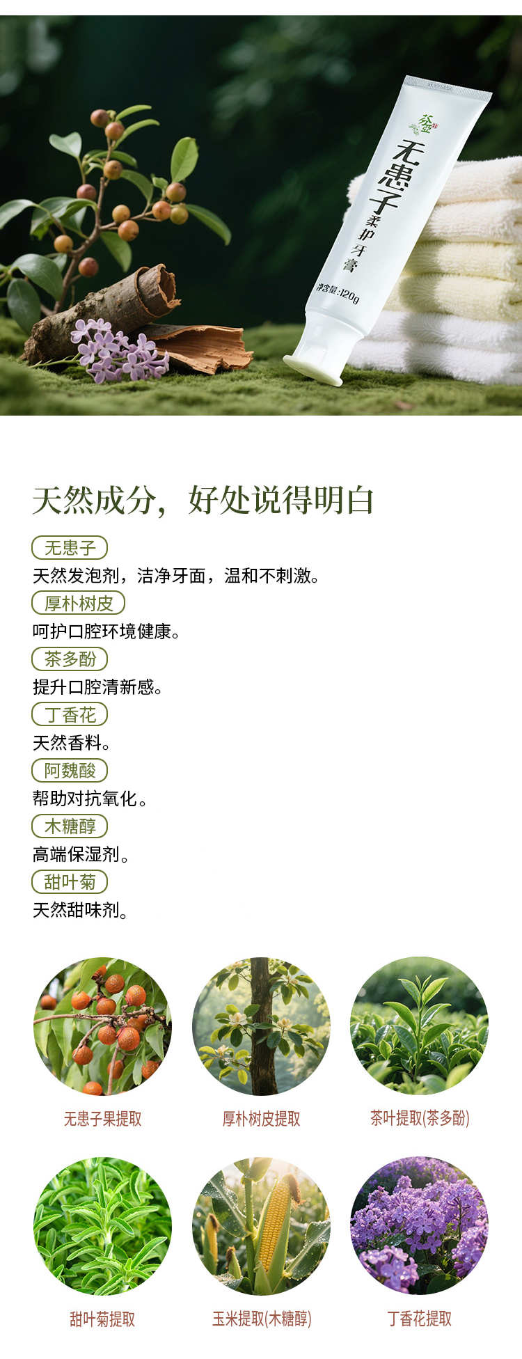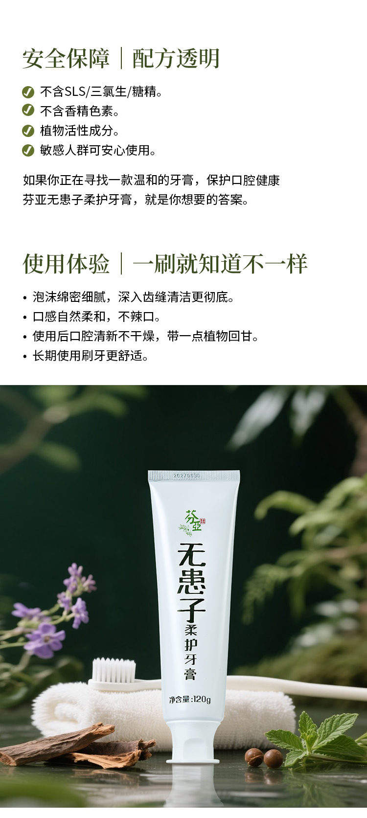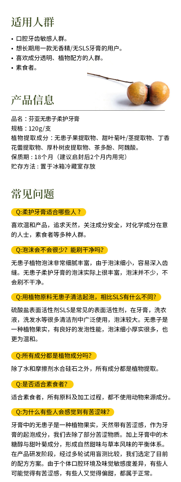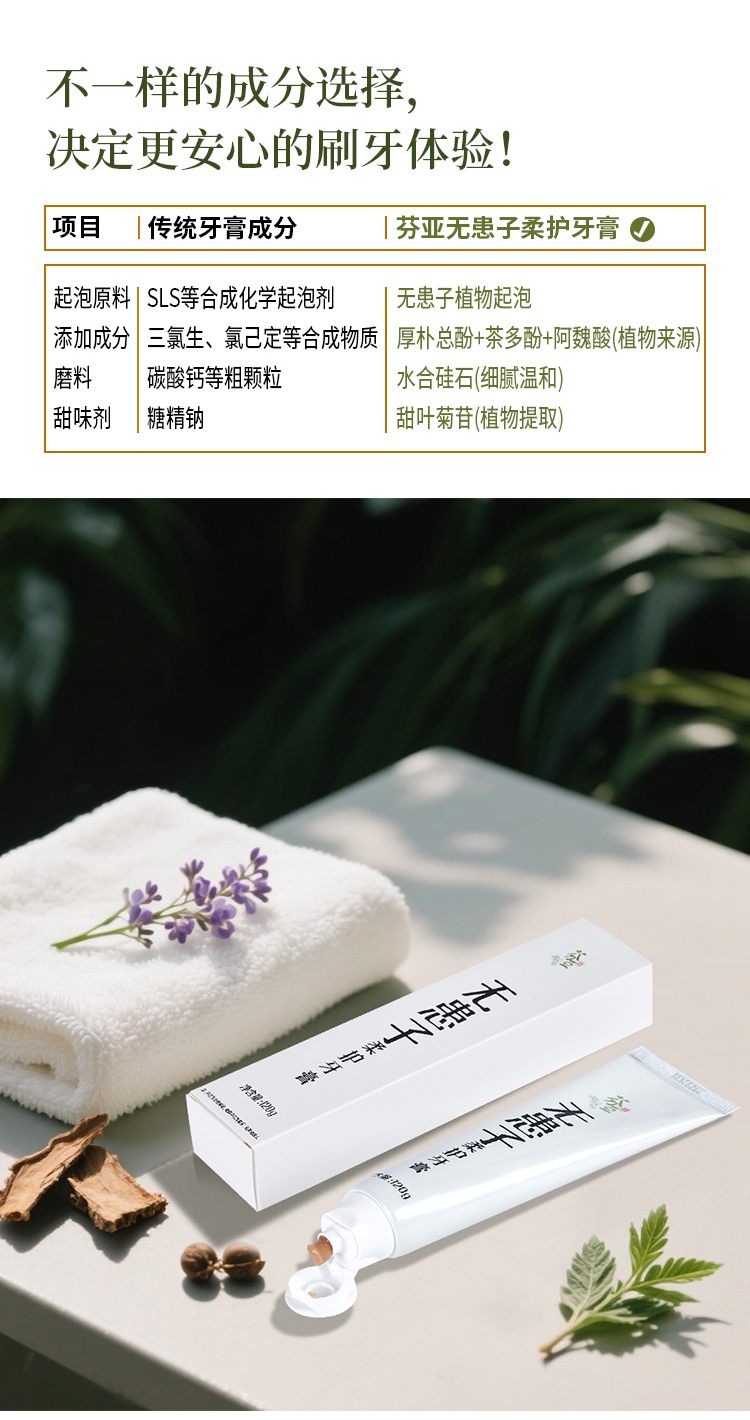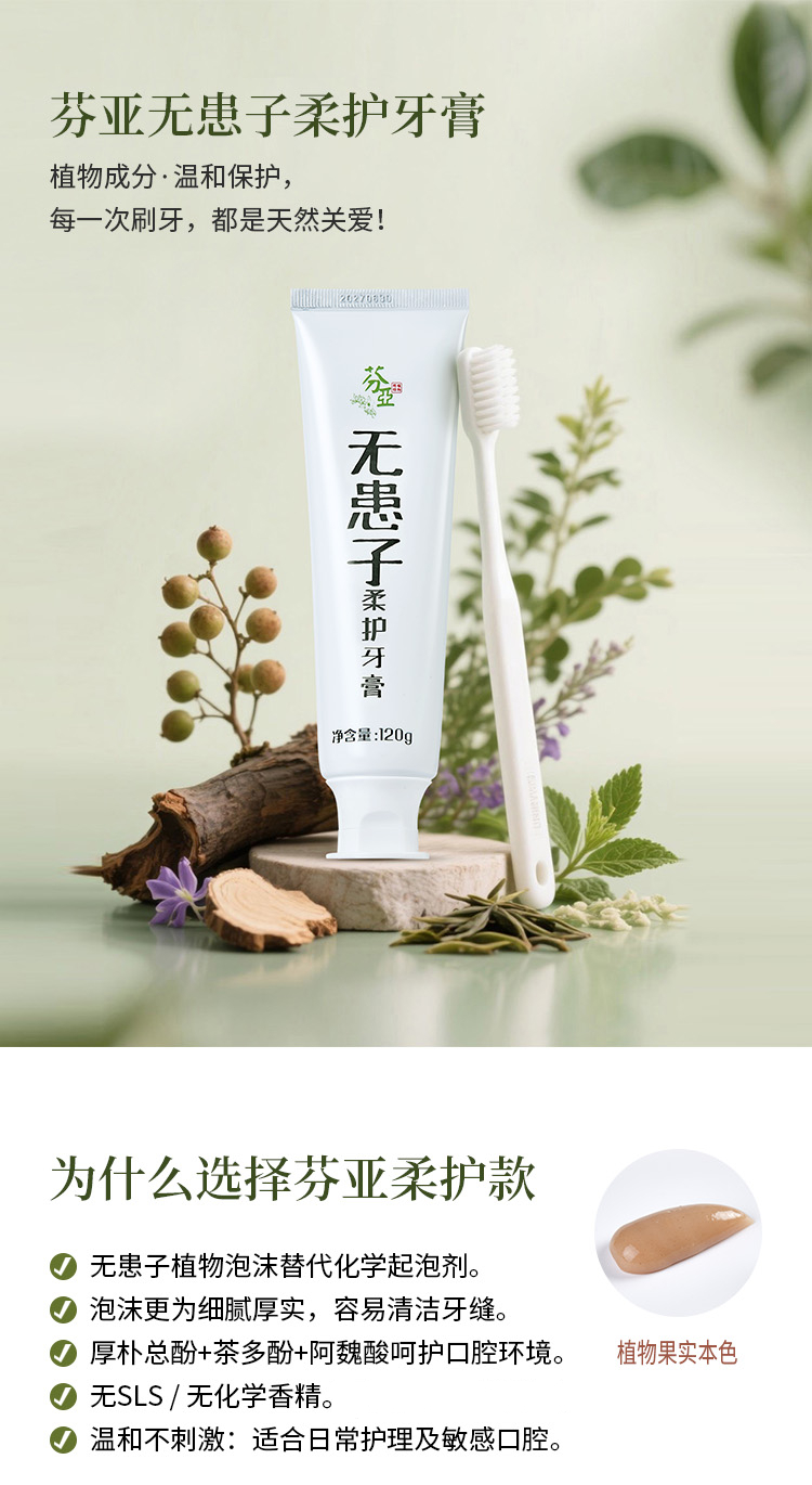 【特惠7.9折】芬亚 无患子柔护牙膏 120g/支