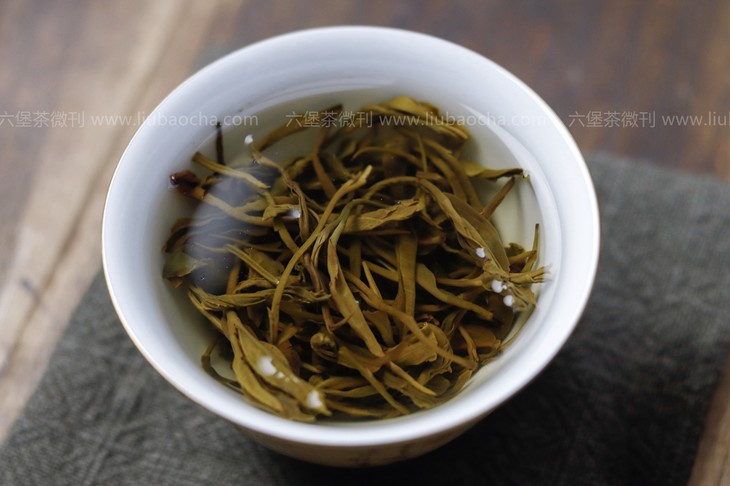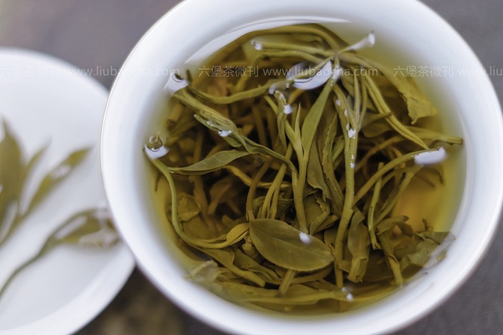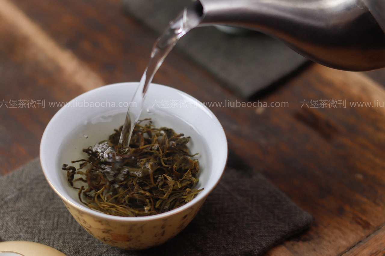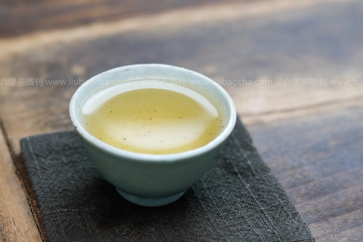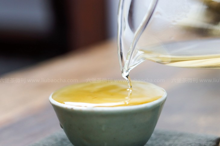 汤色青黄明亮,微微烟香中伴有丝丝清新的豆香;茶汤入口柔顺,微青涩,回甘生津,整体滋味较饱满。茶味足、后劲足,十足原种老树六堡茶风味。