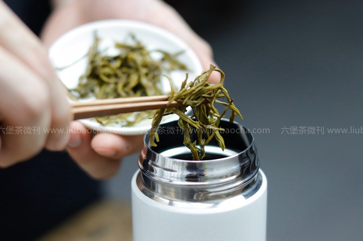 若直接干茶投入保温壶闷泡,则可适度减少投茶量,500ml的保温壶投茶2.5g,沸水闷泡30分钟,即可。