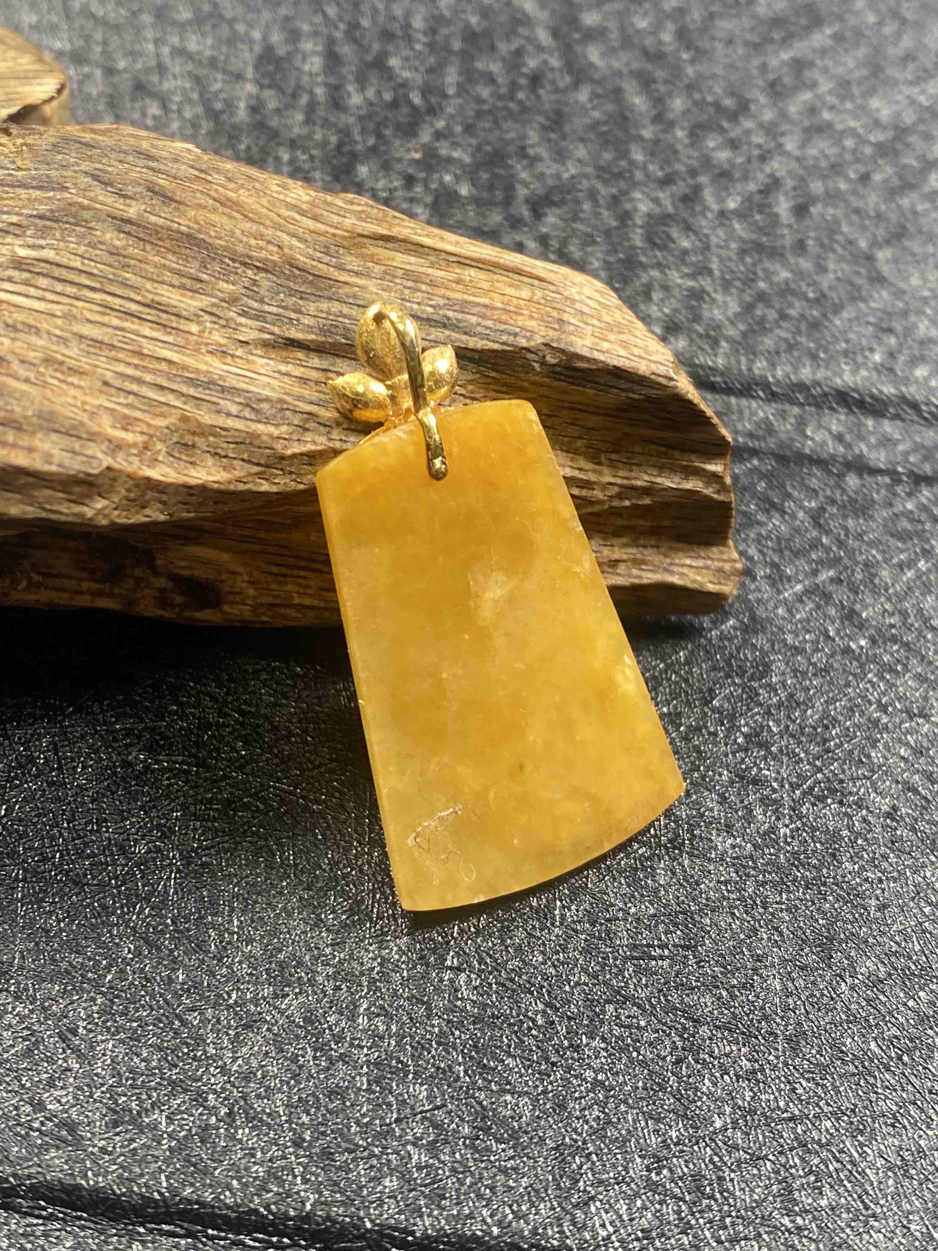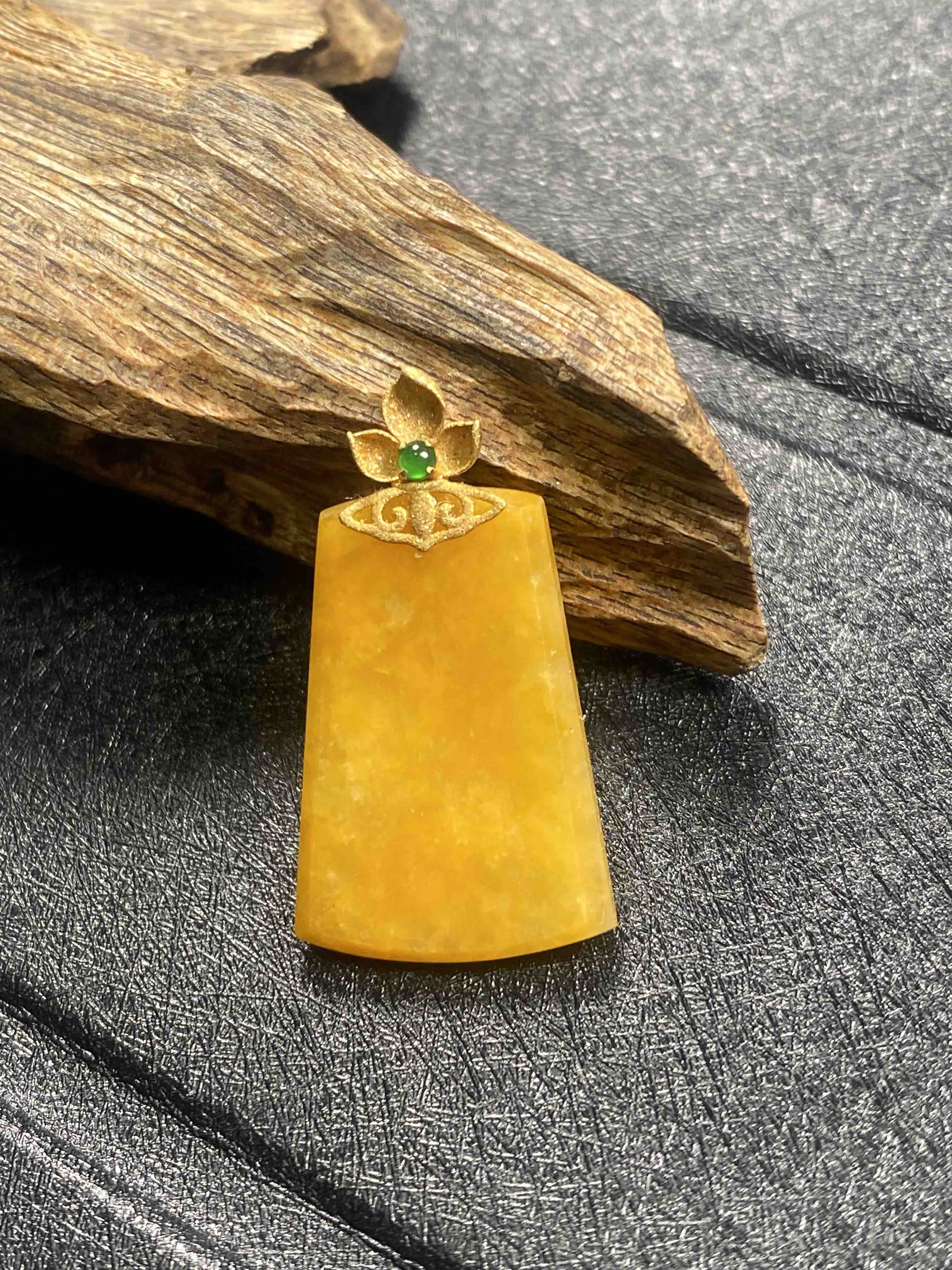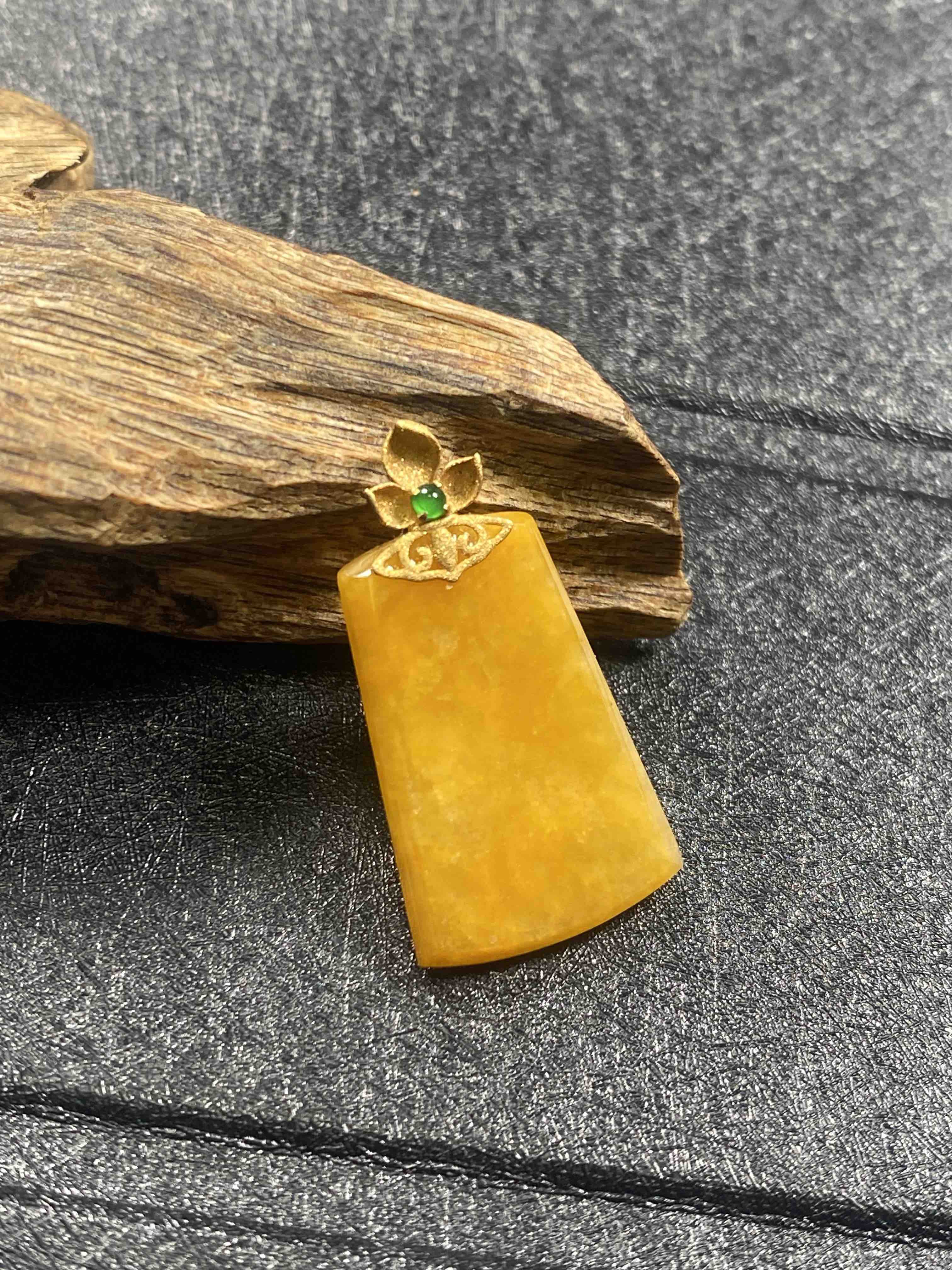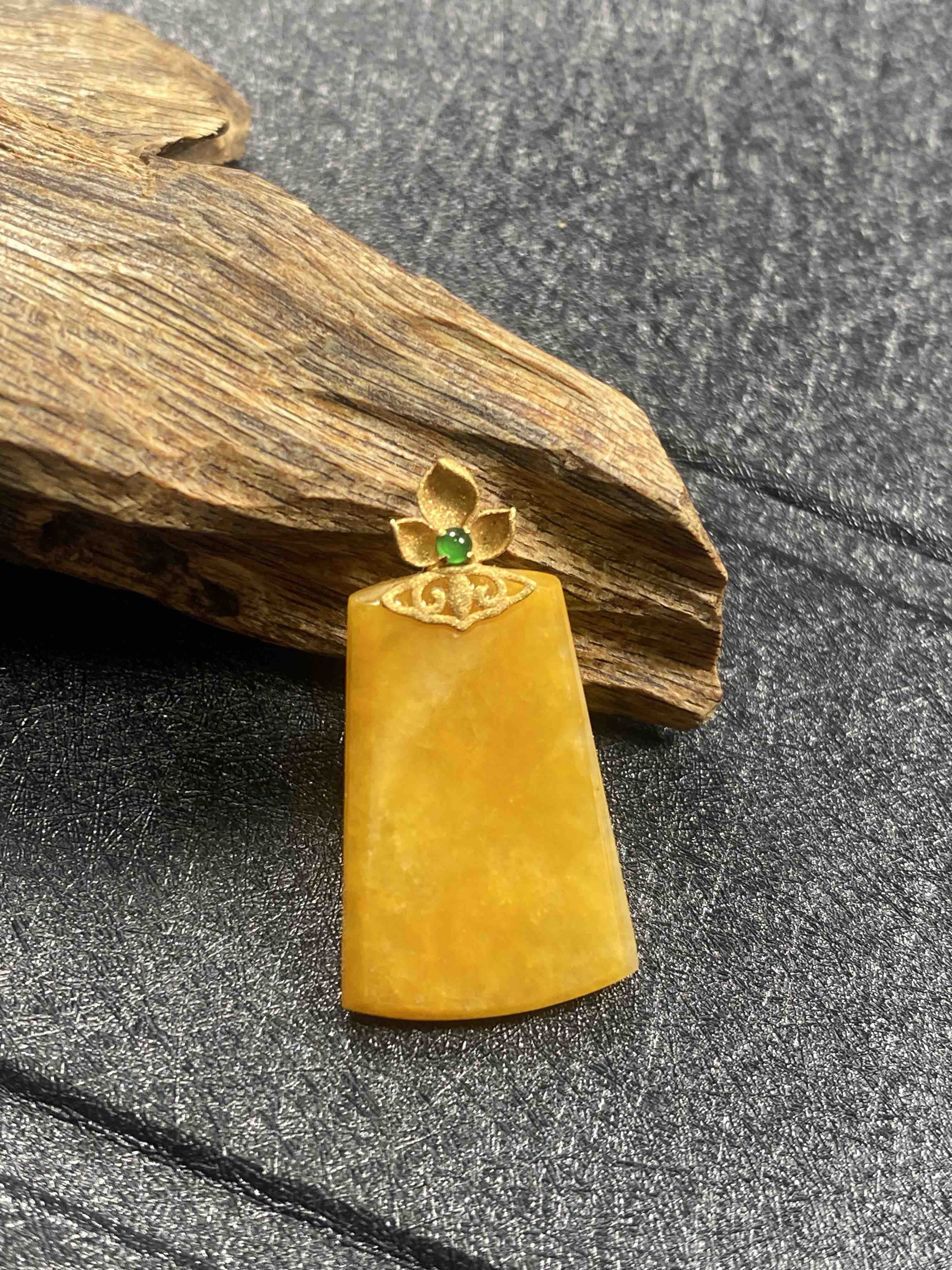 【FC0103】18K镶嵌翡翠黄翡无事牌吊坠 色泽娇艳 款式精美 裸石尺寸:22.2*14.5*2mm 超值价💰1100