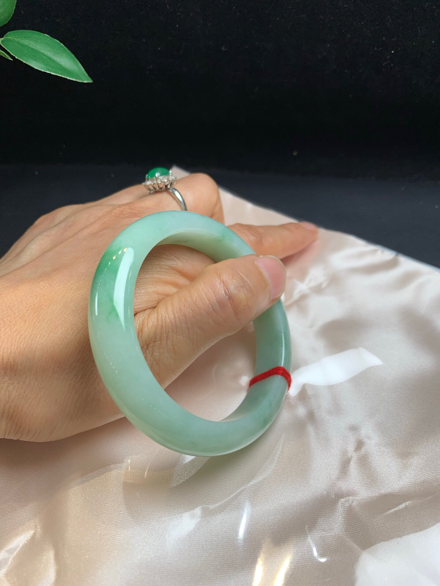 612460,55.3果绿底飘花 。12.6-8.4mm,整体带清新浅绿底,飘绿花色。润润的,干净清新。超值价💰12900 #优石客珠宝#香玉荟萃