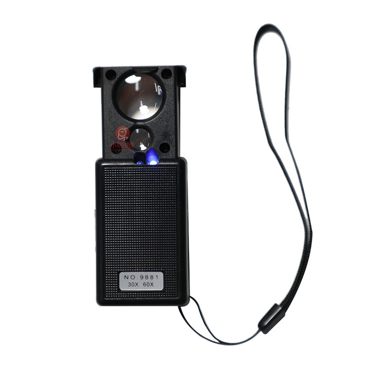 主镜片放大30倍,直径20毫米;辅镜片放大60倍,直径9毫米。并附有LED白光和紫光。