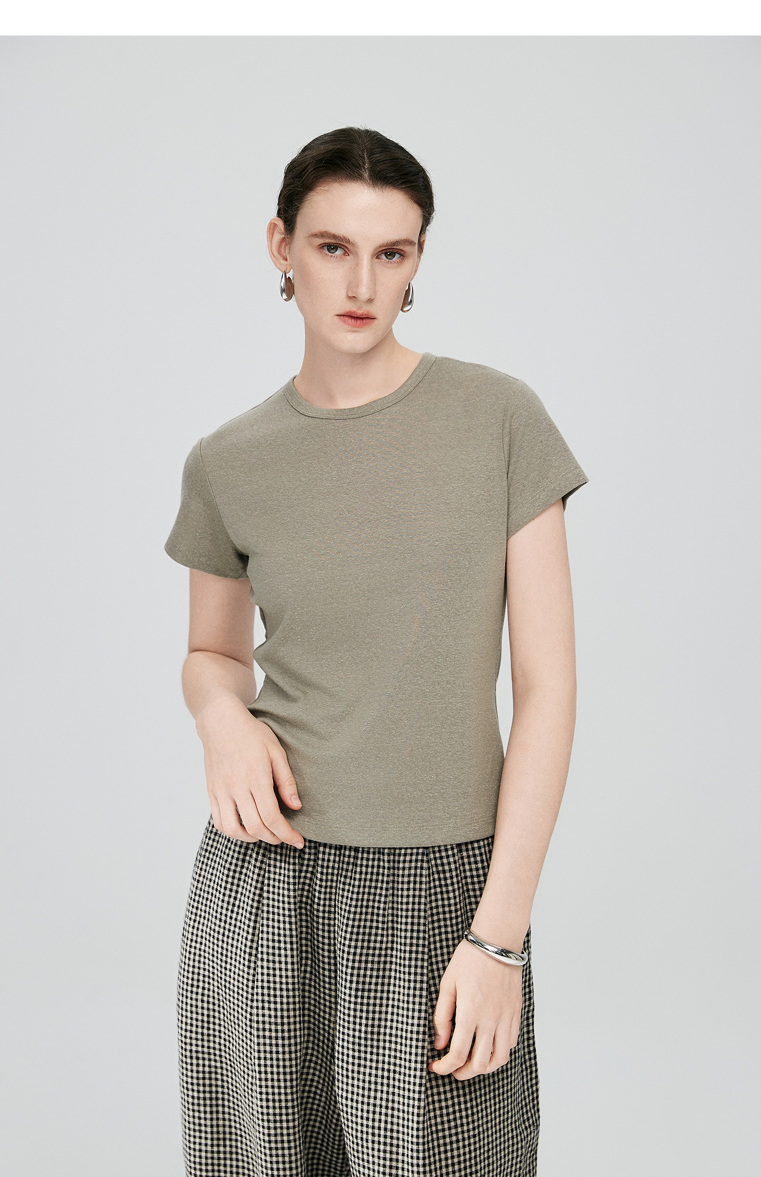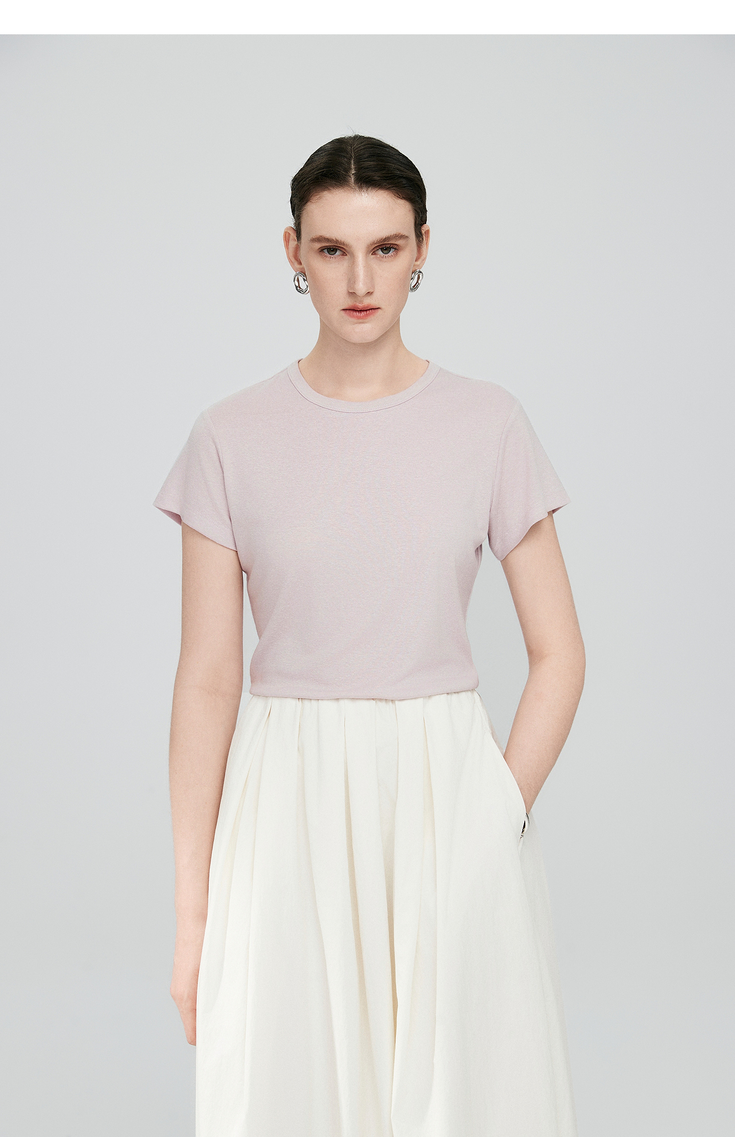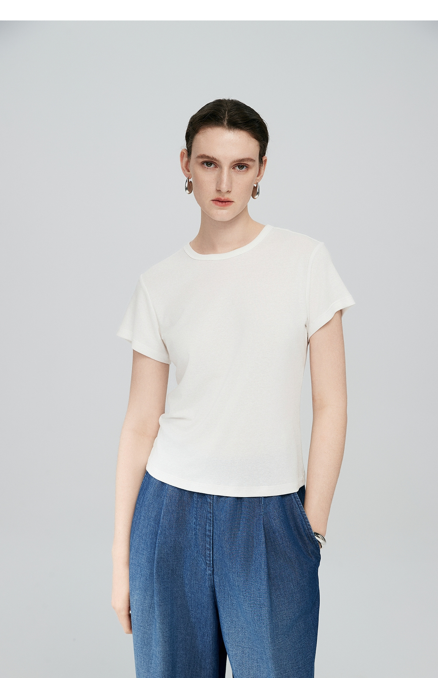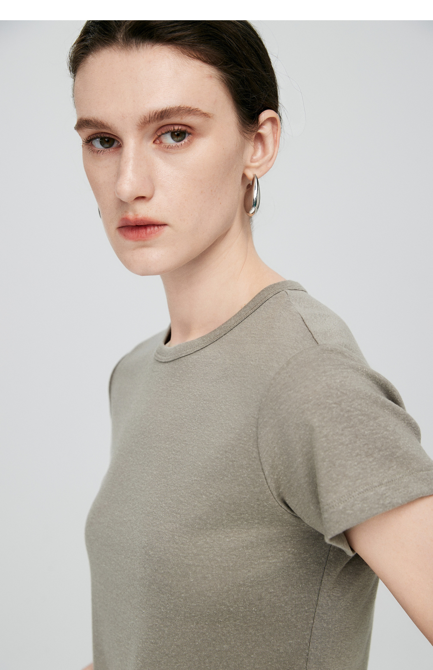 棉仓356801001 -法国罗纹微宽松长袖T恤