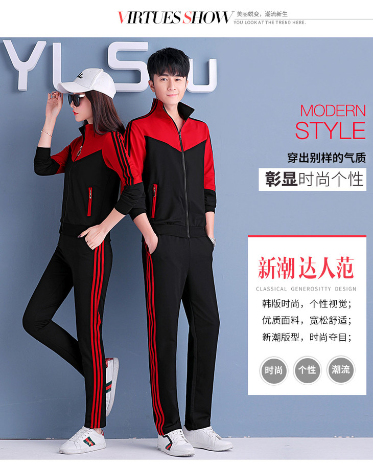 【运动服】 运动套装女 休闲学生套装班园服情侣装棉外套