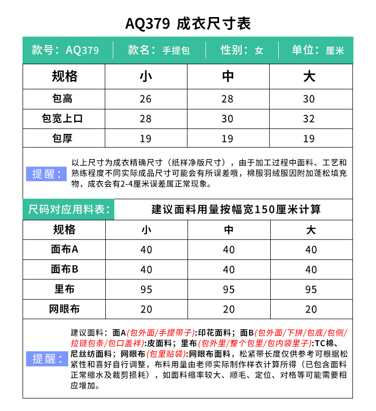 裁缝学苑AQ379多层手提包女士上班通勤手拎包纸样手腕包样板