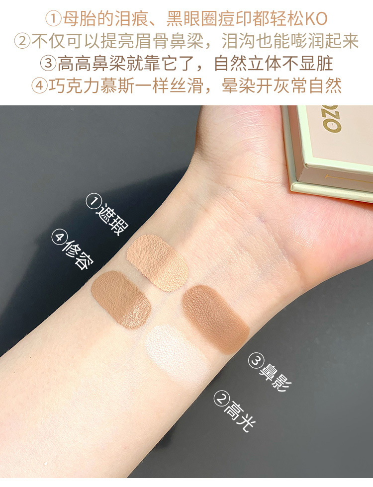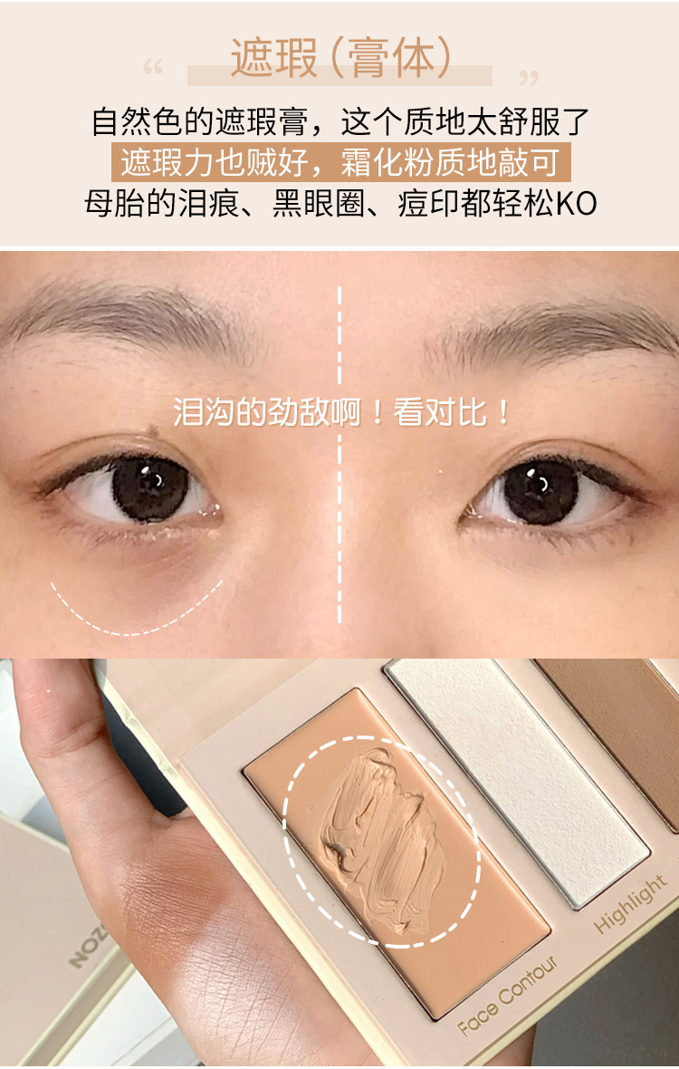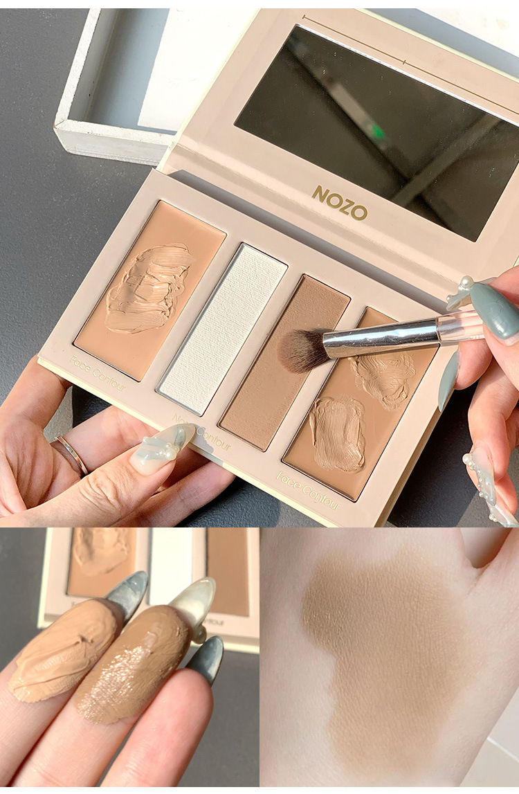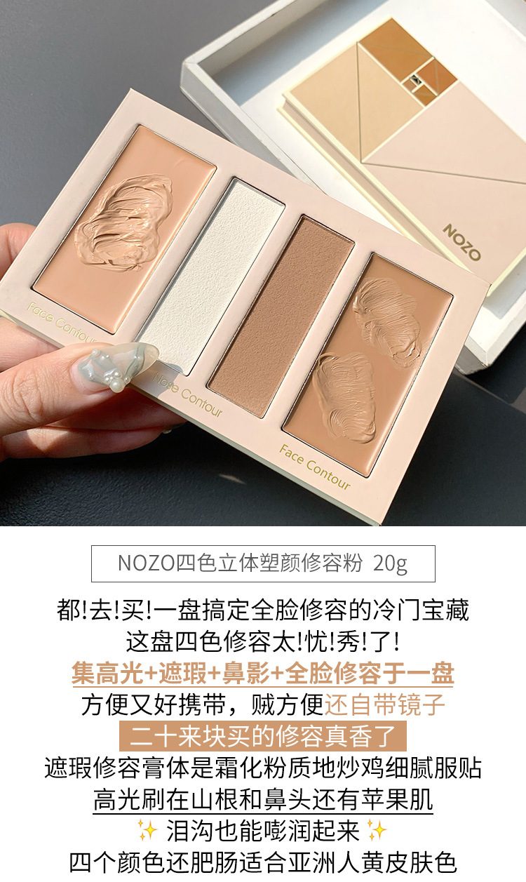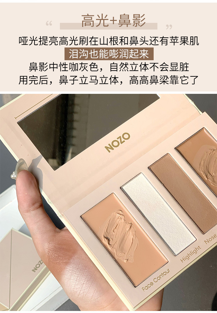 】nozo四色高光修容盘遮瑕鼻影粉提亮阴影侧影两用组合三合一体盘