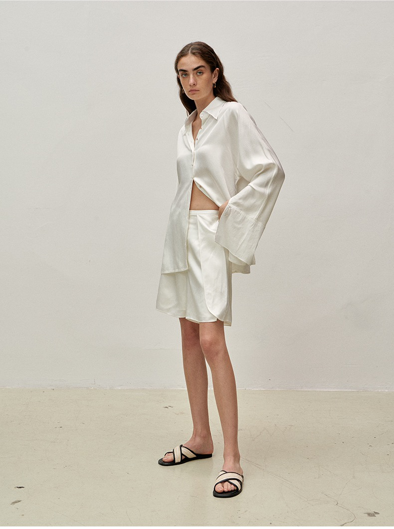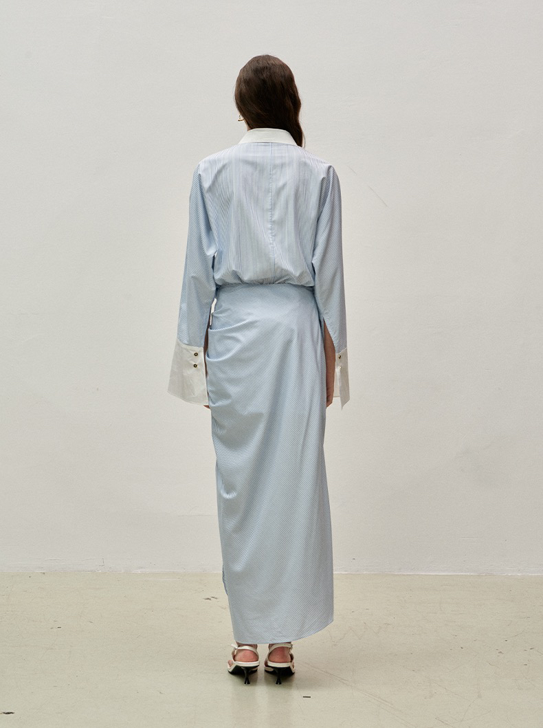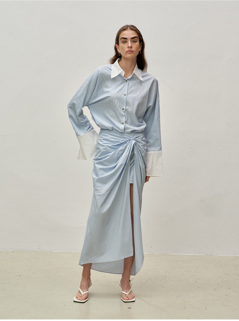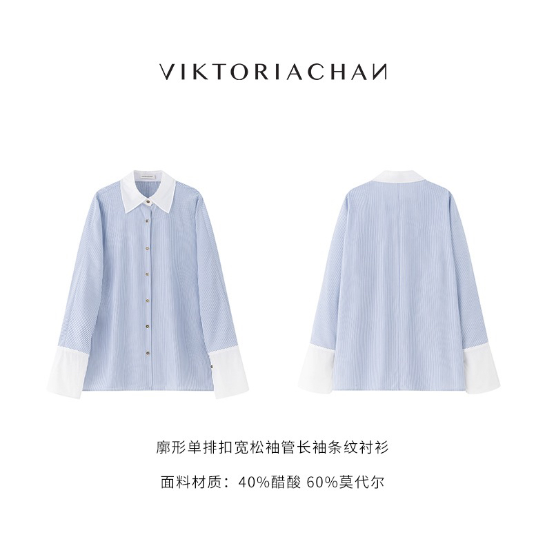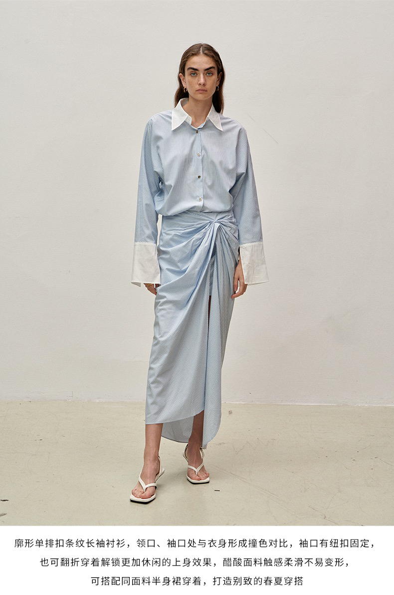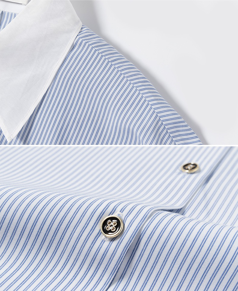 Viktoria Chan | SS23004 Stina flowy shirt [ 衬衫 白 / 蓝白条纹 ]