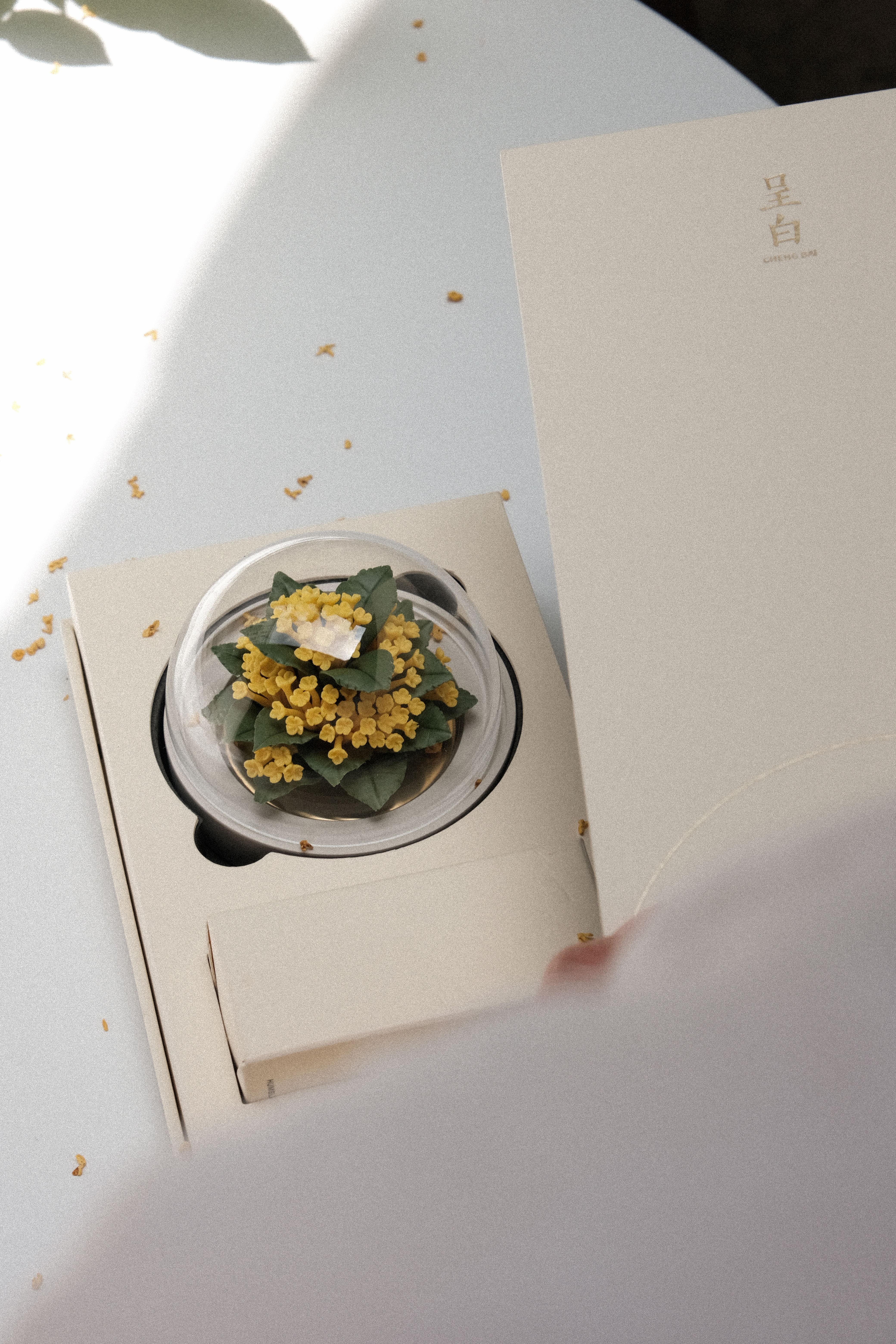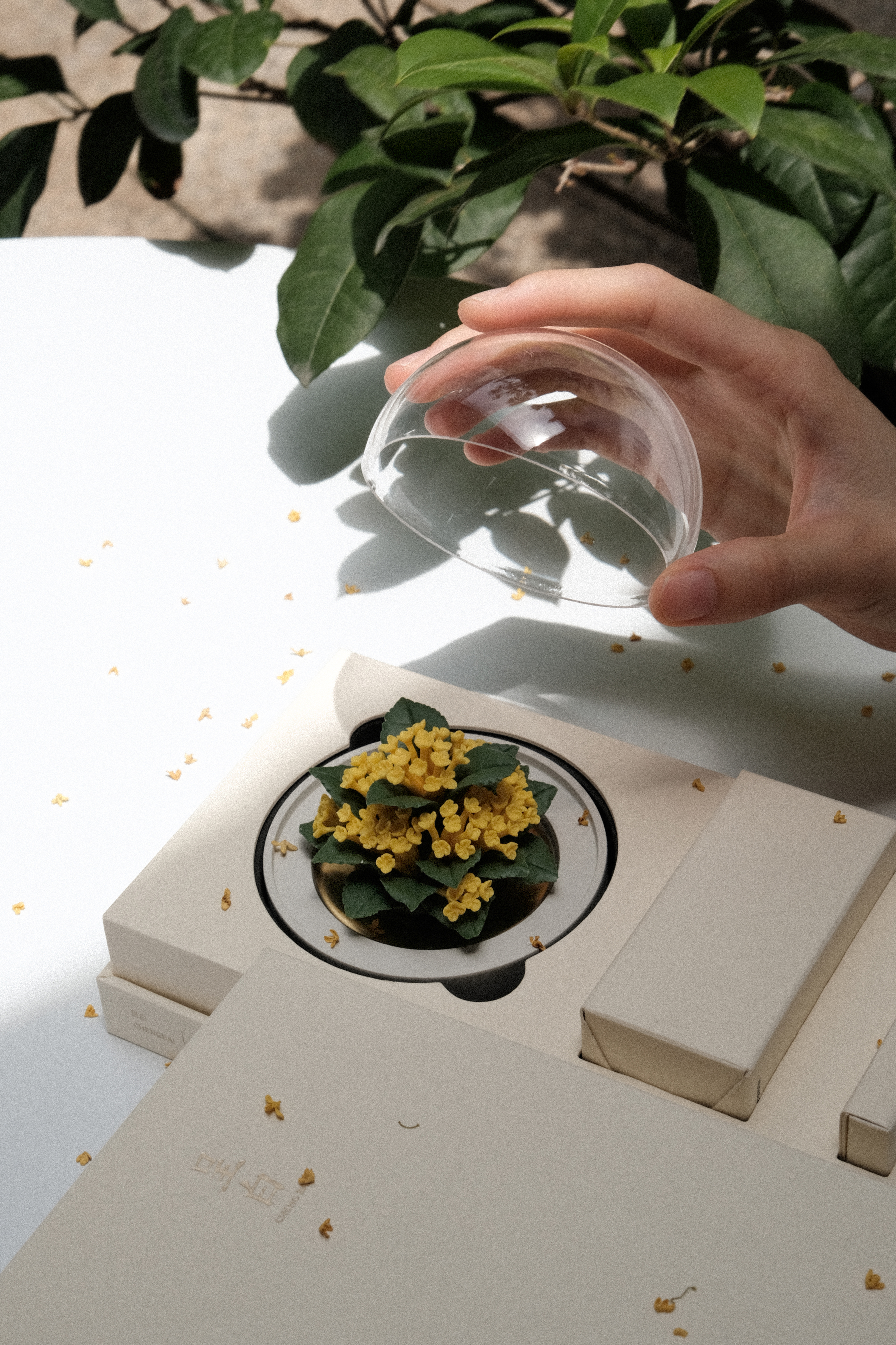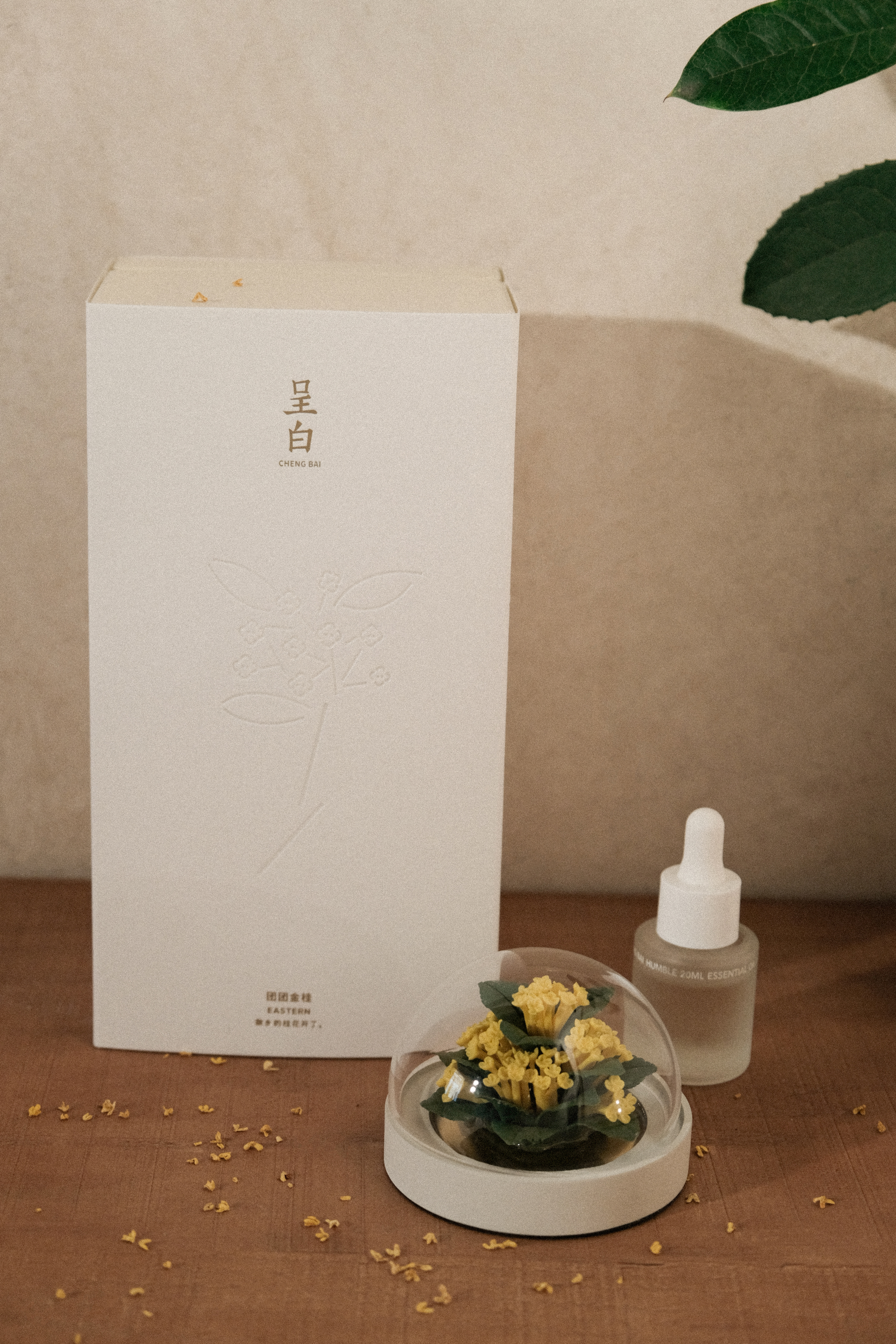 取下防尘罩,置于安全处,往瓷花表面小心滴入3-4滴精油便可开始拓香;
