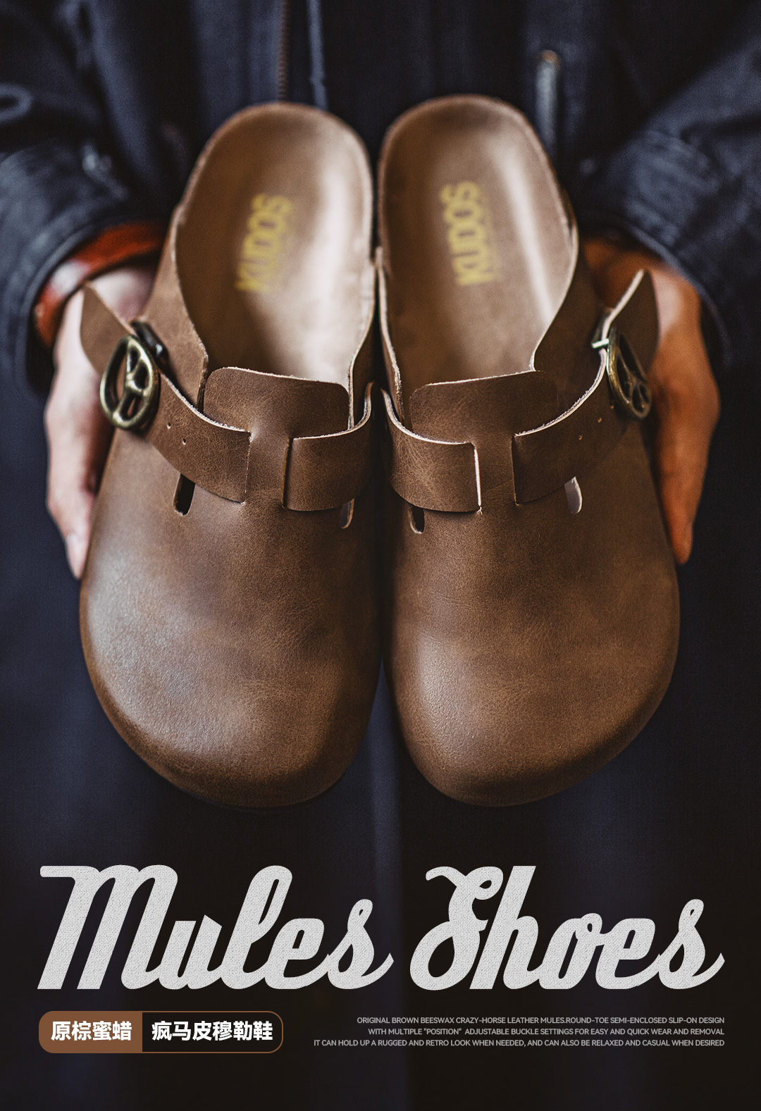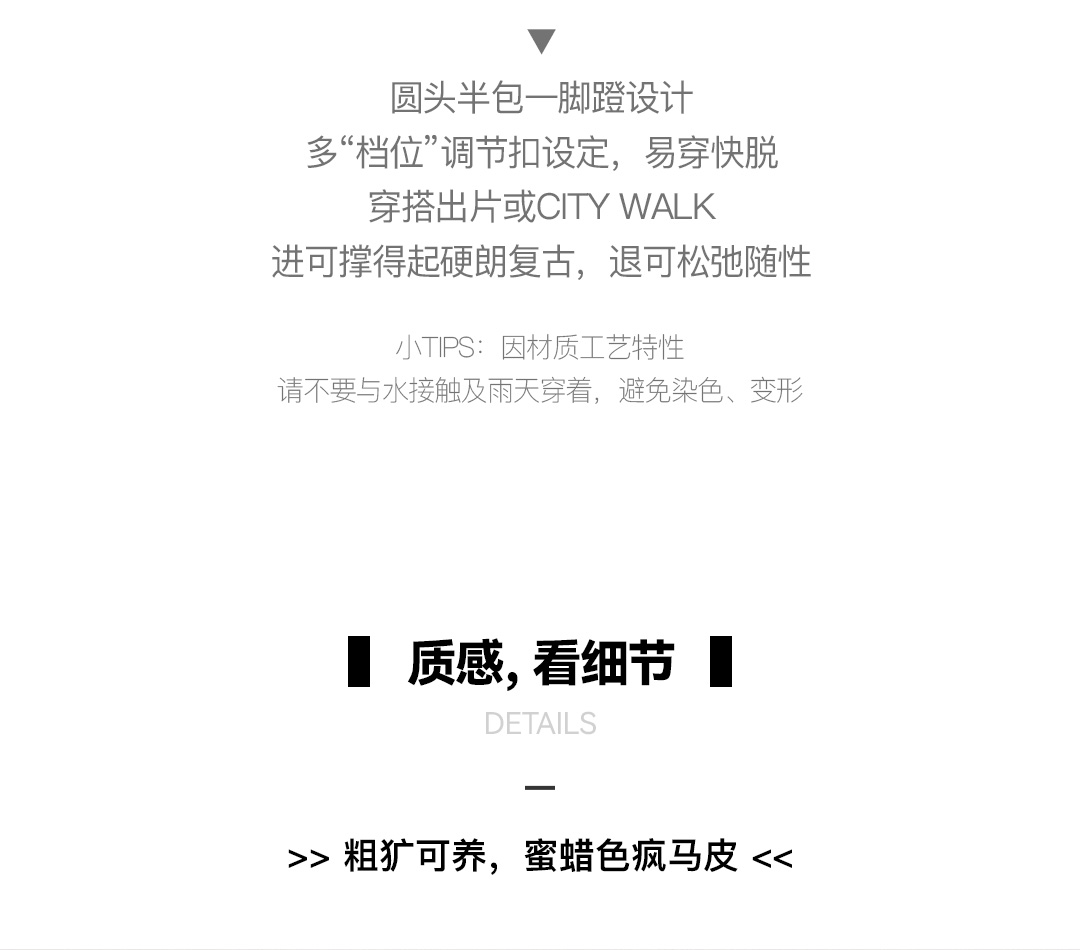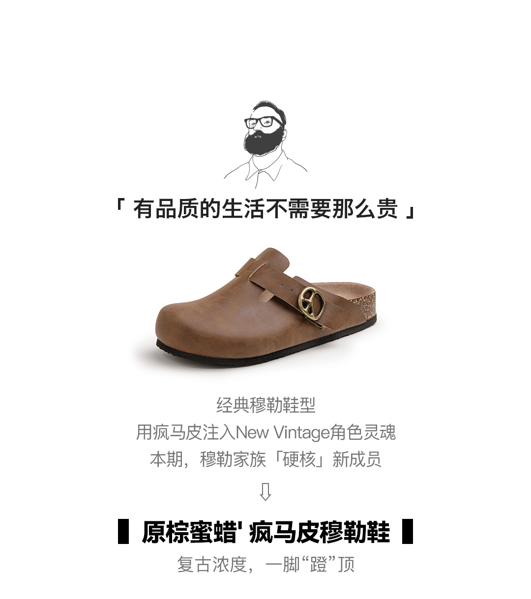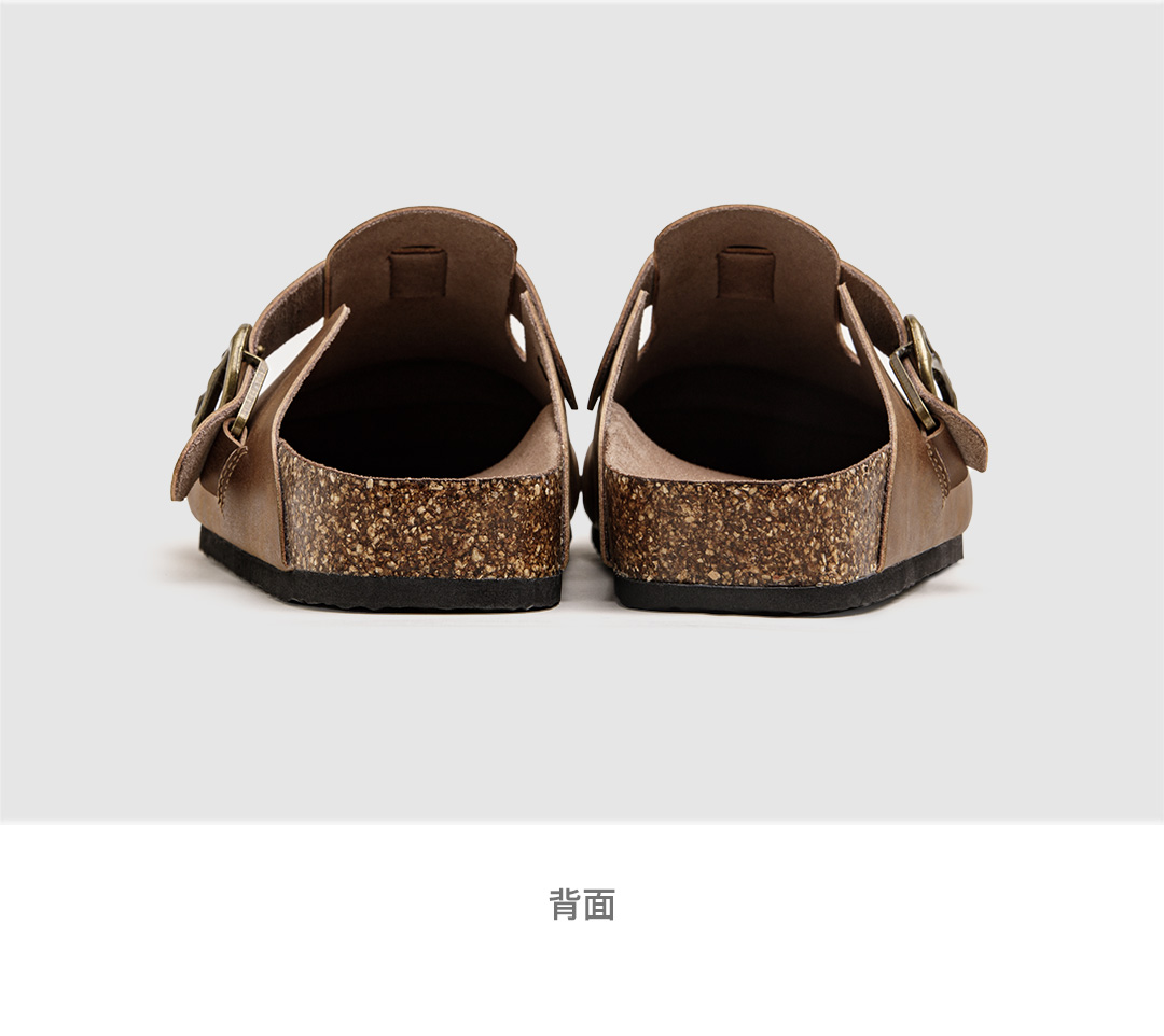 马登穆勒鞋疯马皮懒人半拖男鞋新款厚底外穿软木包头休闲复古拖鞋