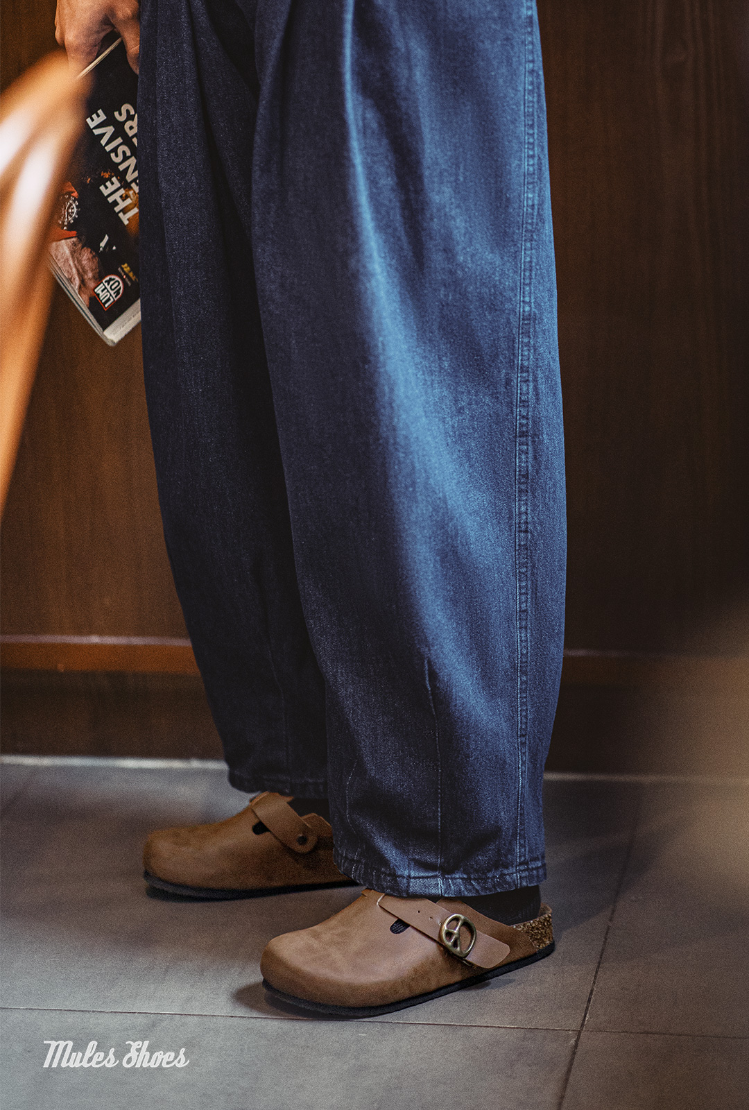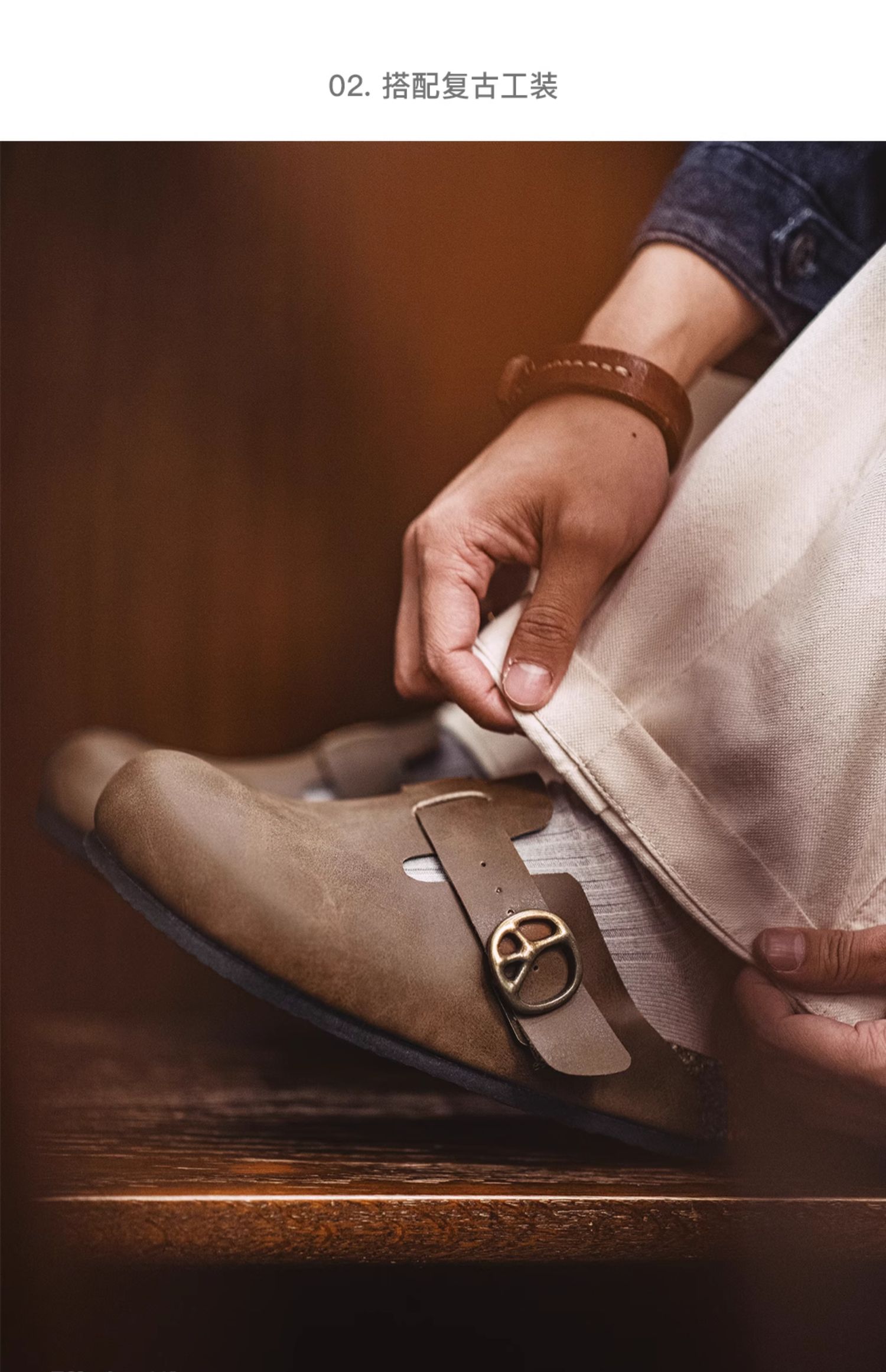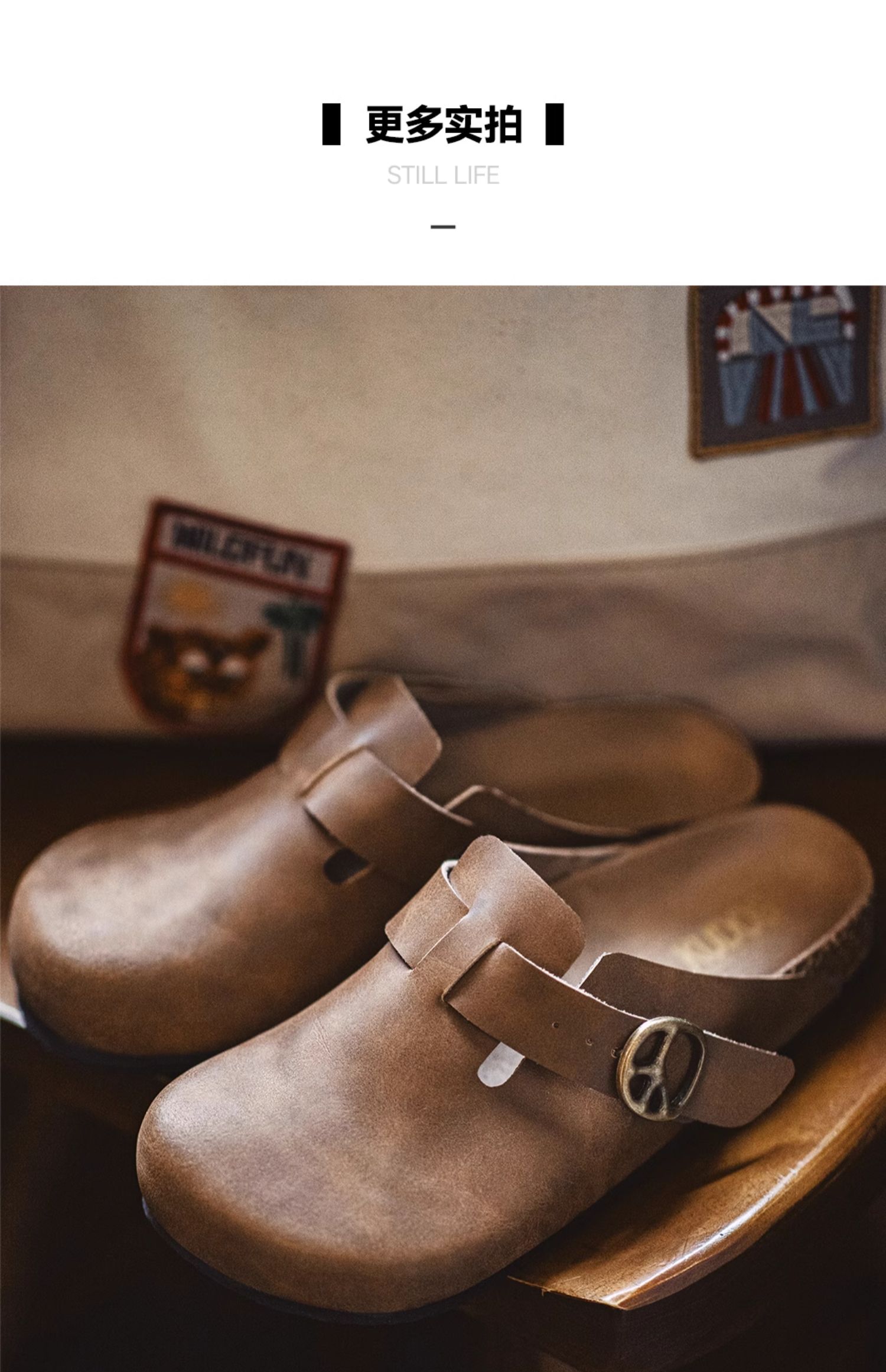 马登穆勒鞋疯马皮懒人半拖男鞋新款厚底外穿软木包头休闲复古拖鞋