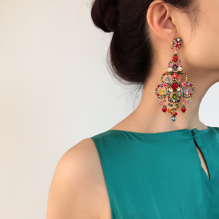 耳环材质为:珠宝级合金镀14K黄金 施华洛世奇水晶 珠宝级树脂 人工玻璃水晶。