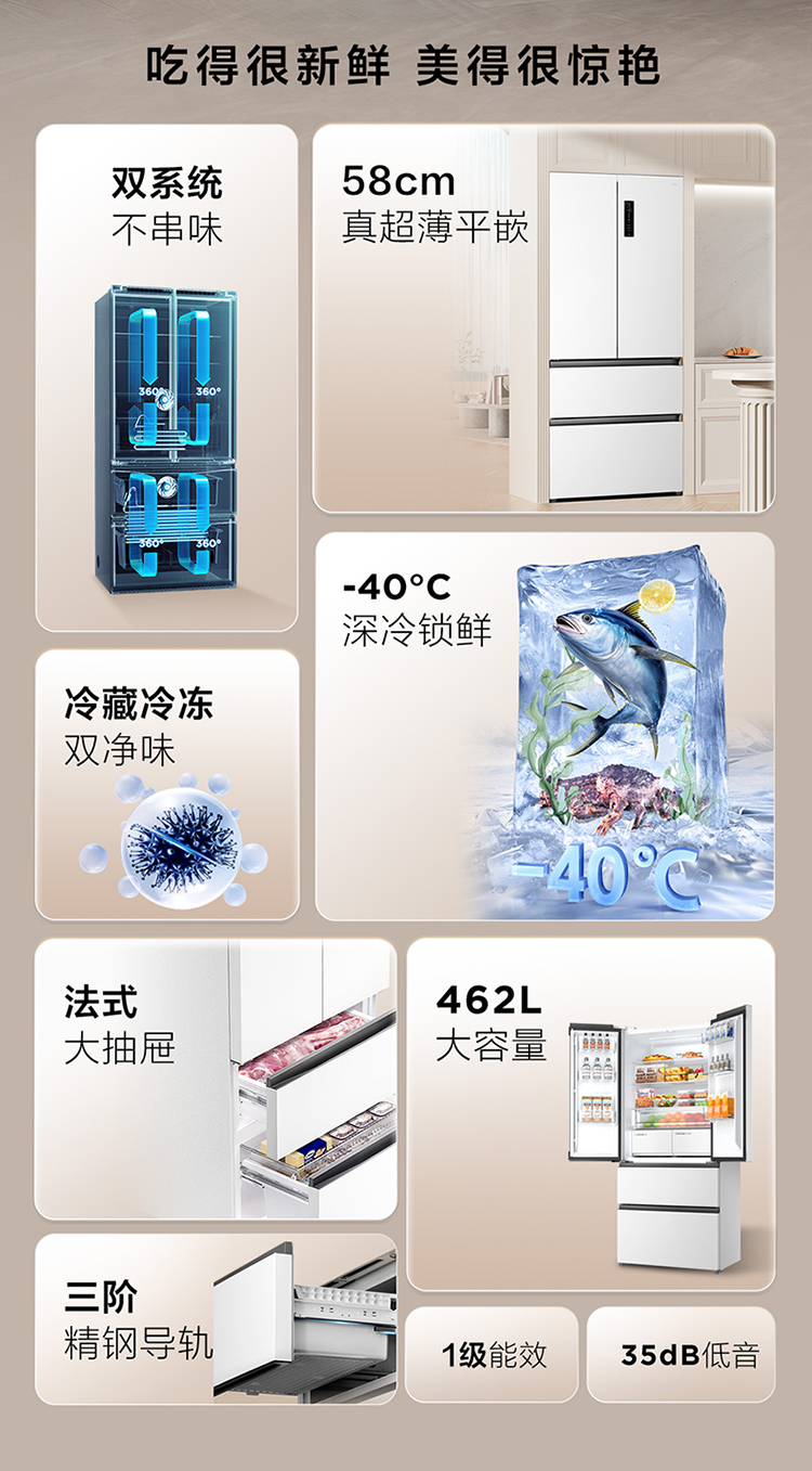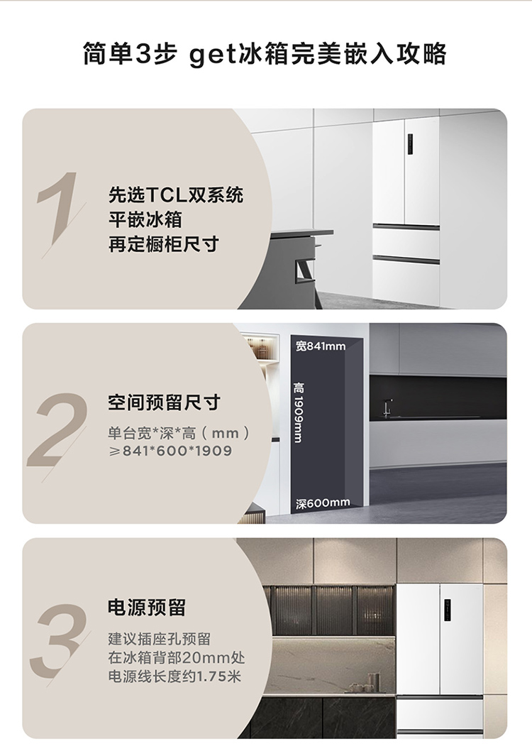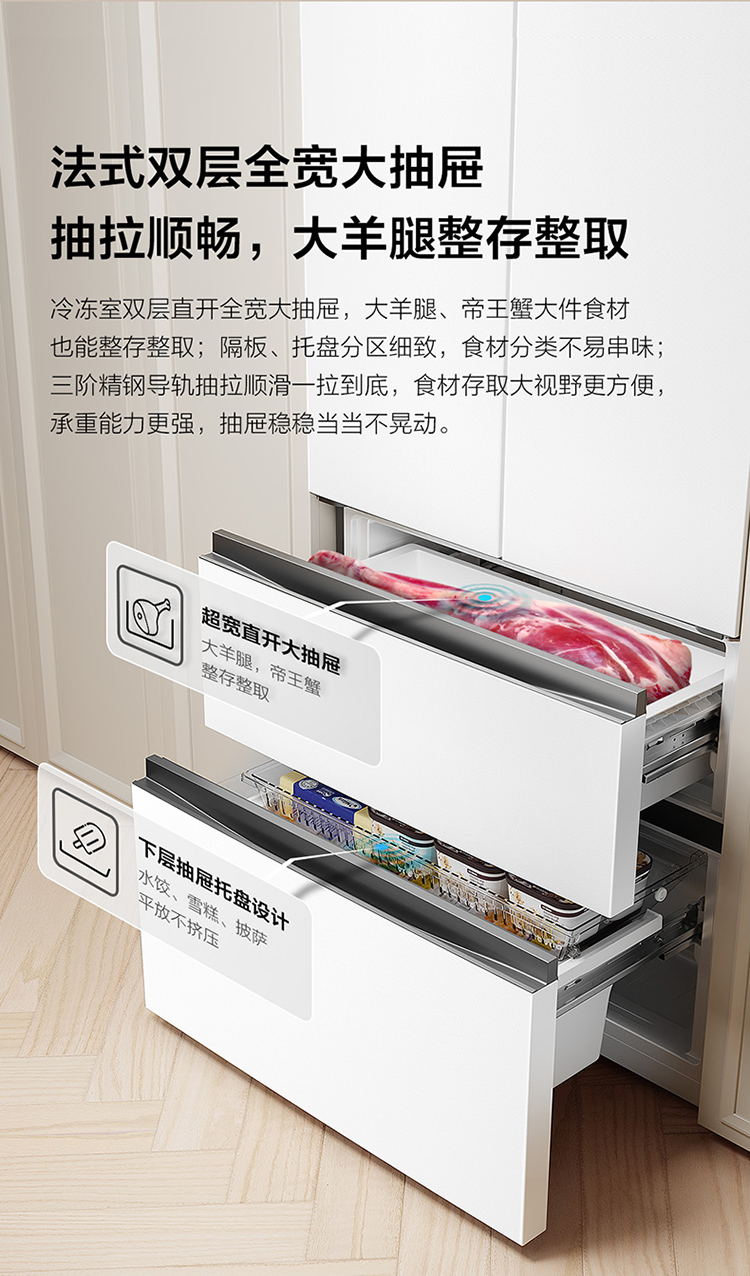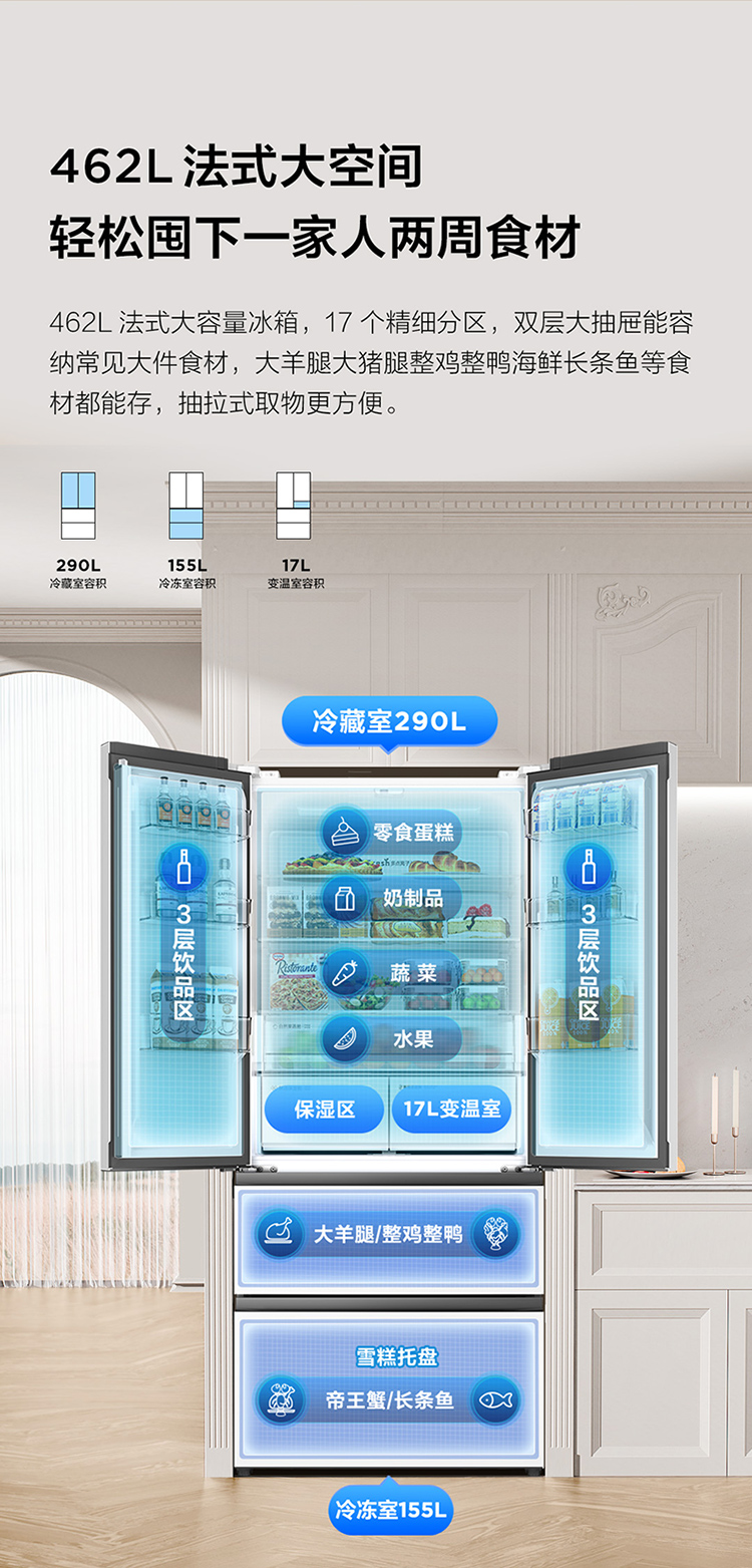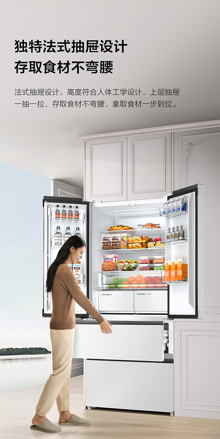 TCL大无界462升T9 Pro法式多门四开门58cm超薄零嵌入式双系统双循环R462T9-DQS