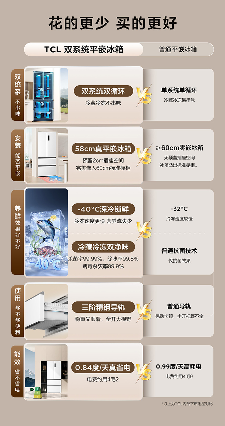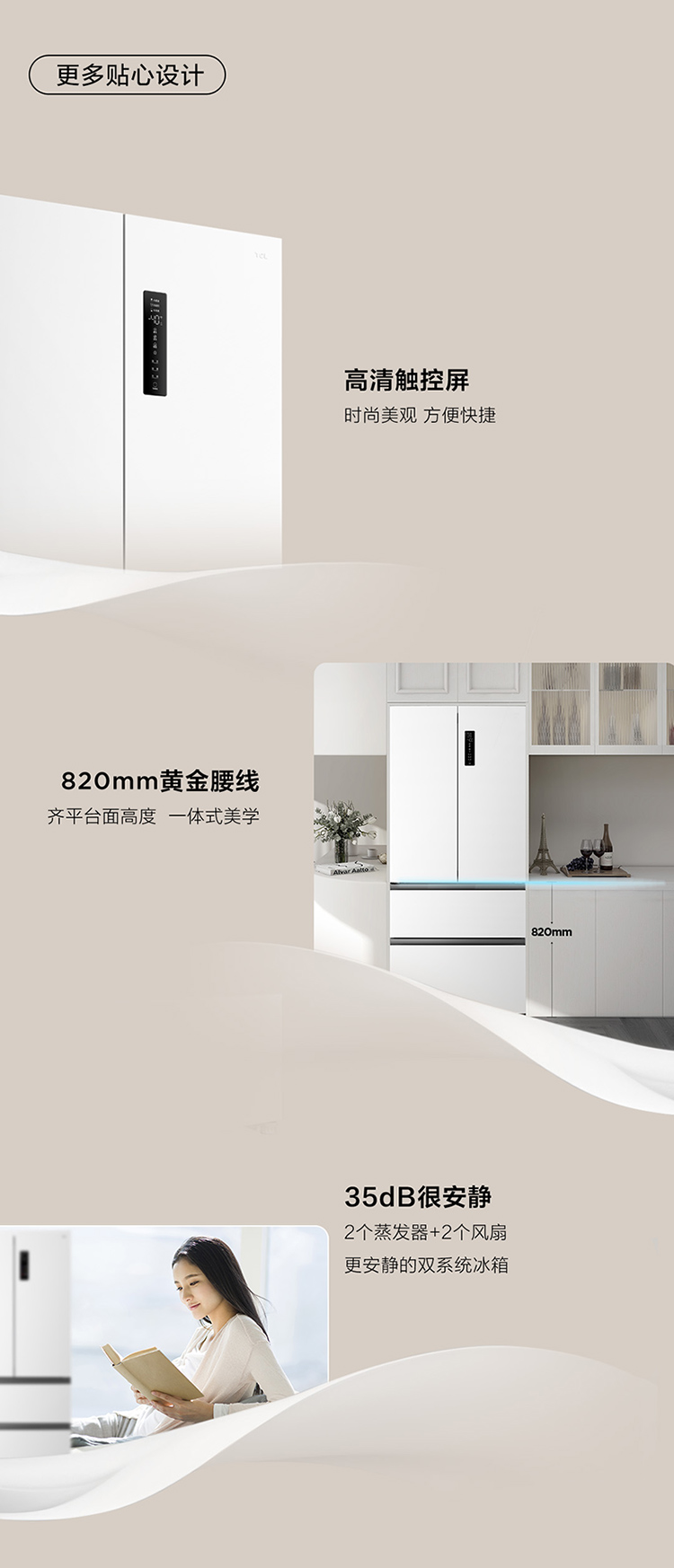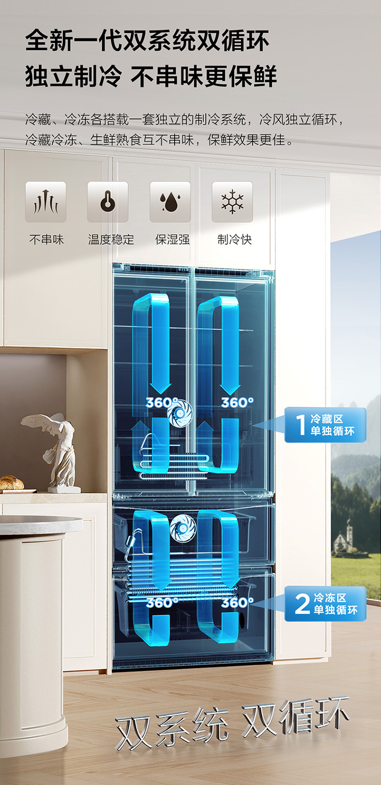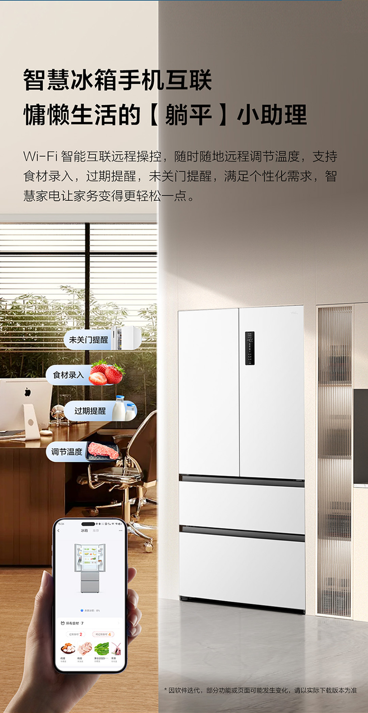 TCL大无界462升T9 Pro法式多门四开门58cm超薄零嵌入式双系统双循环R462T9-DQS