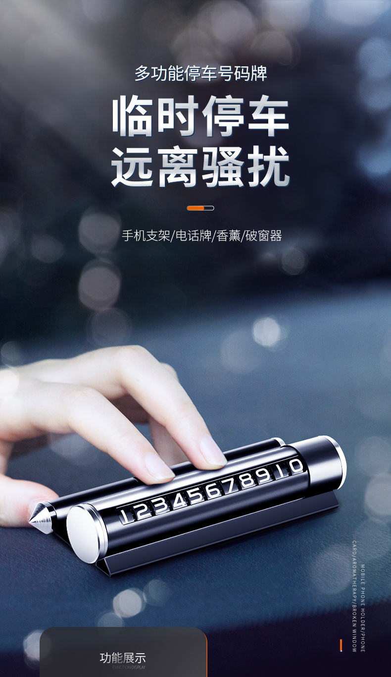 【四合一多功能停车手机支架破窗】合金材质 高温暴晒不变形 无痕底部胶 一沾即稳
