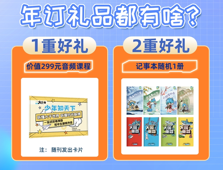 【开学季活动】自2026年3月1日起,阳光少年报/阳光大少年订阅一年即赠:音频卡一张+阳光少年报记事本随机一册。