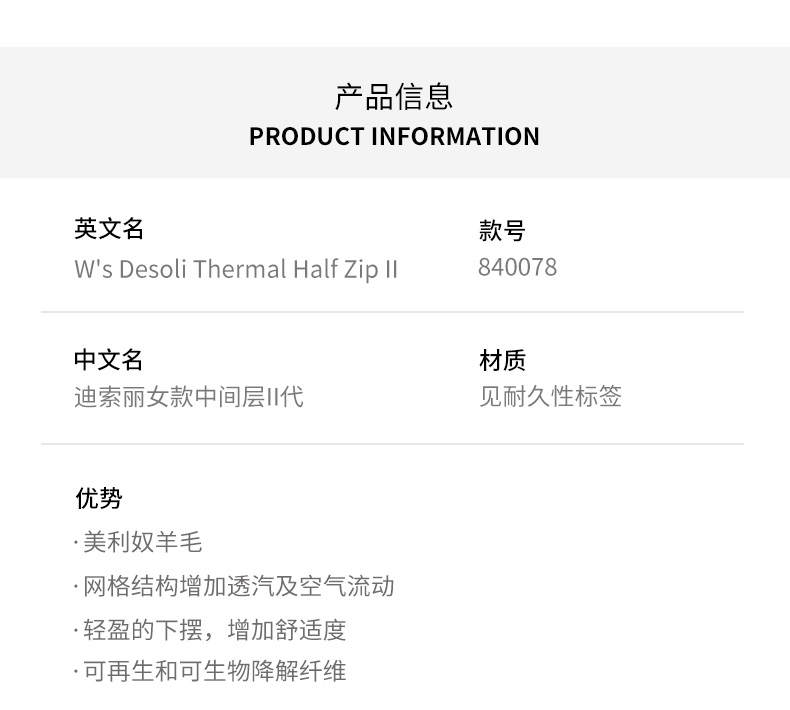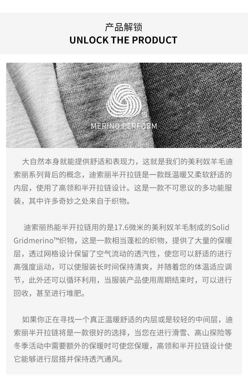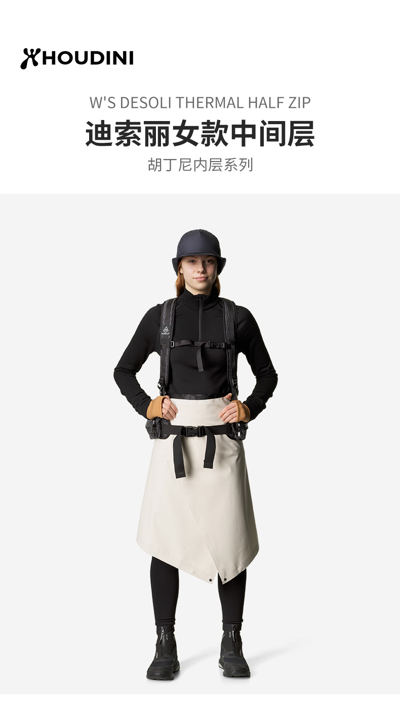 HOUDINI胡丁尼Desoli 迪索丽 II代 女户外秋冬保暖半拉链羊毛长袖打底衫 840078