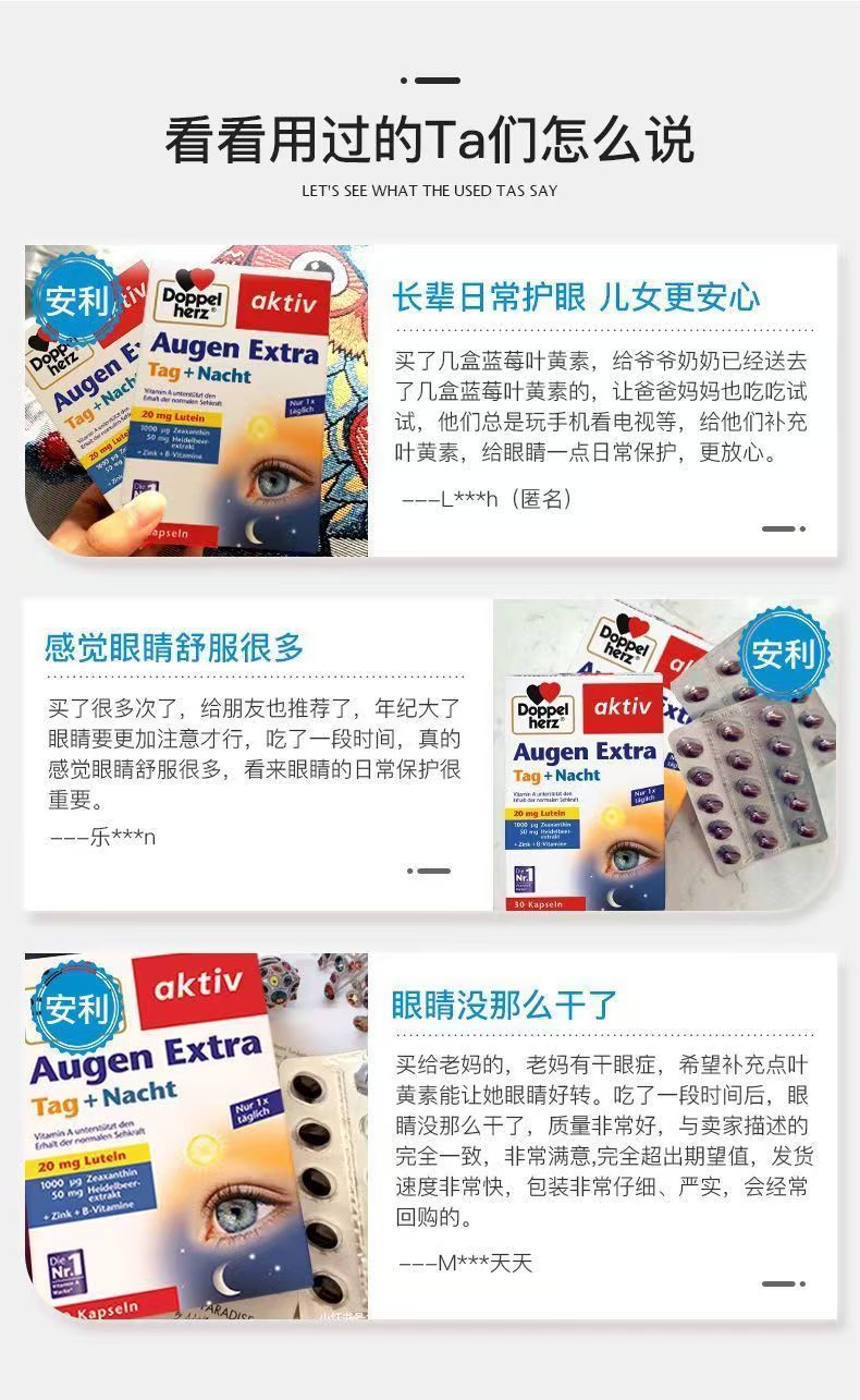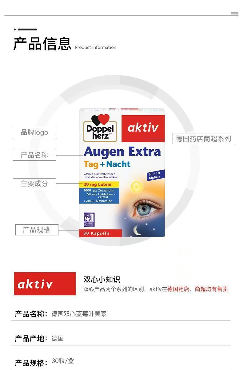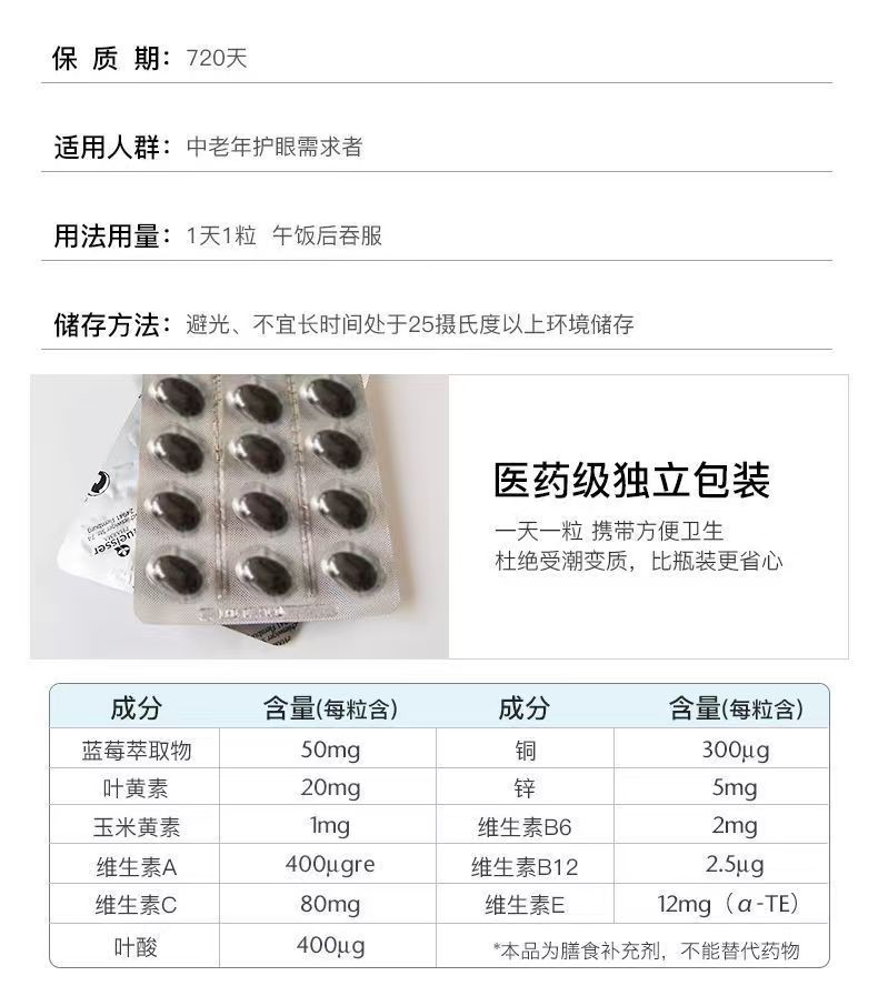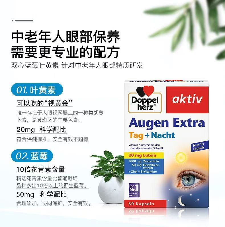 【保税仓】德国双心蓝莓叶黄素护眼胶囊中老年护眼干涩疲劳近视30粒