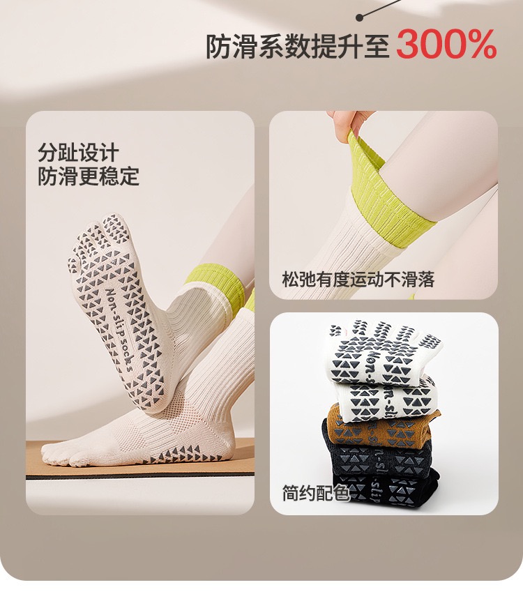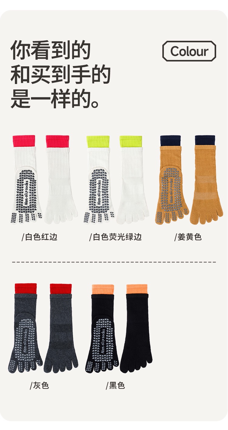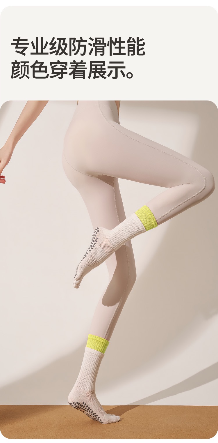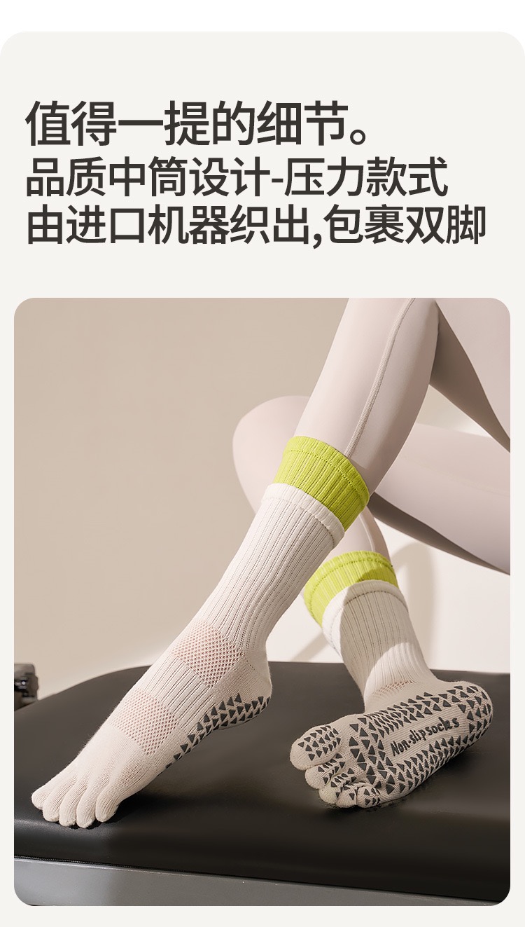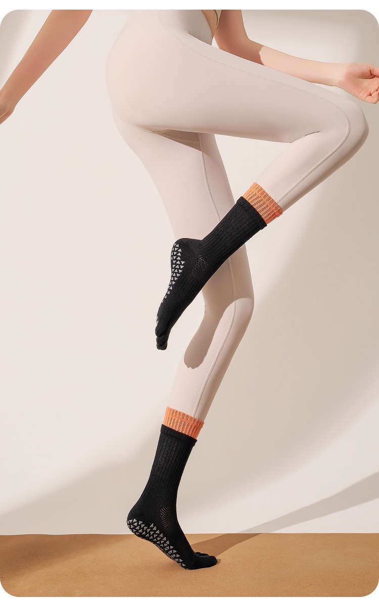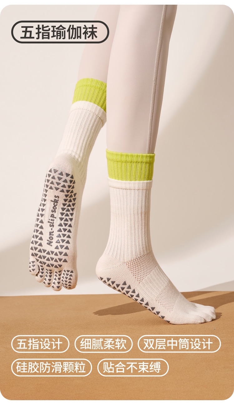 普拉提五指袜防滑瑜伽袜子长筒女健身双层中筒拼色网眼透气 000FT263