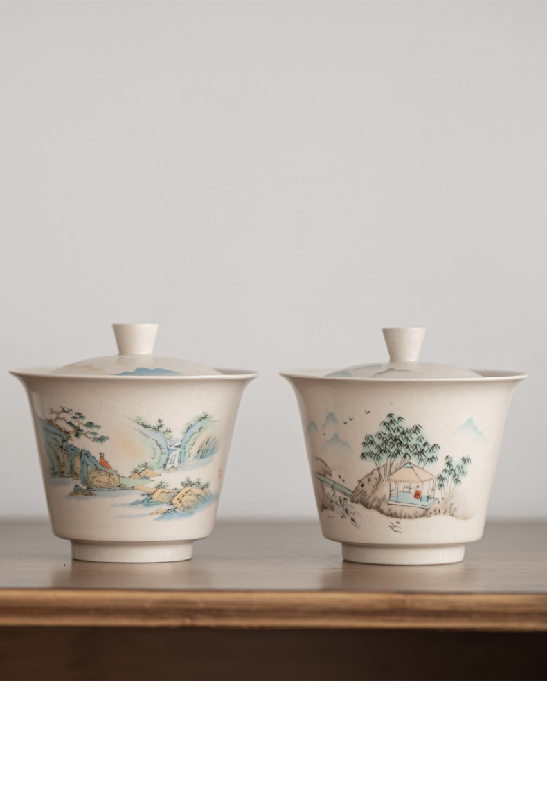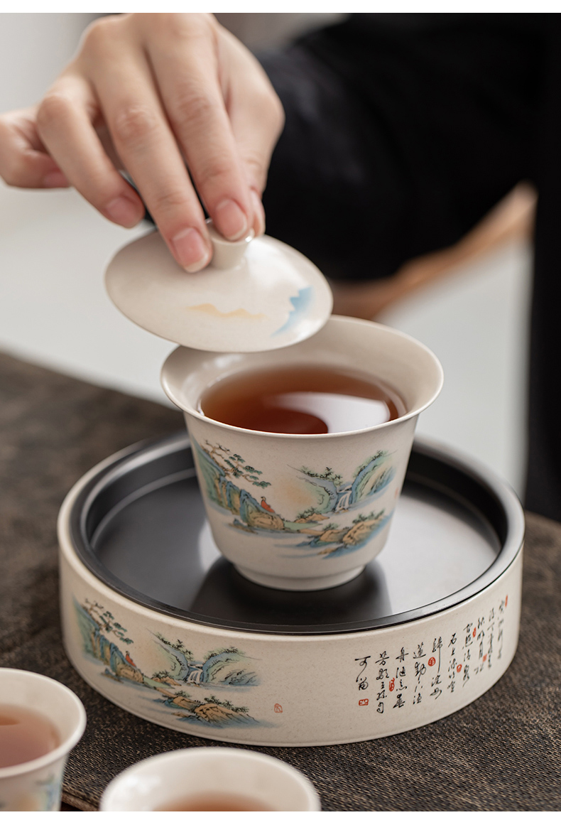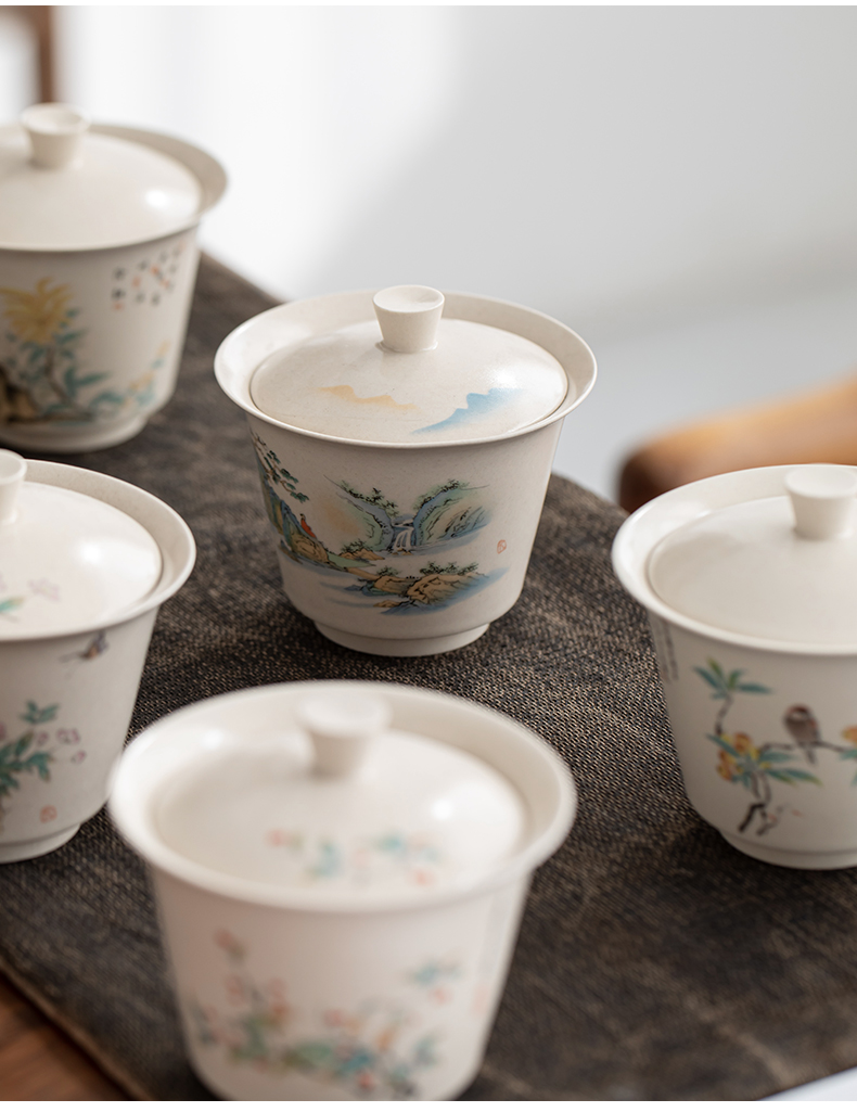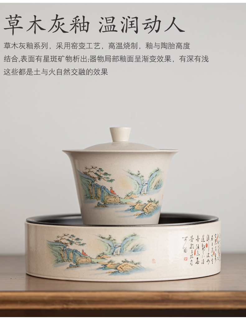 永利汇盖碗草木灰手工陶瓷三才碗复古家用茶杯功夫茶手抓泡茶碗