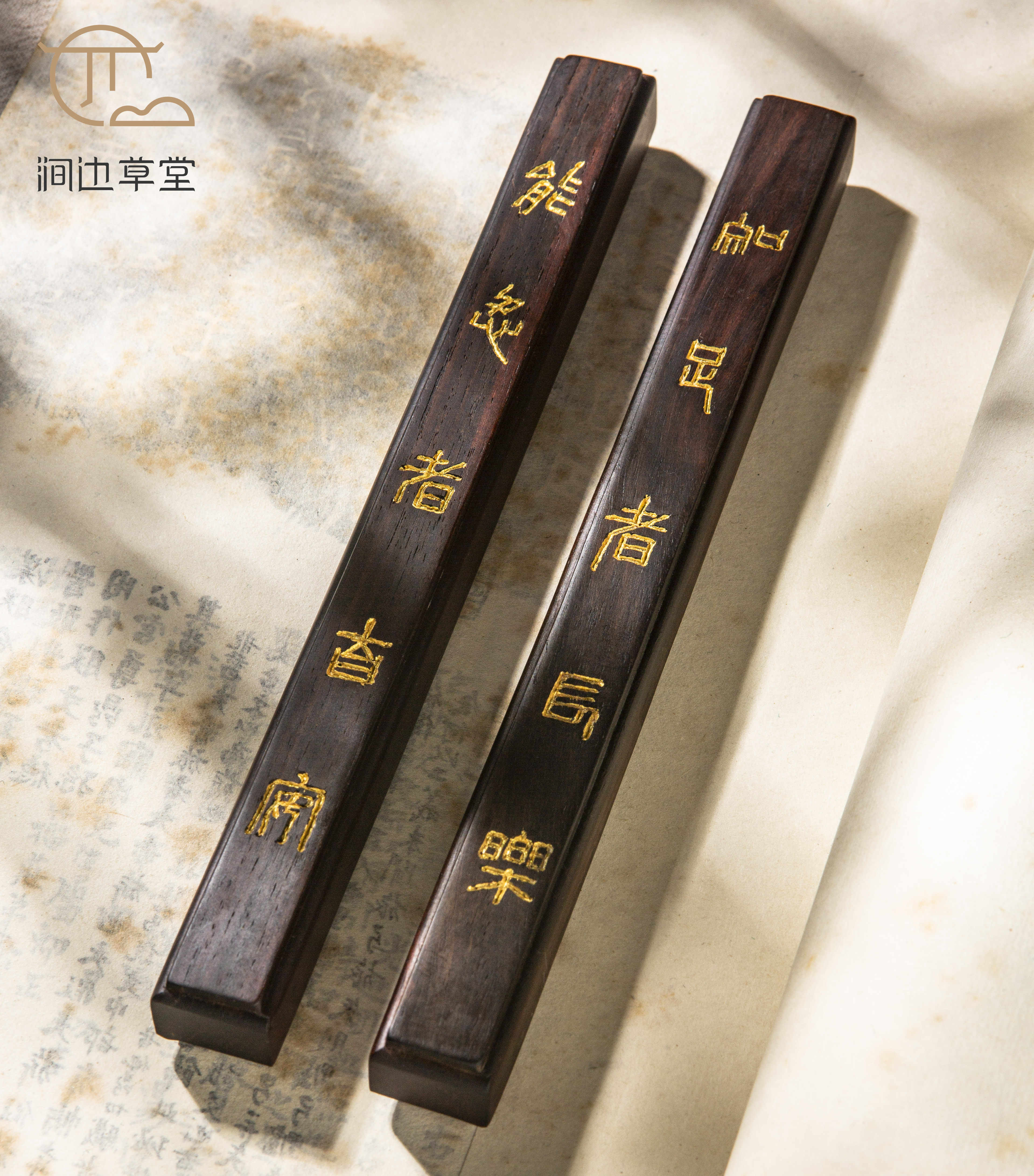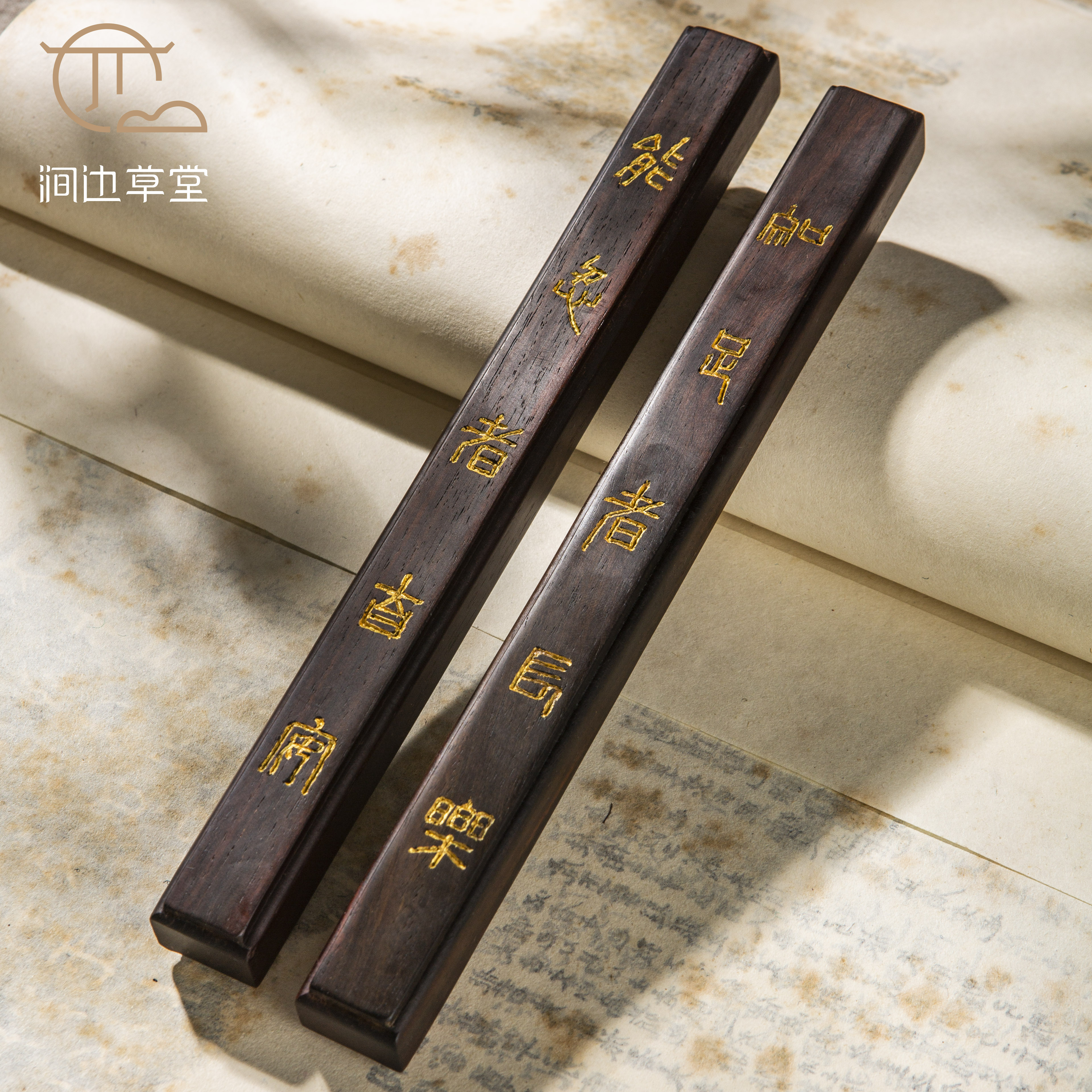 此镇纸选料为清代中期老红木家具材料,此种材料在清代晚期就已经绝种,十分稀有。涧边草堂工艺美术师用此材料纯手工精雕近现代书画名家书房联,纯手工雕工精细,每一对都带边款,是收藏及实用的俱佳品。承载了200年历史岁月的老红木原材料加上书画名家的文学底蕴及精彩书法,创造出不可多得的韵味,一生用此镇尺一对足矣。