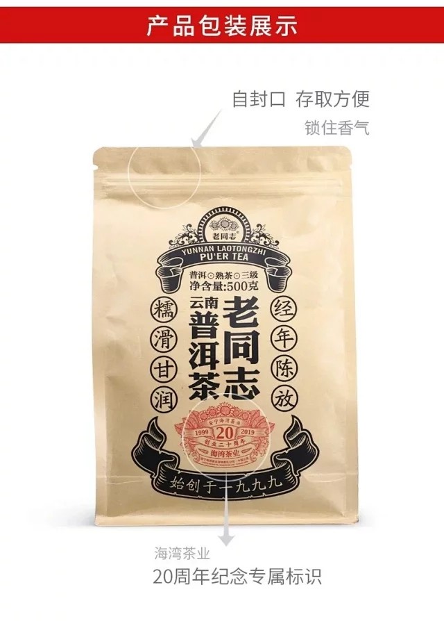 普洱茶 老同志 2019 年三级普洱散茶熟茶 500g