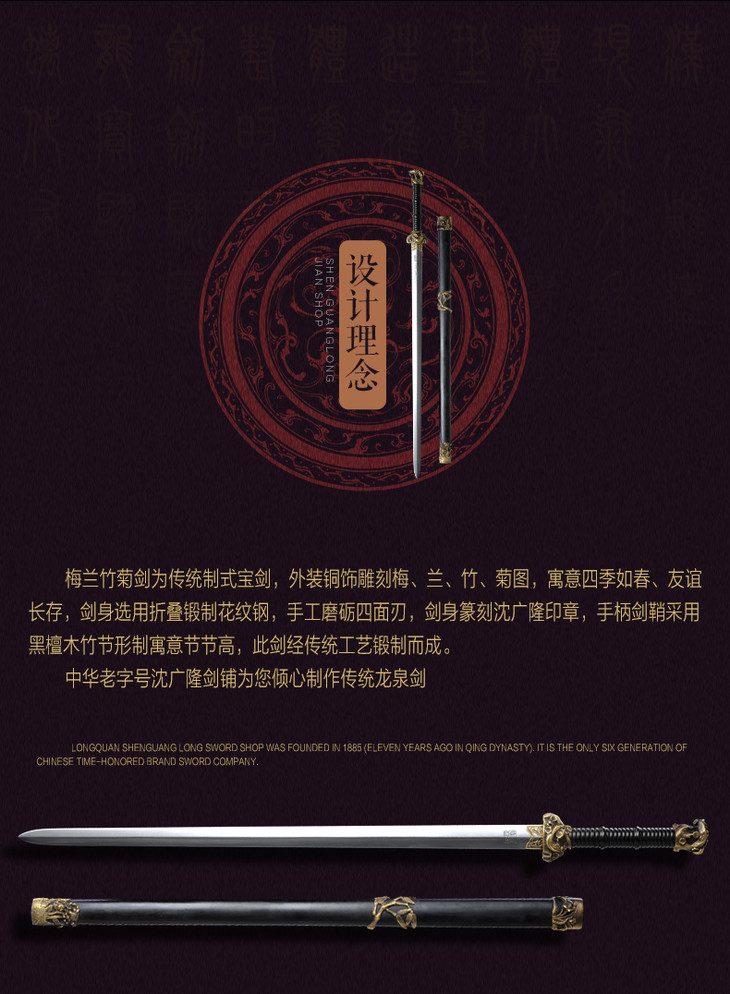 梅兰竹菊剑 龙泉沈广隆宝剑 手工花纹钢剑 传统剑 收藏剑 工艺品 未开刃