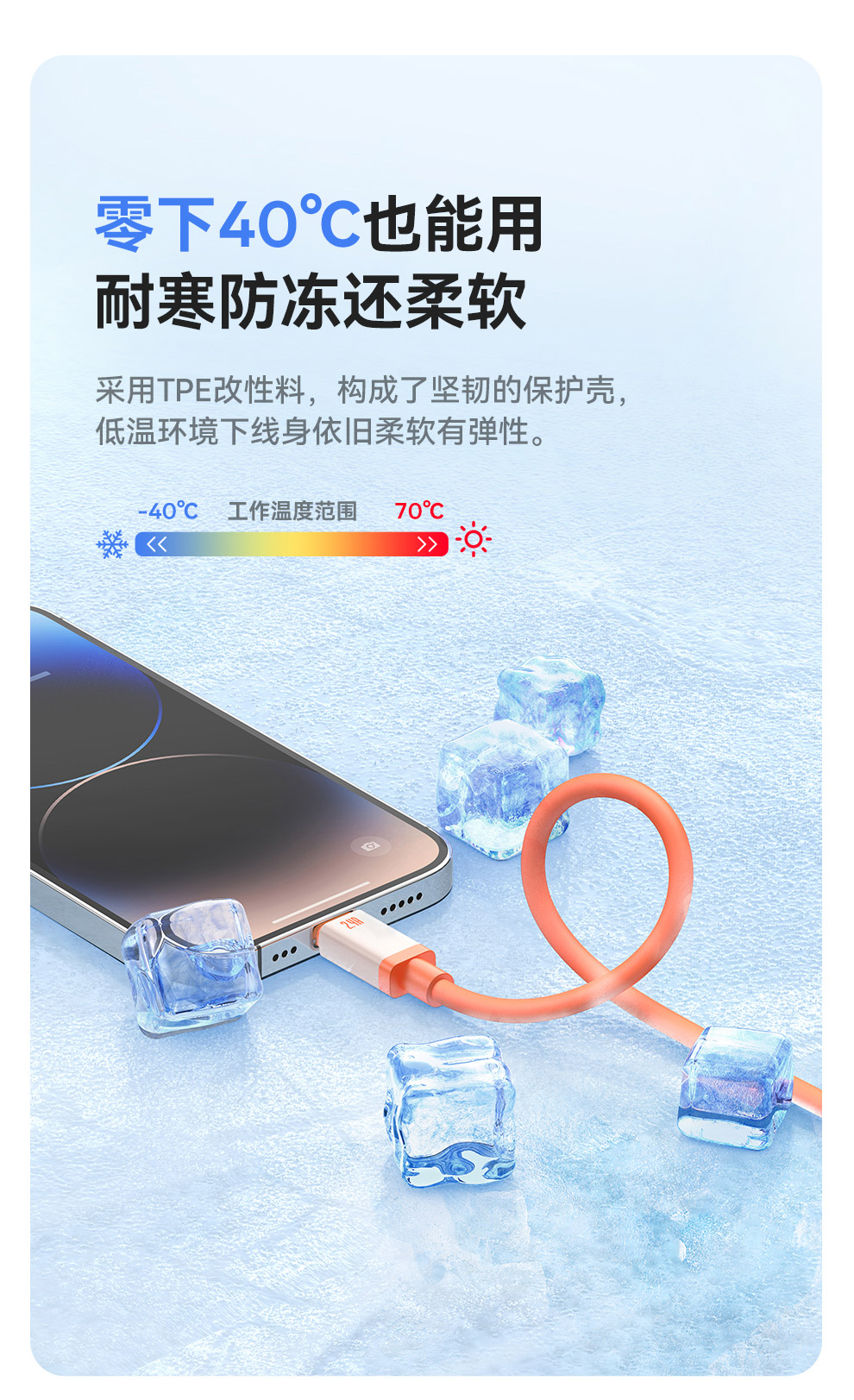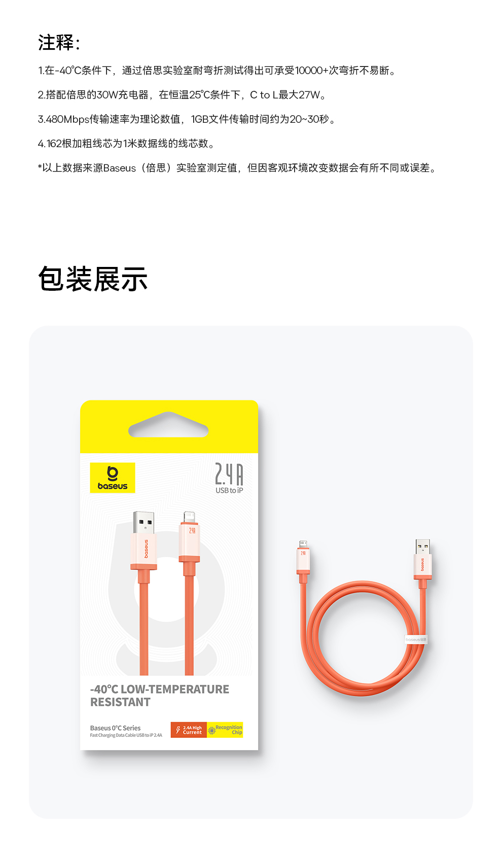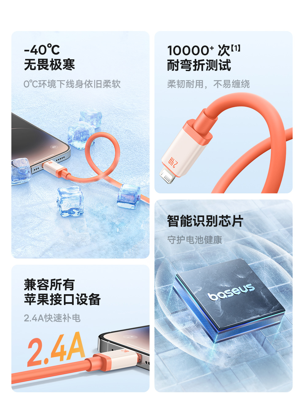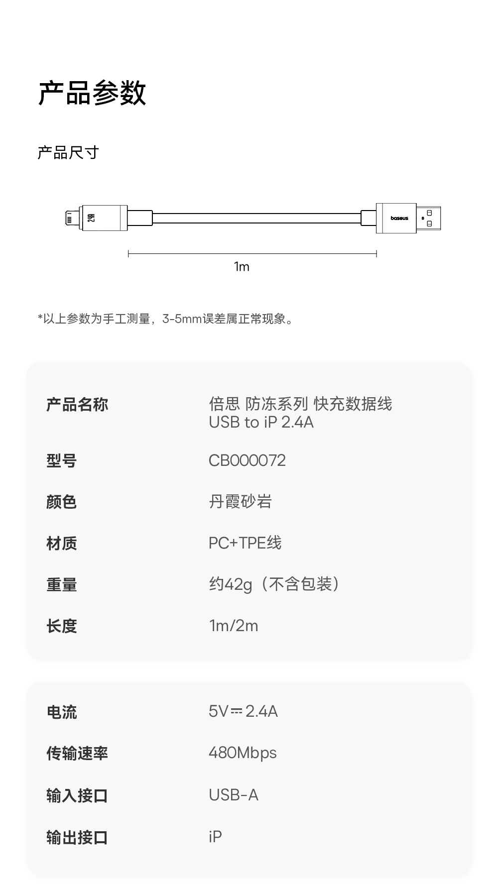 倍思 防冻系列 快充数据线 USB to iP 2.4A 2m 丹霞砂岩