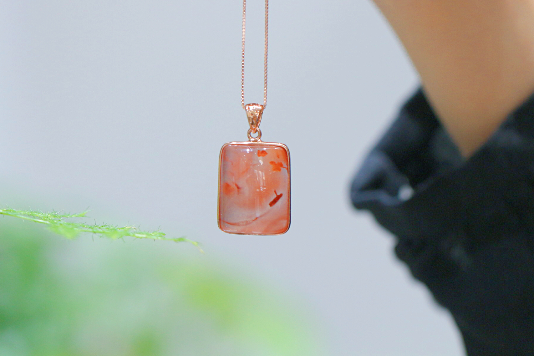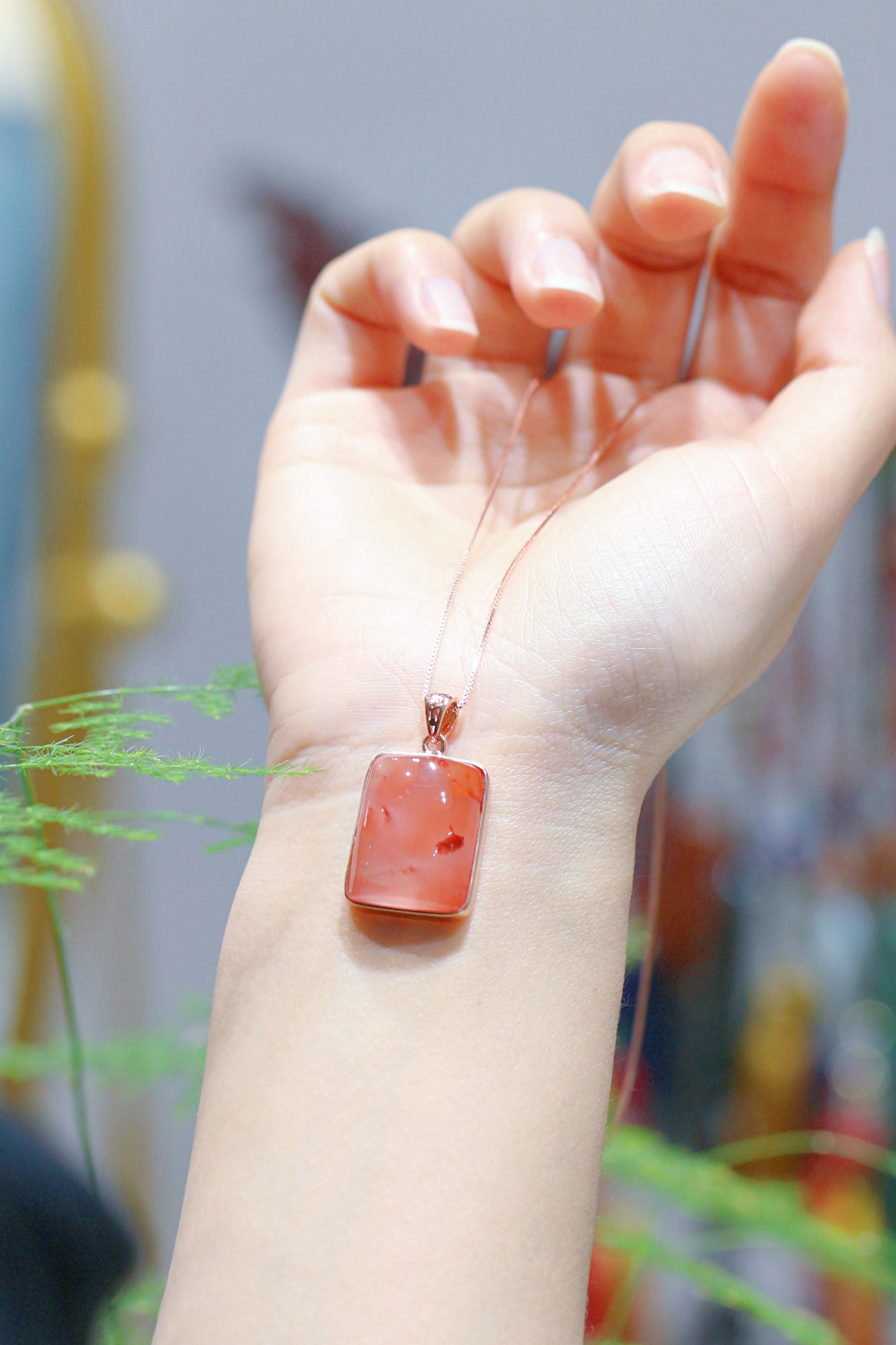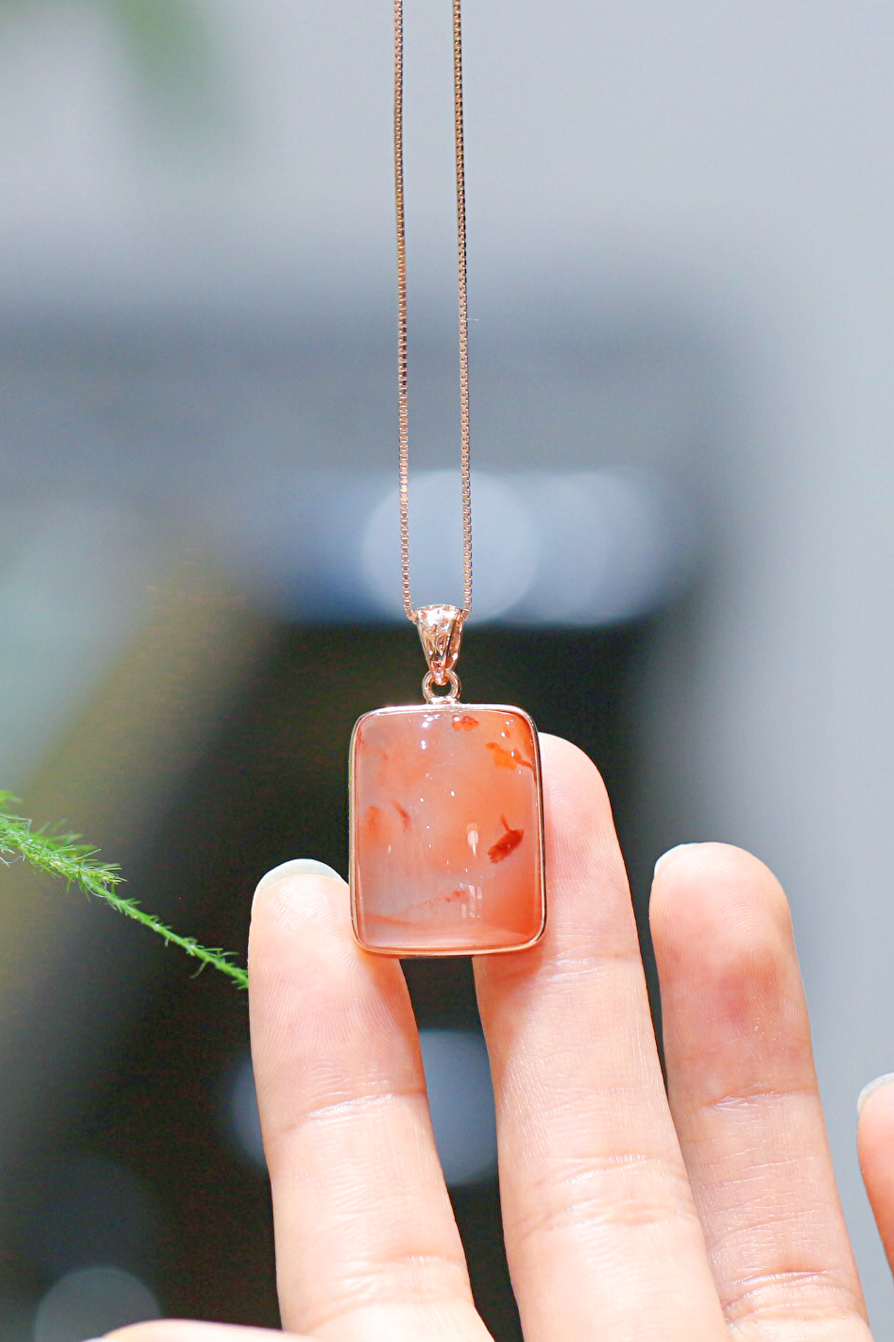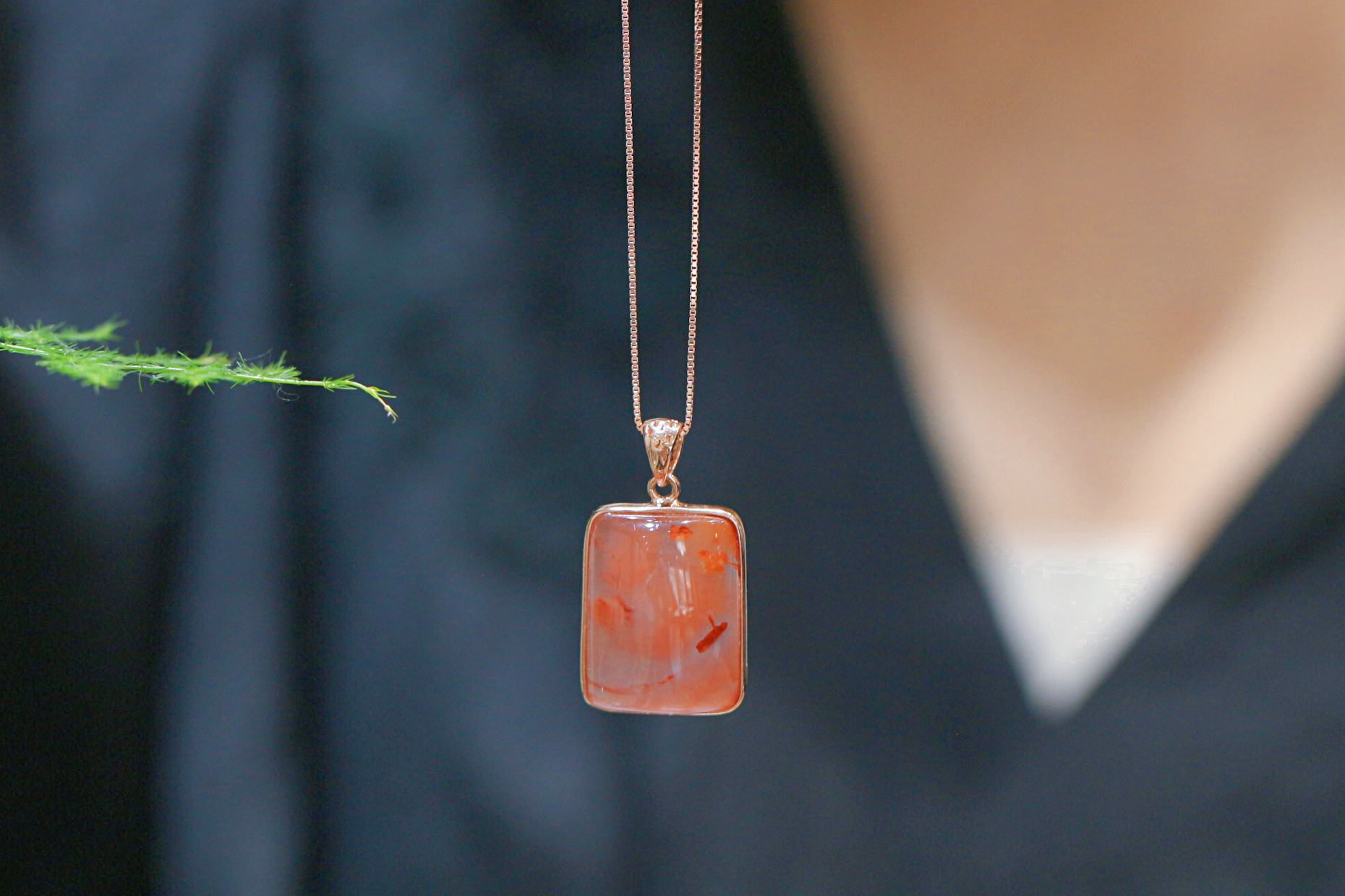 南红冰飘吊坠,冰透水润,晶莹剔透,飘花灵动飘逸,色泽鲜艳漂亮,925银镶,精致好看,当锁骨链优雅迷人。
