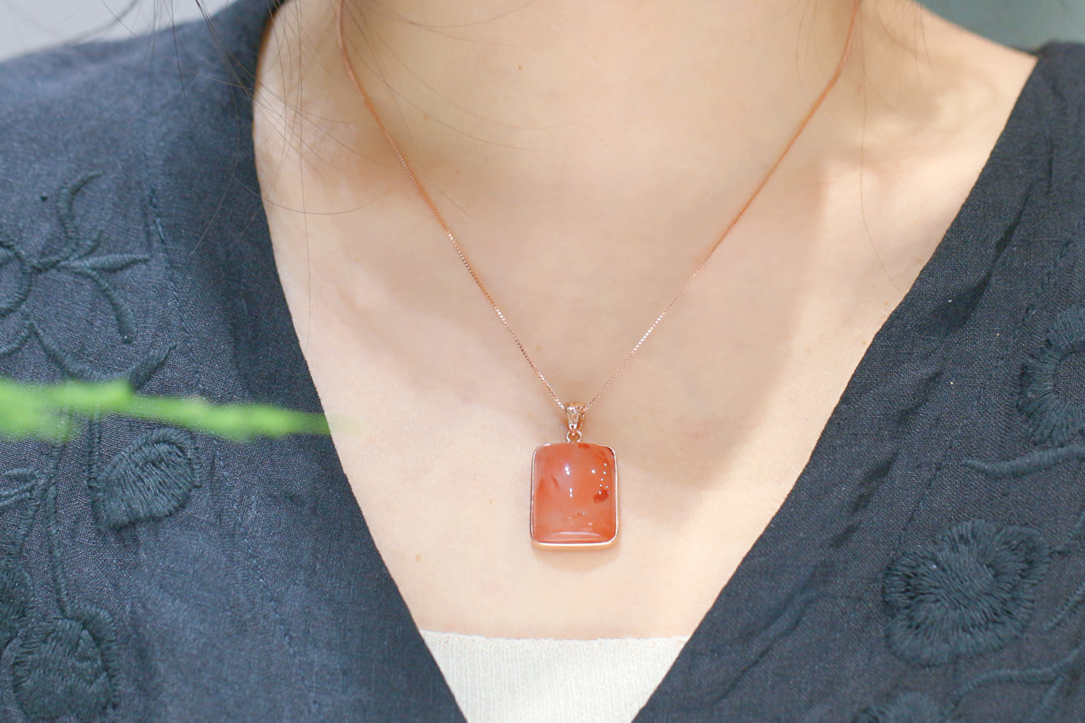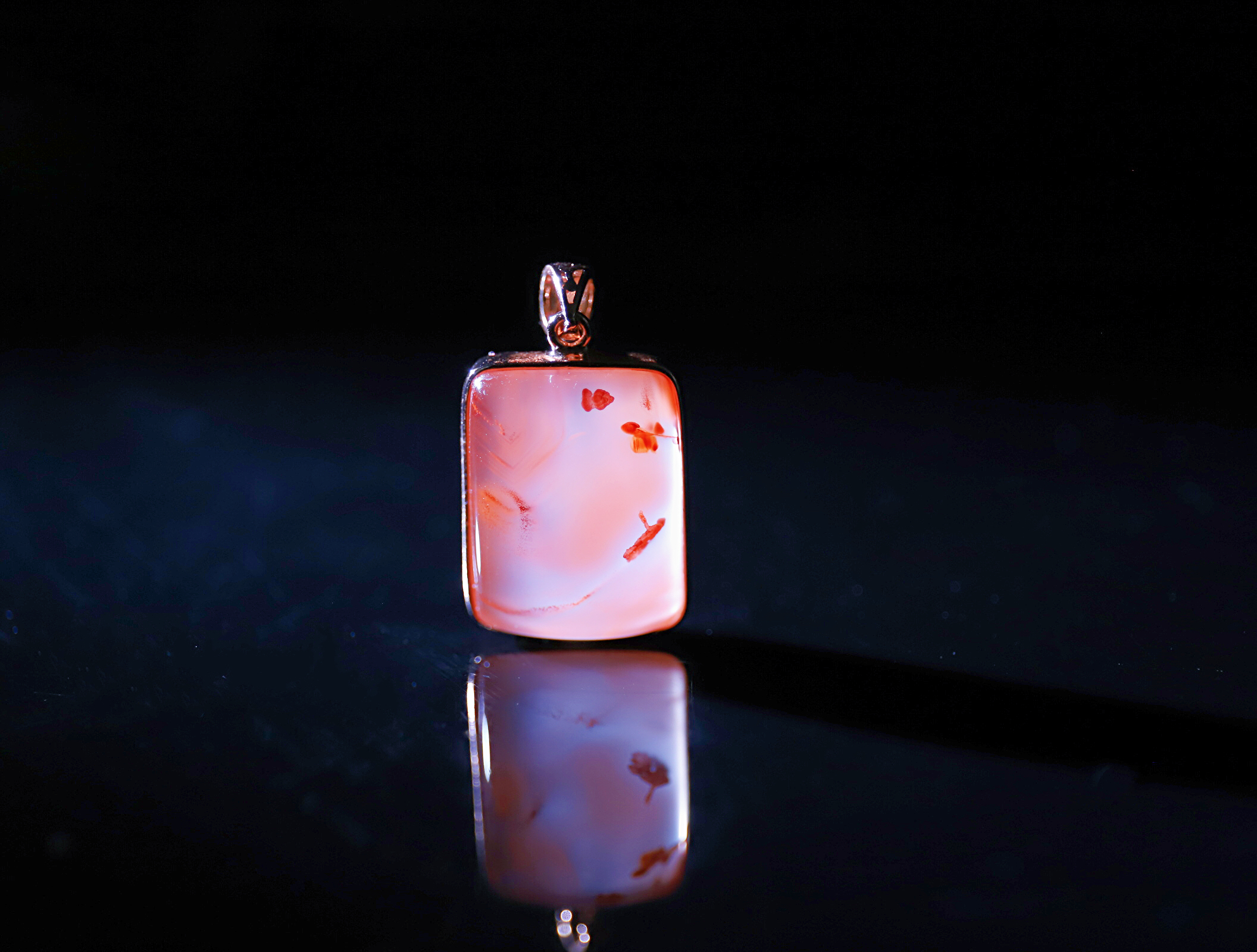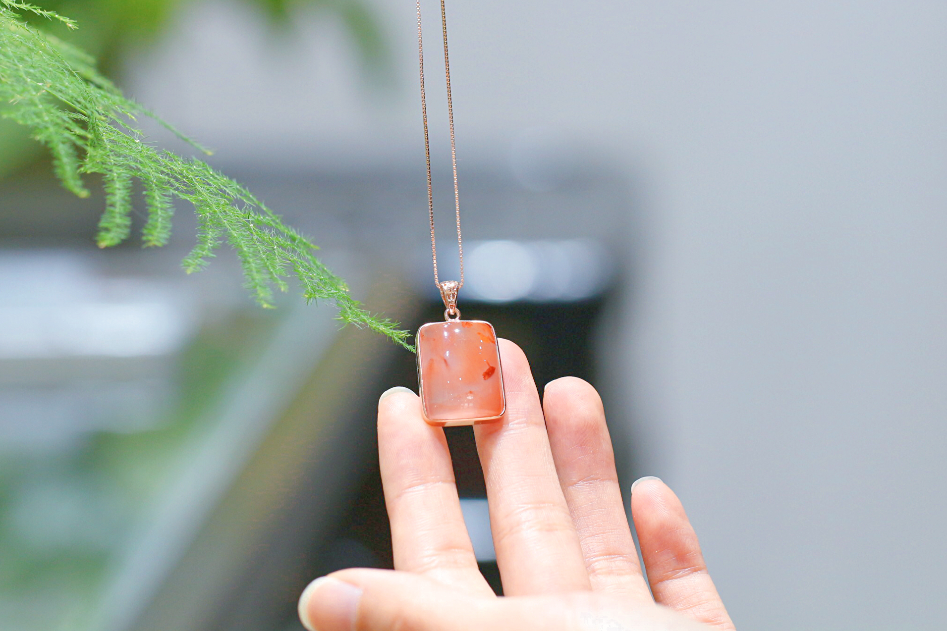 南红冰飘吊坠,冰透水润,晶莹剔透,飘花灵动飘逸,色泽鲜艳漂亮,925银镶,精致好看,当锁骨链优雅迷人。