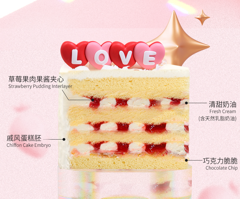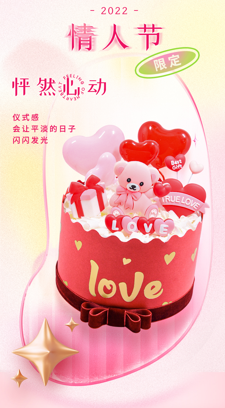 【怦然心动】2022新款情人节主题蛋糕——纯乳脂与牛奶奶油混合,口味升级,细腻香甜