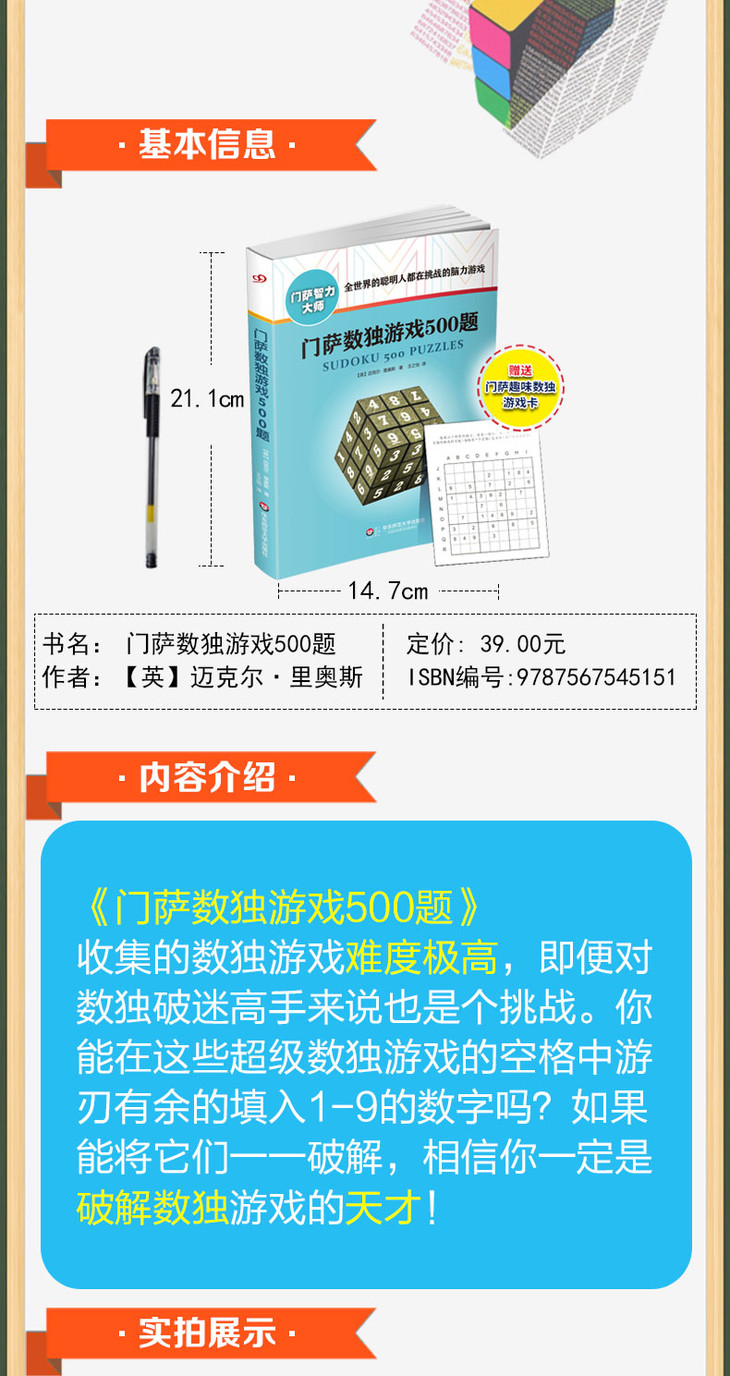 门萨数独游戏500题 修订版 附赠门萨趣味数独游戏卡 门萨智力大师系列