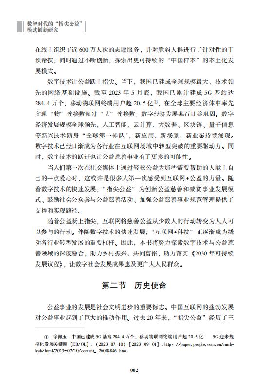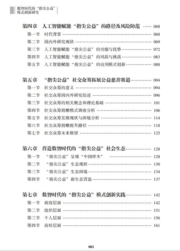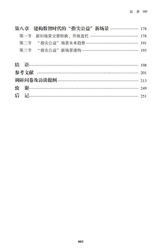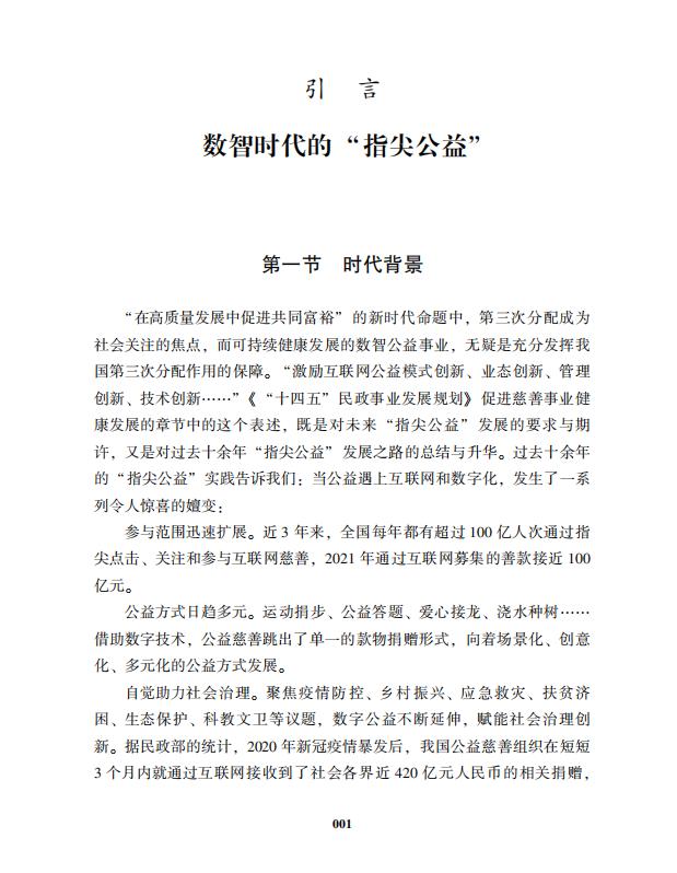 本书将从“指尖公益”的发展进程、进阶转型、挑战应对、运营模式、科技赋能(Chatgpt)、社会生态、场景打造等八个章节,全方位展现“指尖公益”参与社会治理,为帮贫扶弱工作以及乡村振兴项目贡献力量,为人民带来更多福祉,为社会创造更多价值。指尖公益的“中国样本”也将为全球公益慈善事业注入更多活力与经验,进一步深化“指尖公益”实践拓展的中国探索,贡献“指尖公益”系统创新的中国方案,展现“指尖公益”活力的中国智慧。