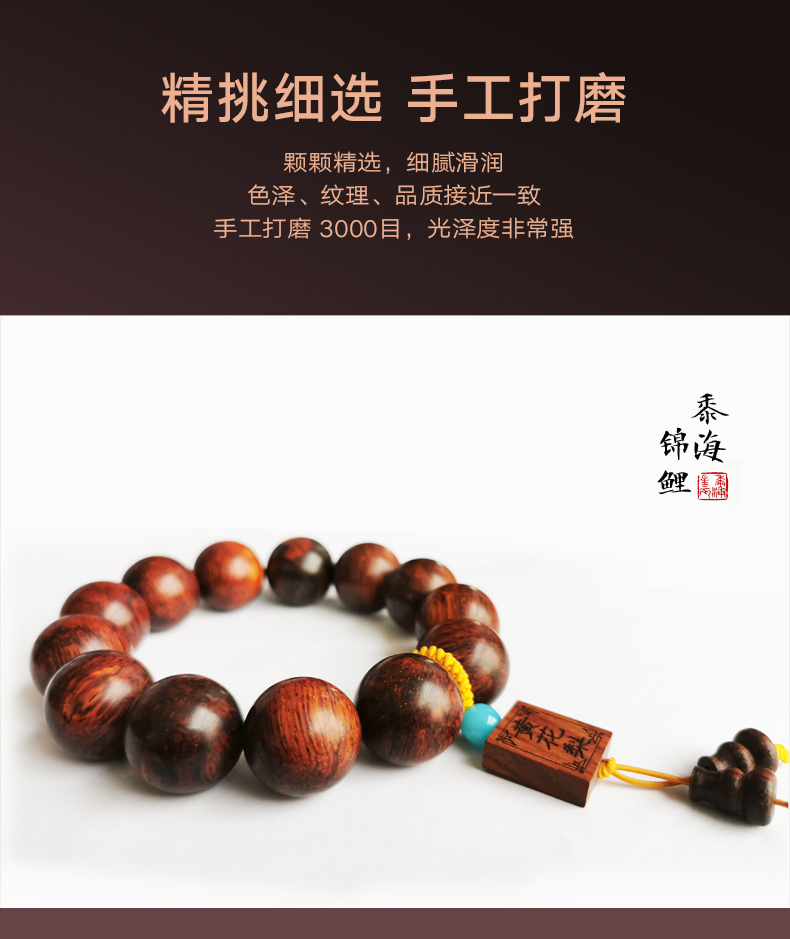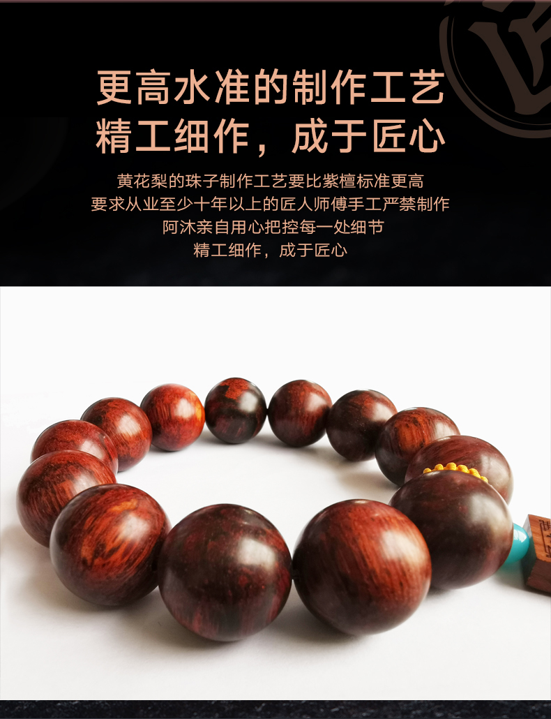 海南黄花梨手串紫油梨高油密手串佛珠20mm文玩念珠木珠