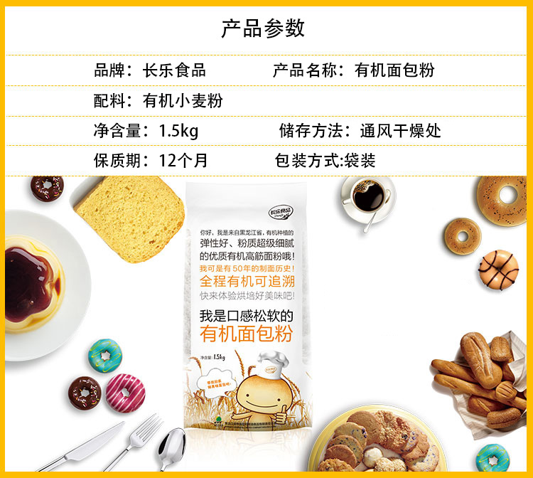 满百包邮 长乐有机面粉面包粉饺子粉1.5kg 饺子粉 安全健康