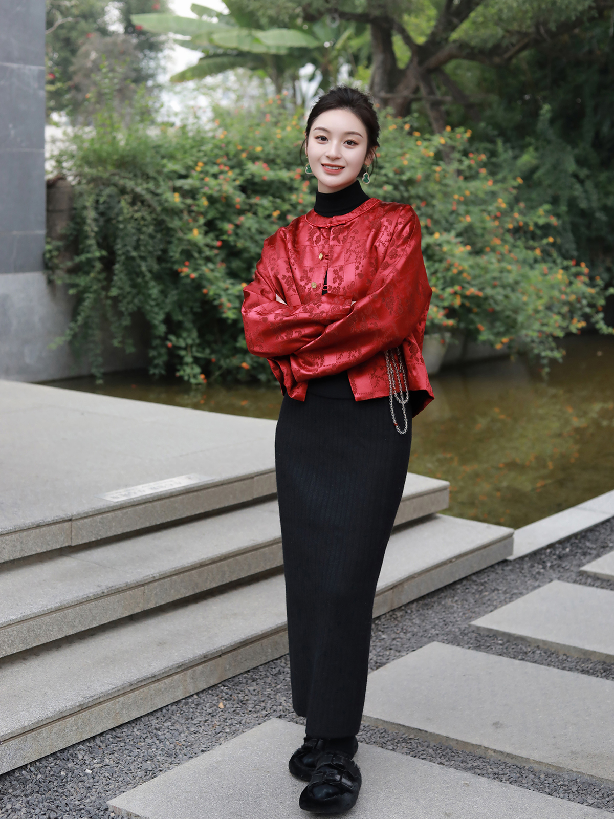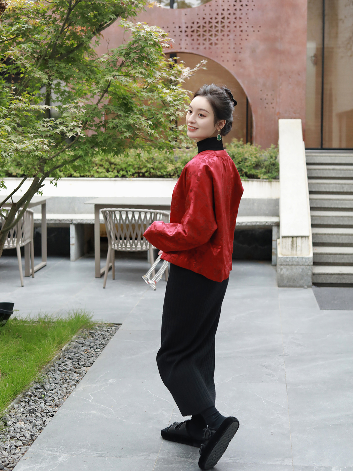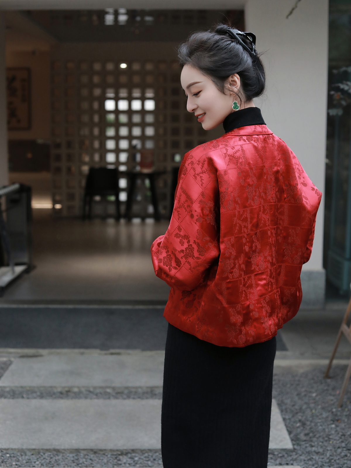 盛唐牡丹 | 花香引蝶真丝宋锦新中式外套 (不夹棉)