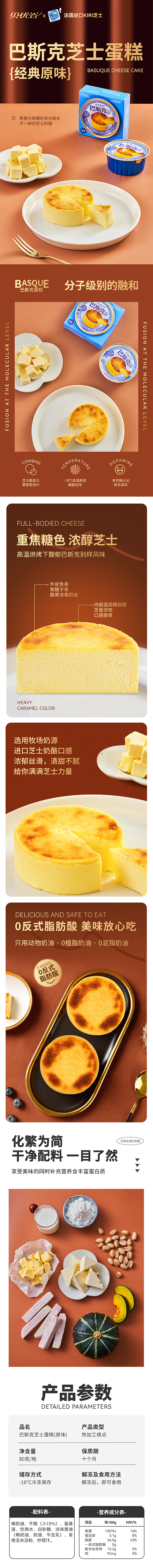 贝优谷巴斯克芝士蛋糕(原味)80g,保质期300天